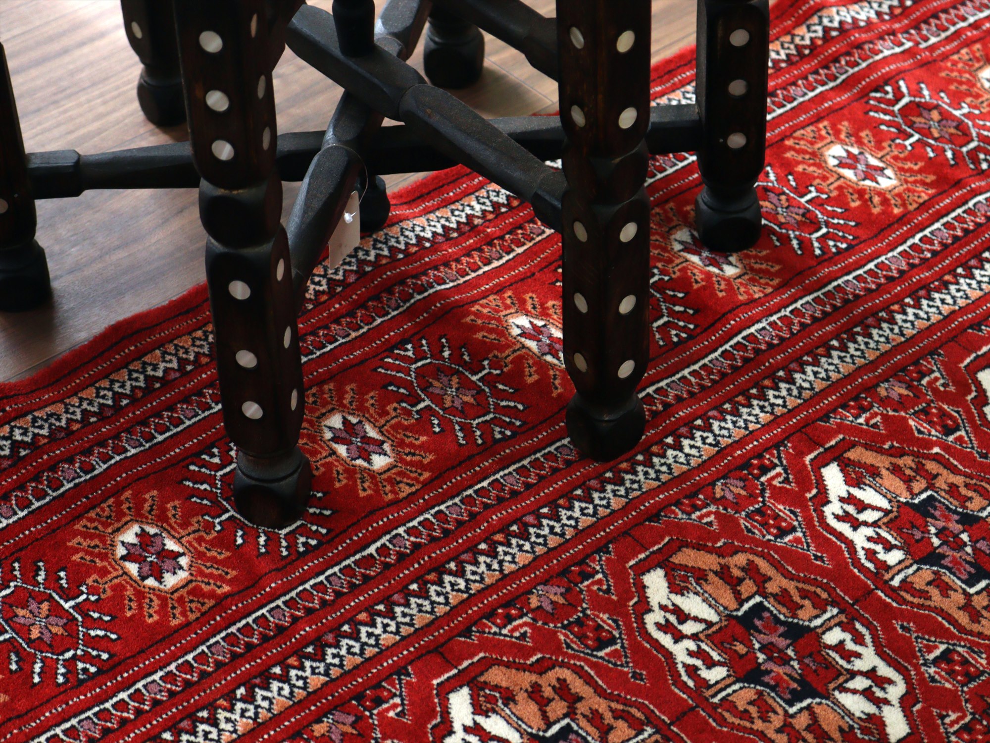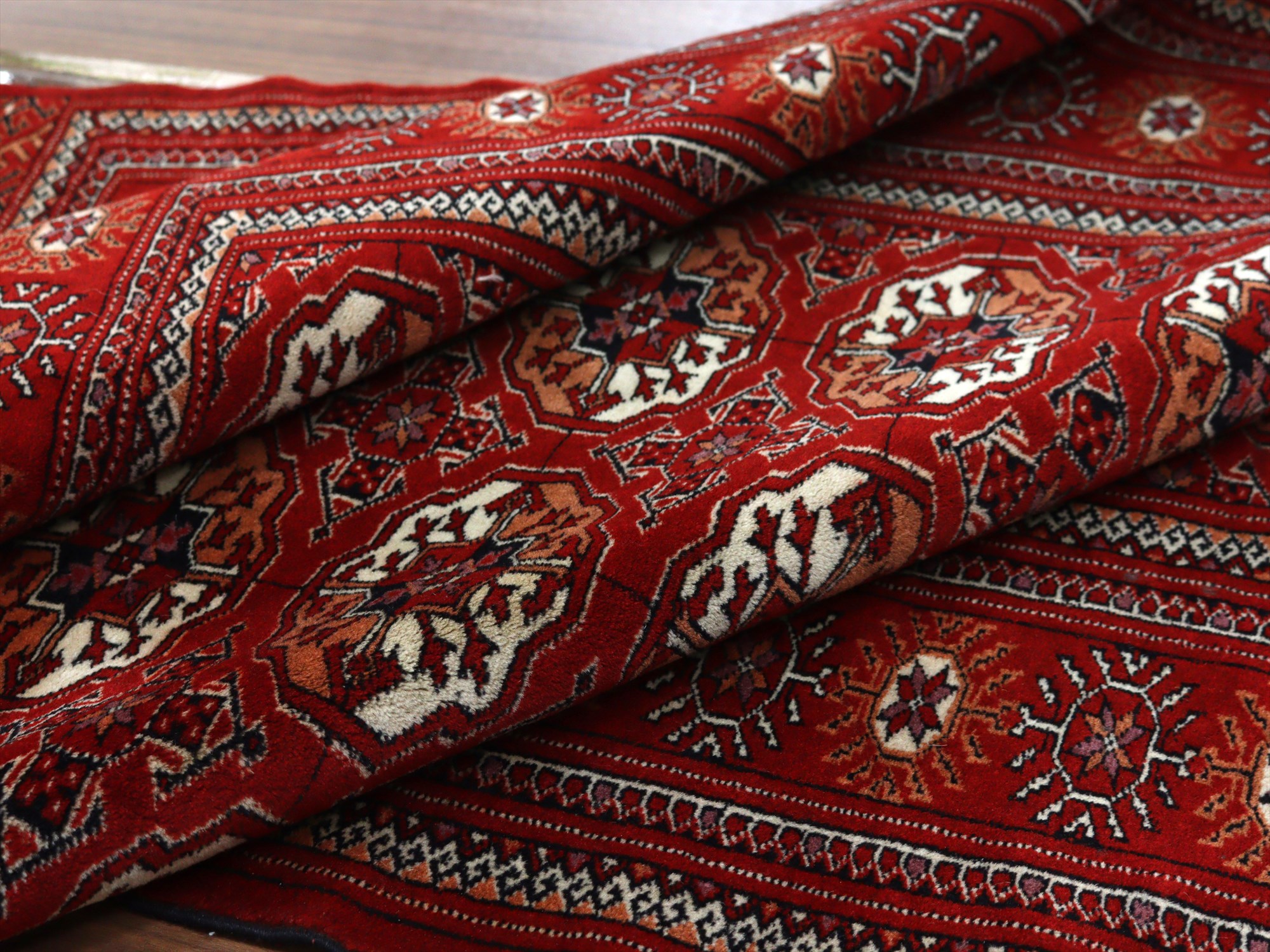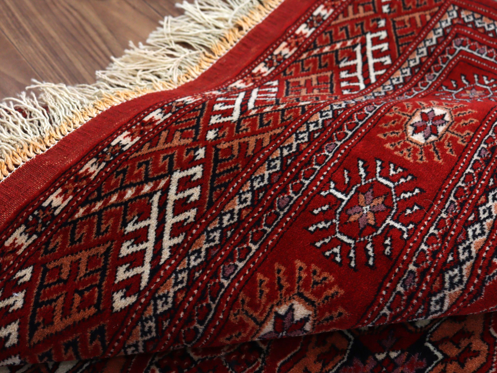 トルクメン族の絨毯 トライバルラグ208×134cm 連なるギュル文様 手織りラグ