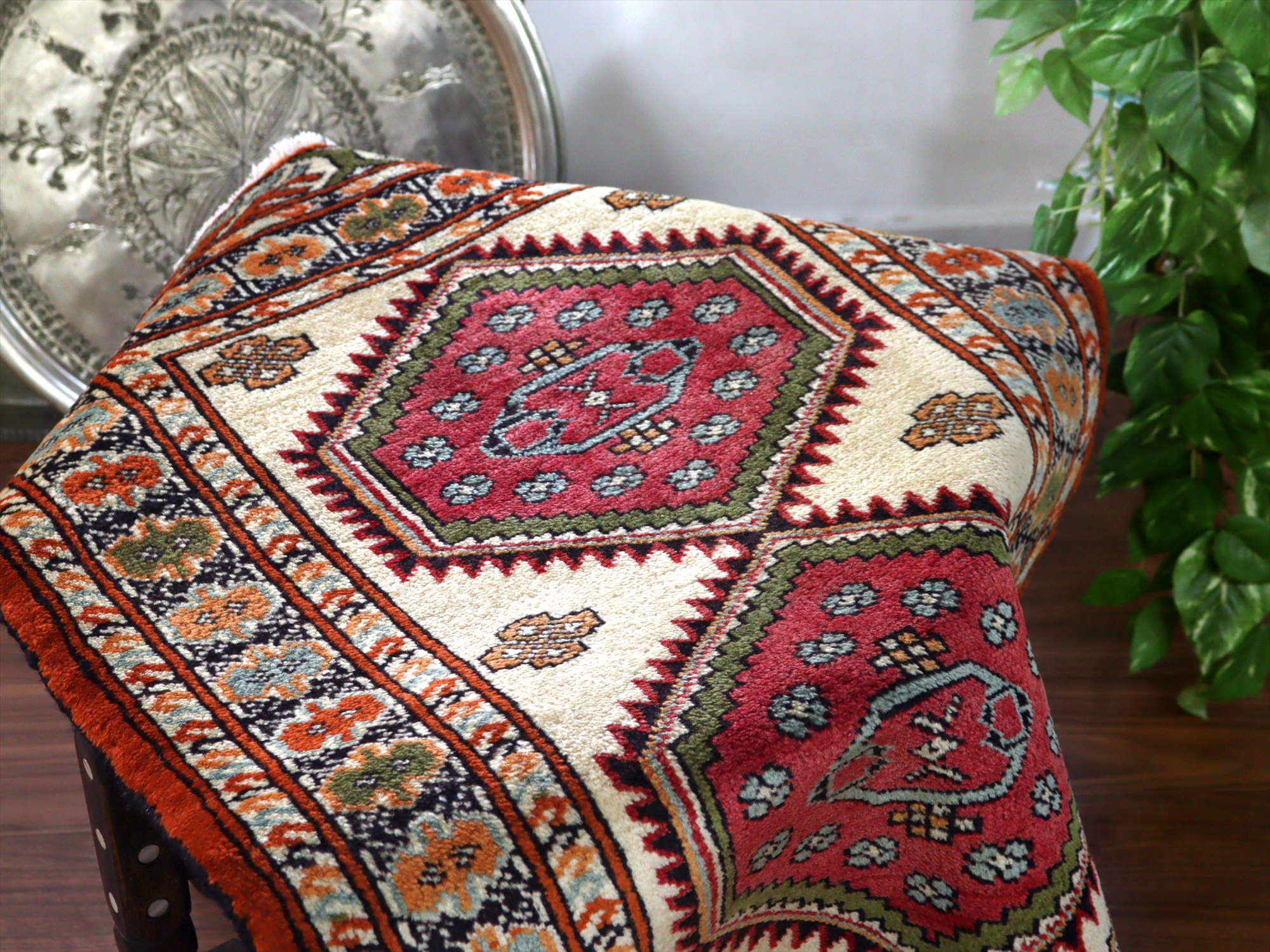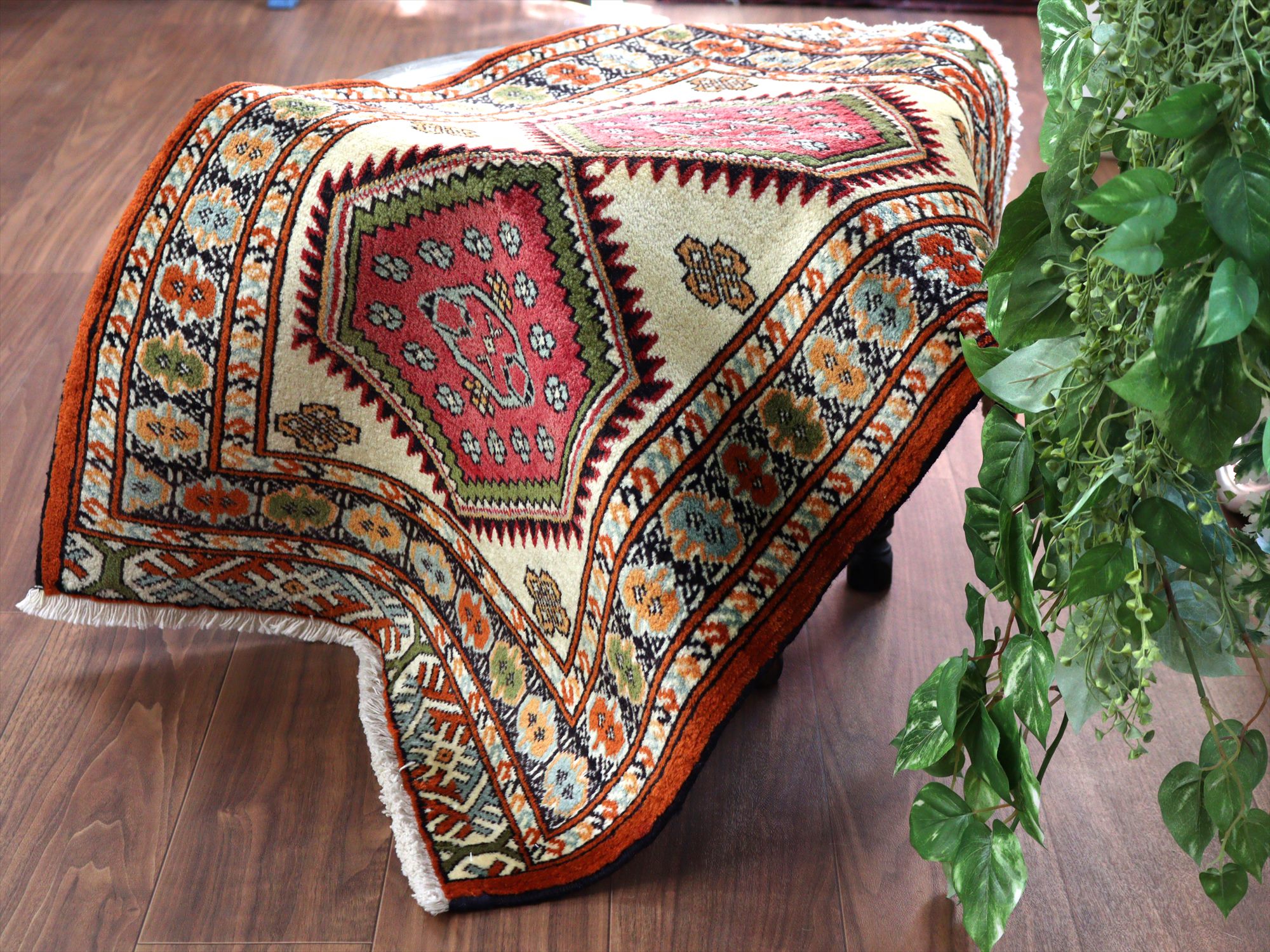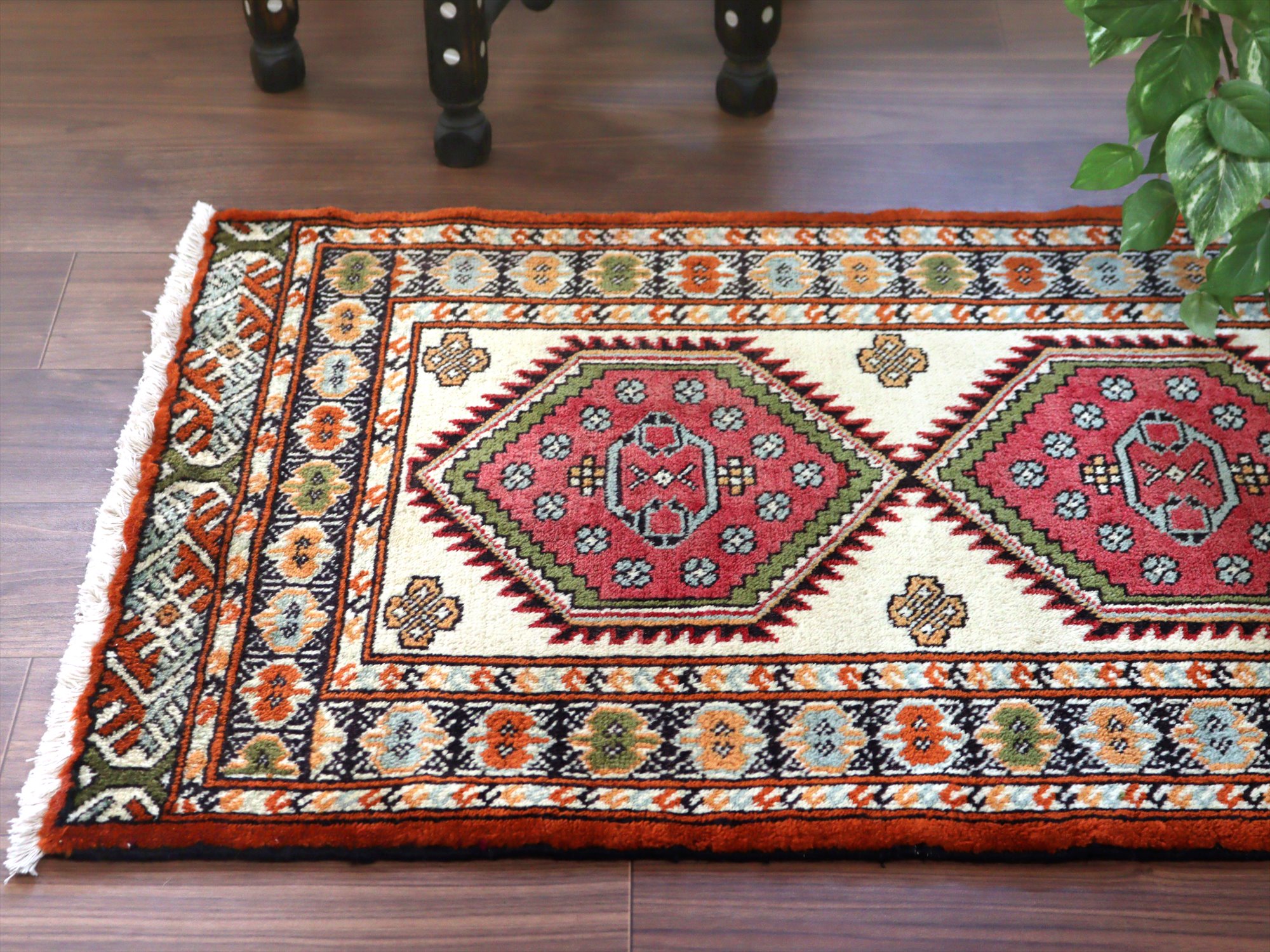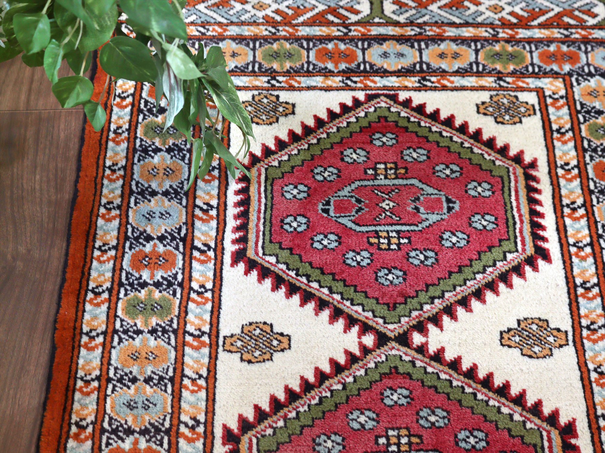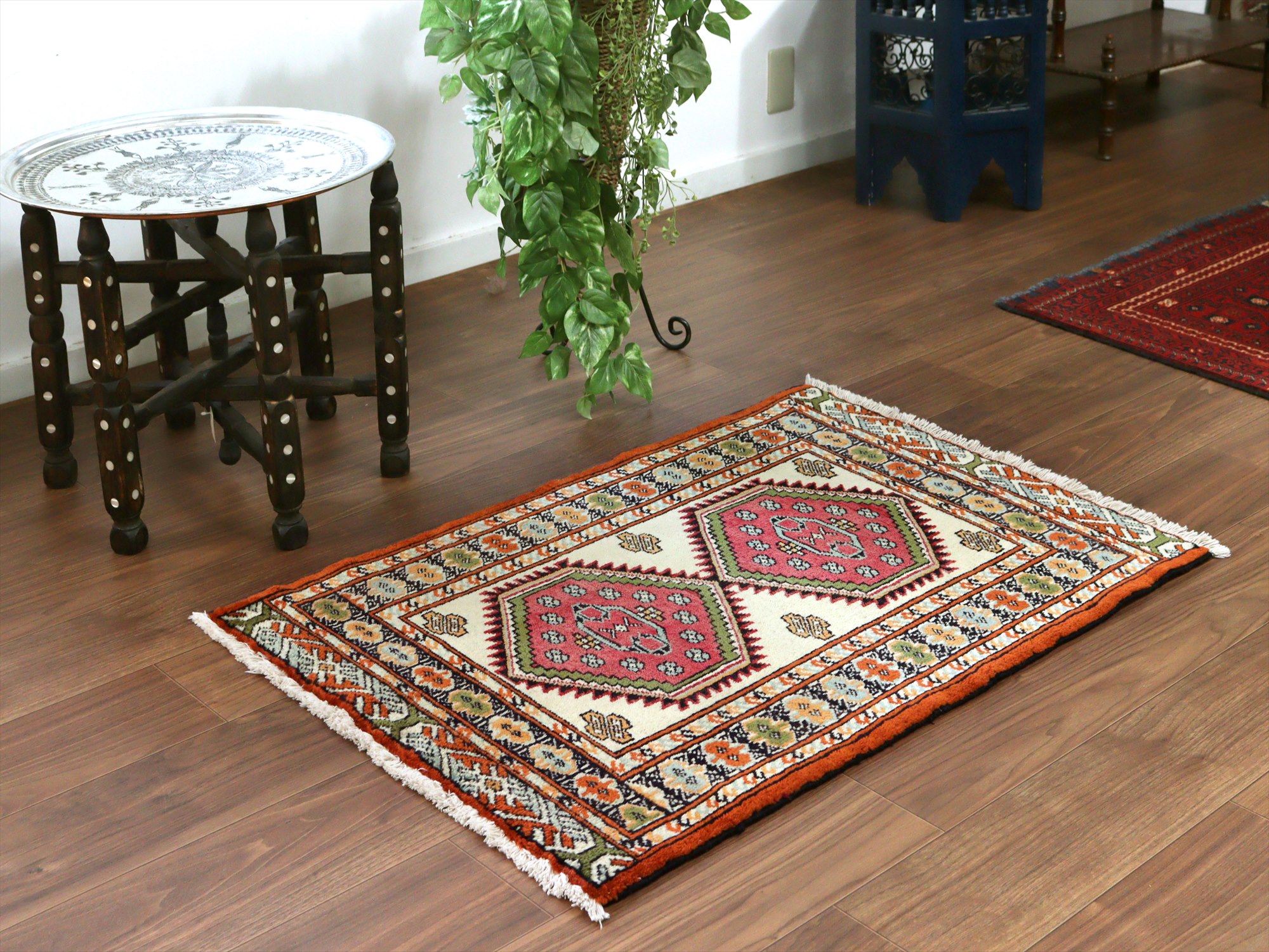 トルクメン族の絨毯 手織りラグ95×67cm 2つのメダリオン