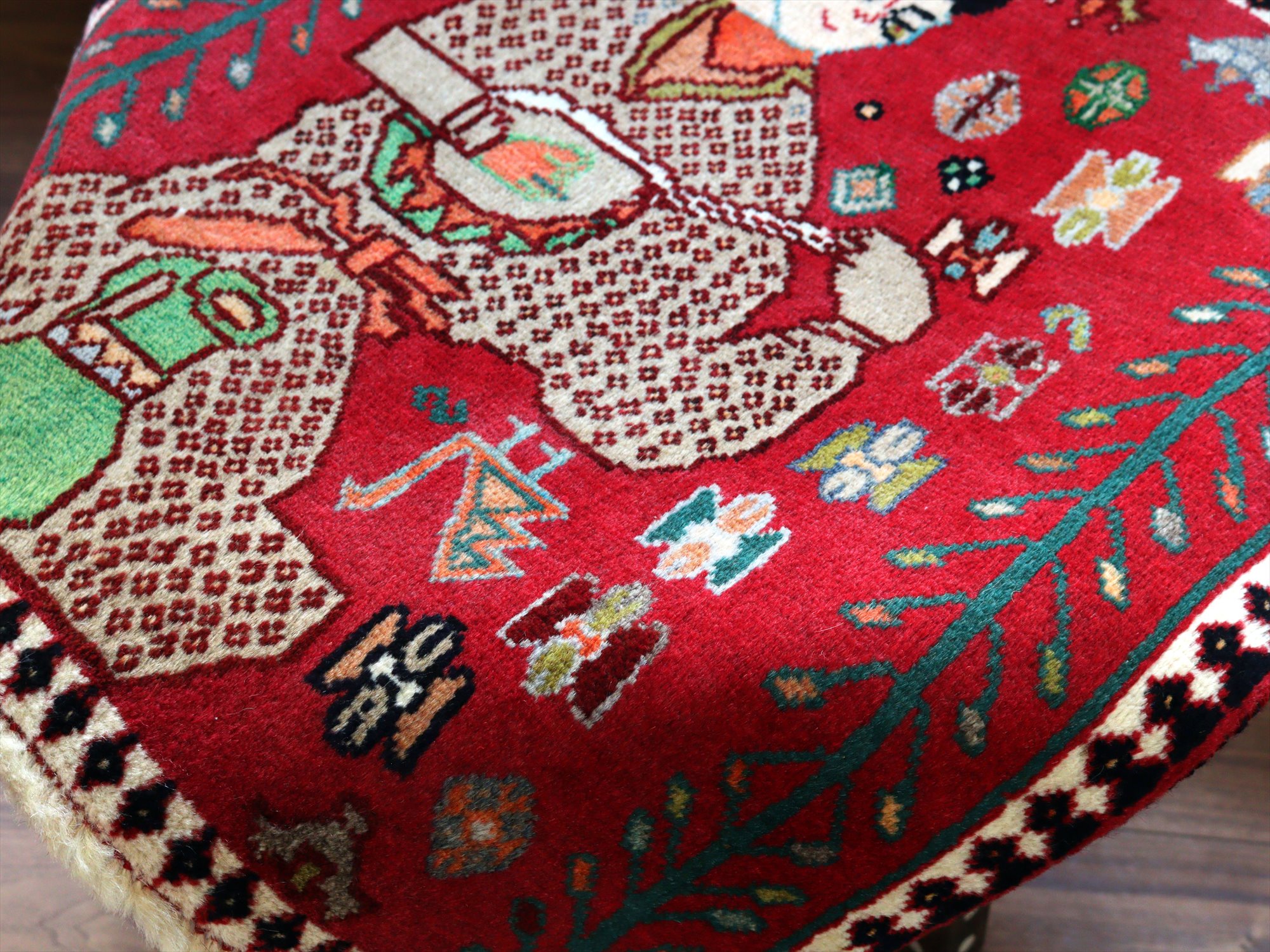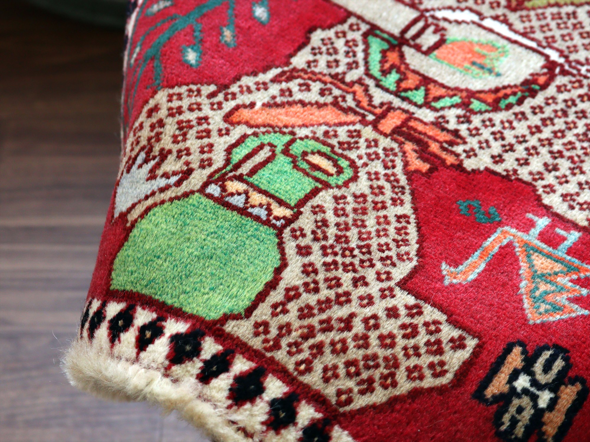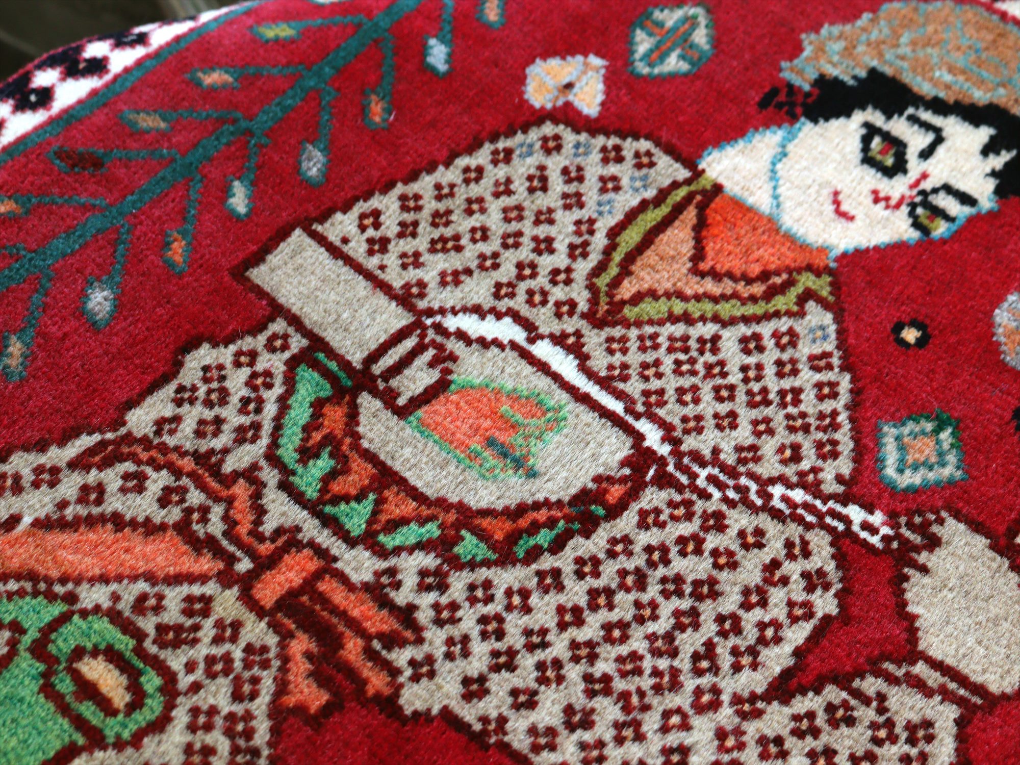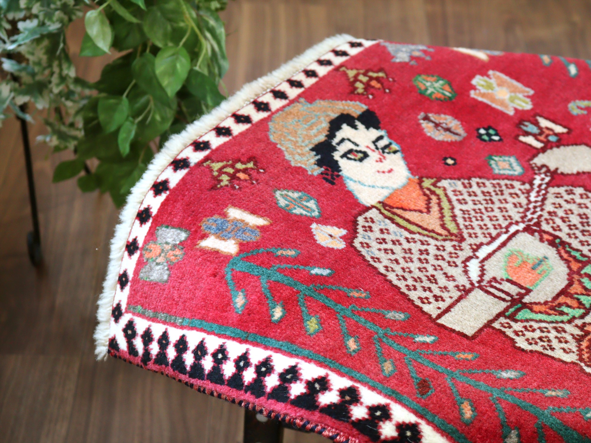 カシュカイ族の手織りラグ62×62cm 楽器を弾く女性