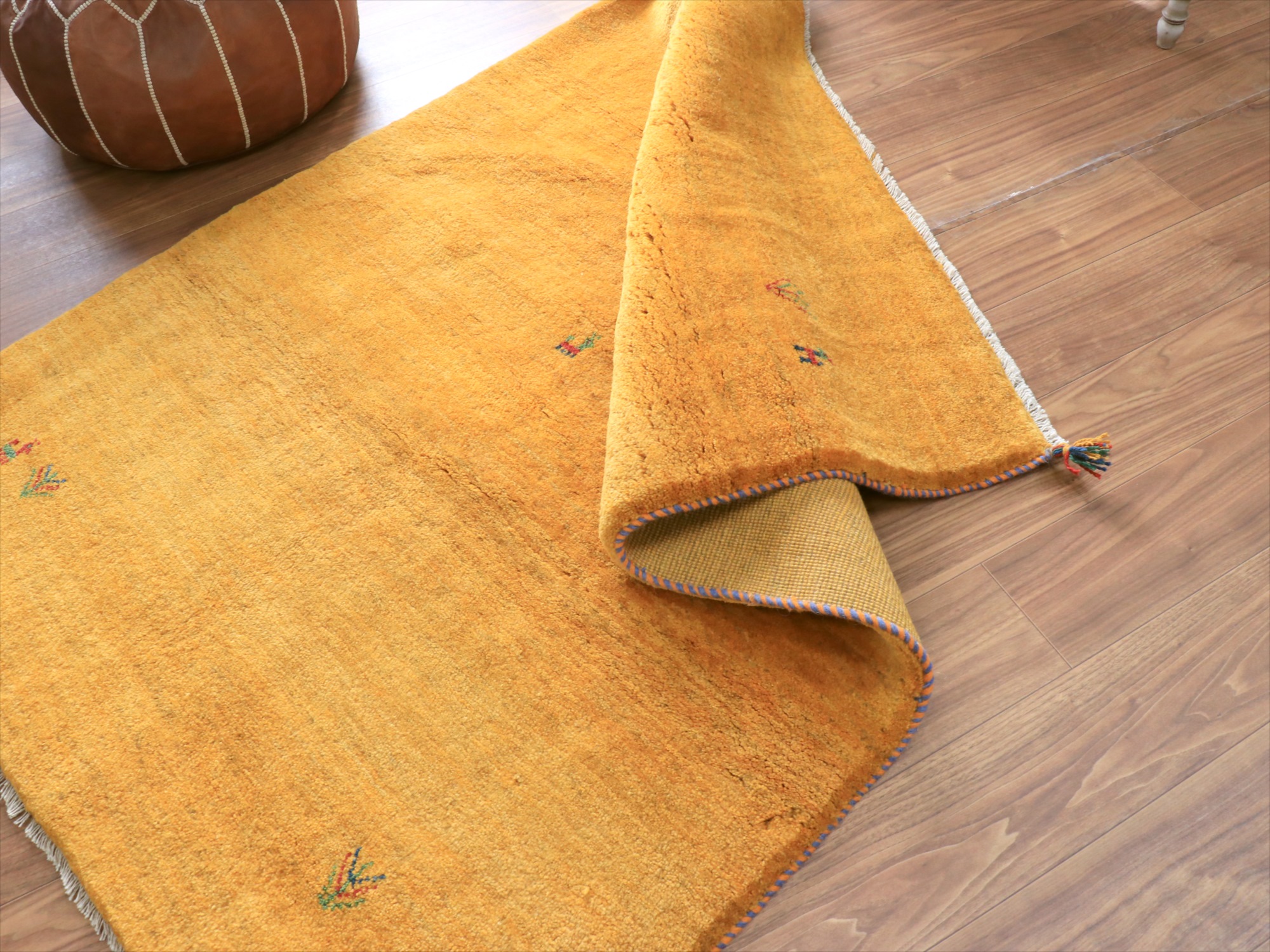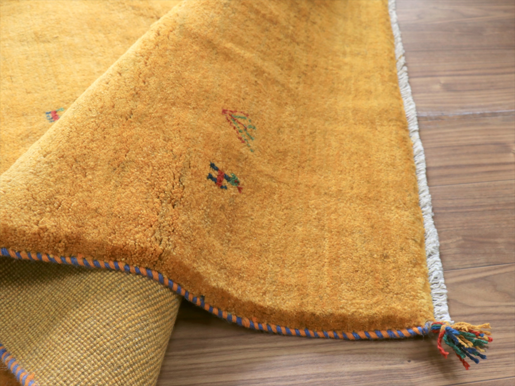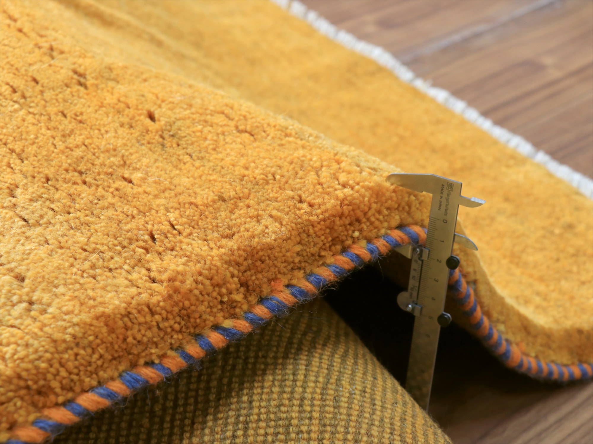 毛足が長く、パイルを含めたギャッベ全体の厚みは2.2-2.3cm程度。ボリューム感たっぷりのふかふかギャッベです。