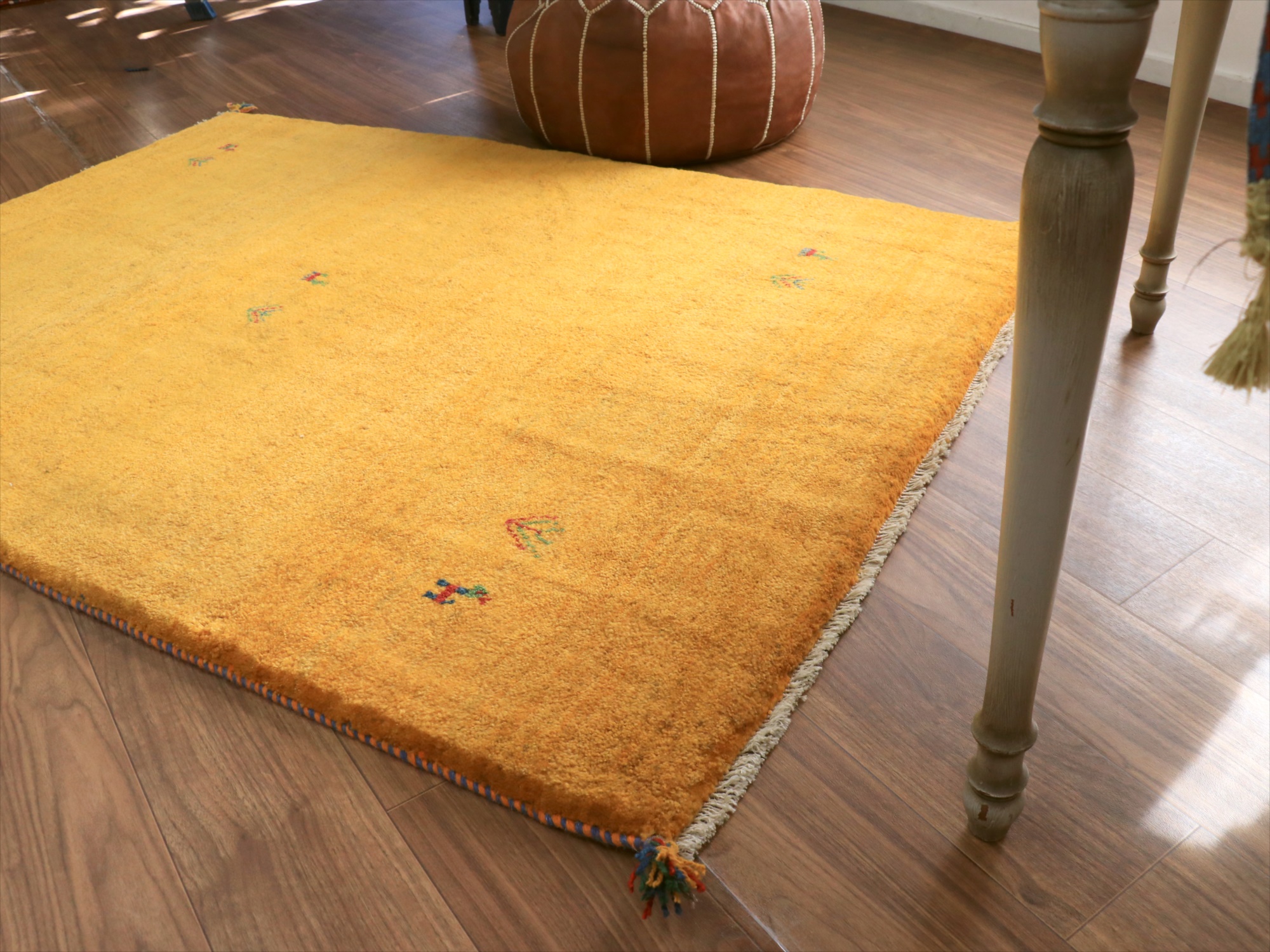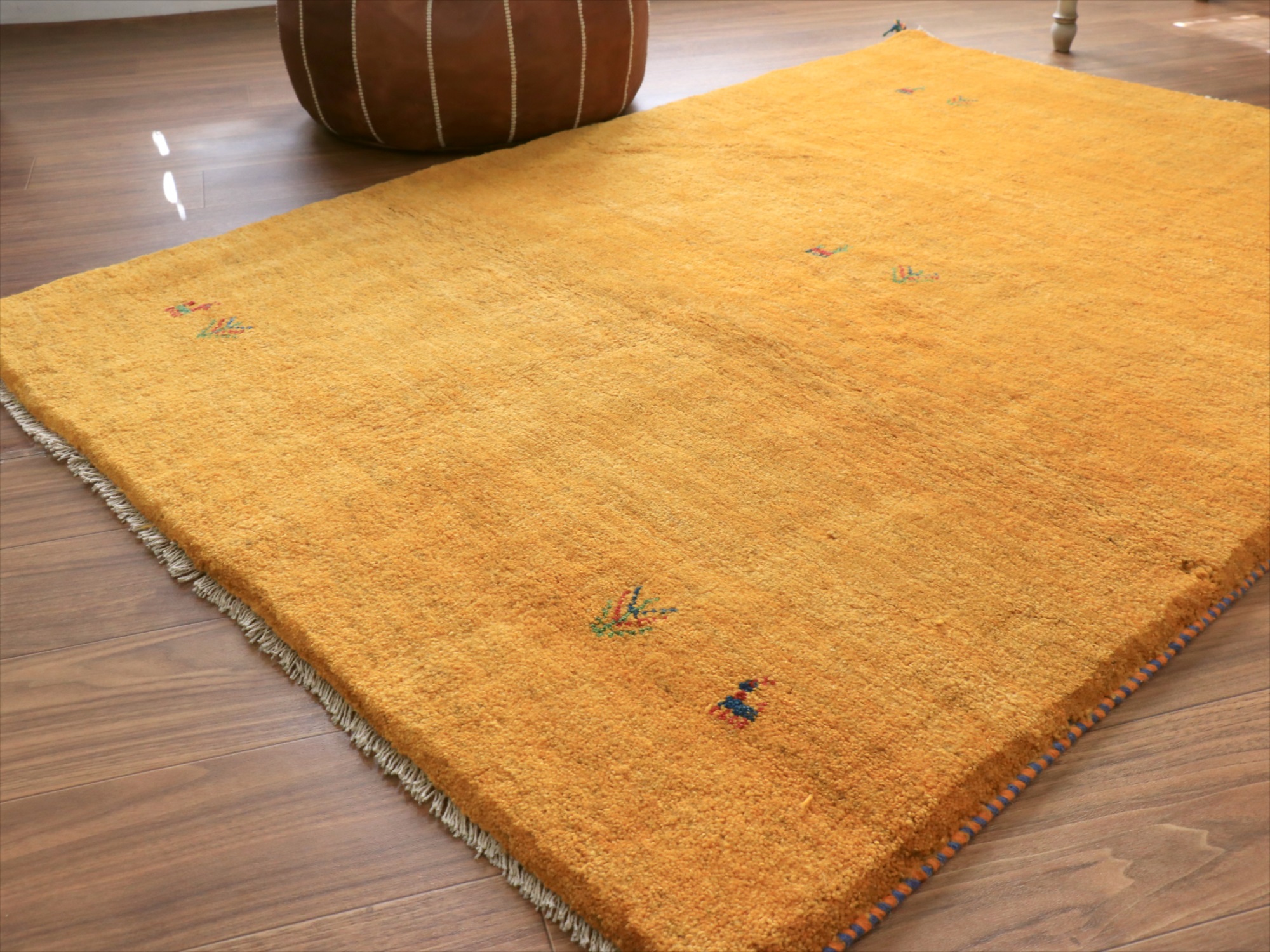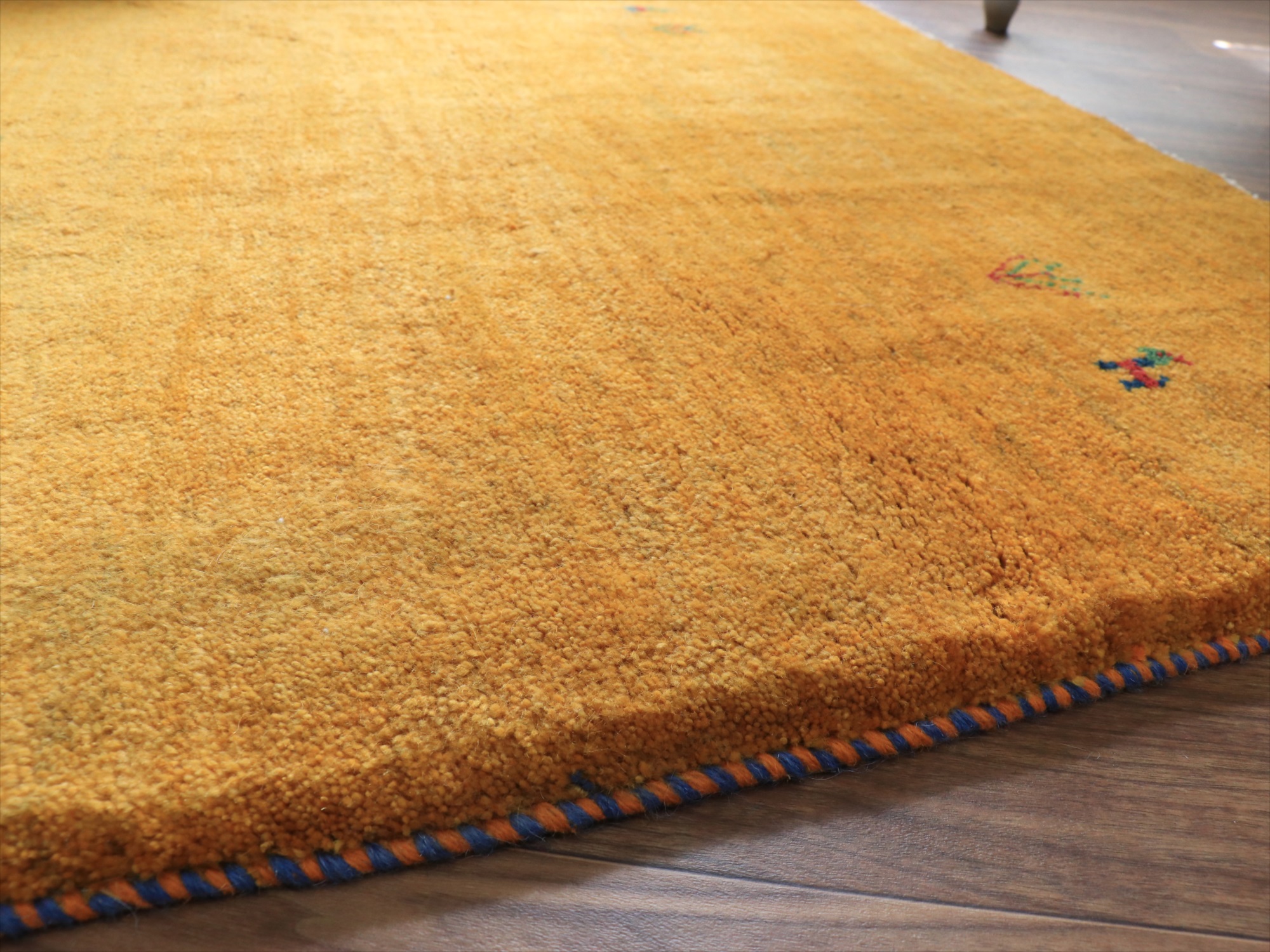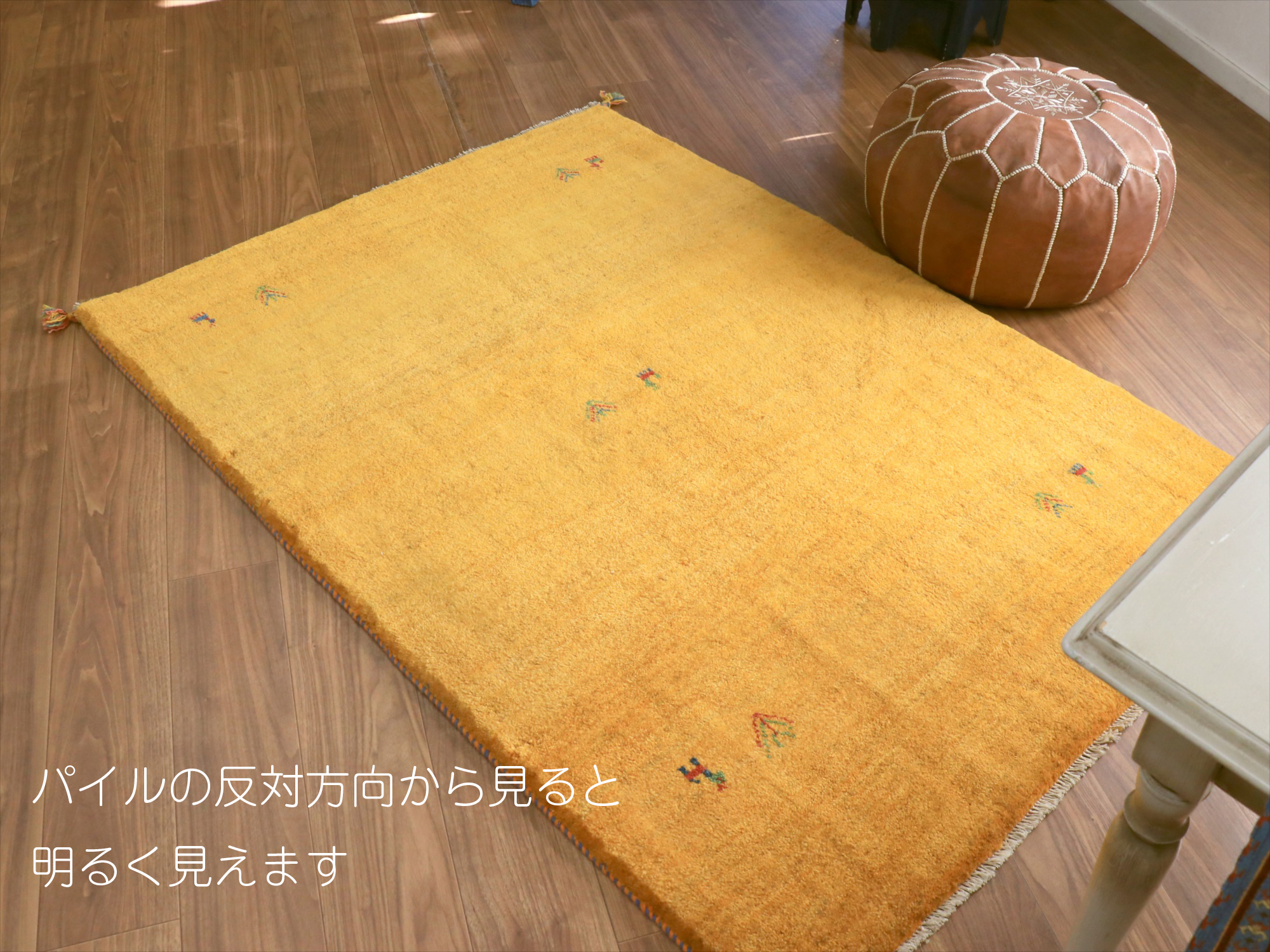 毛足が長く、パイルを含めたギャッベ全体の厚みは2.2-2.3cm程度。ボリューム感たっぷりのふかふかギャッベです。