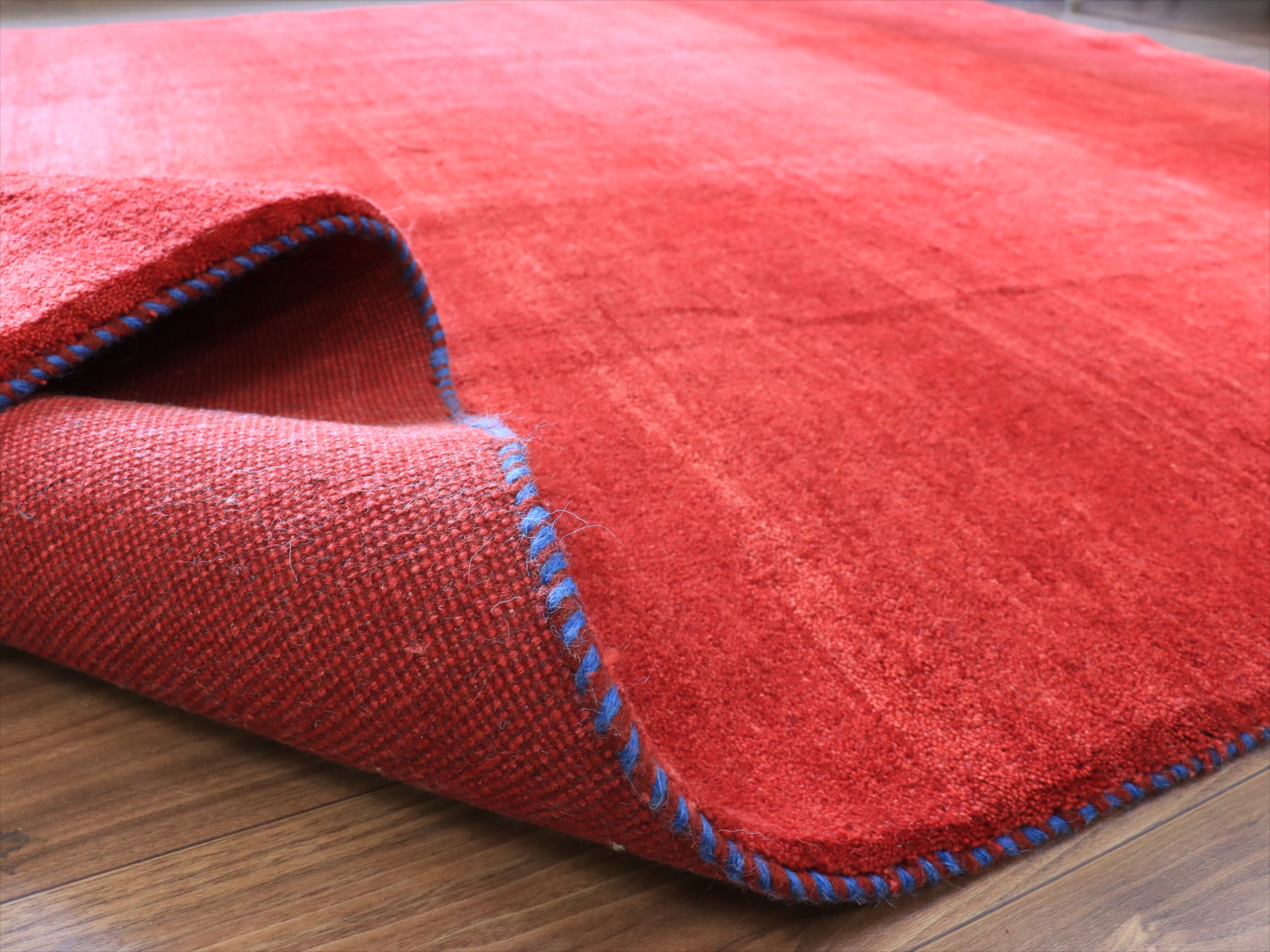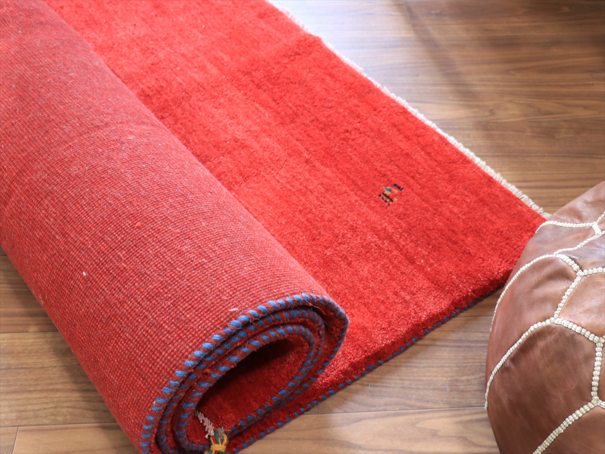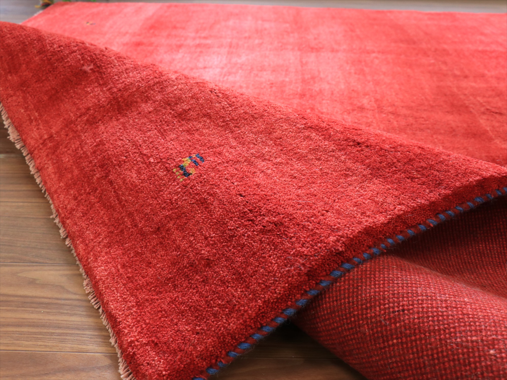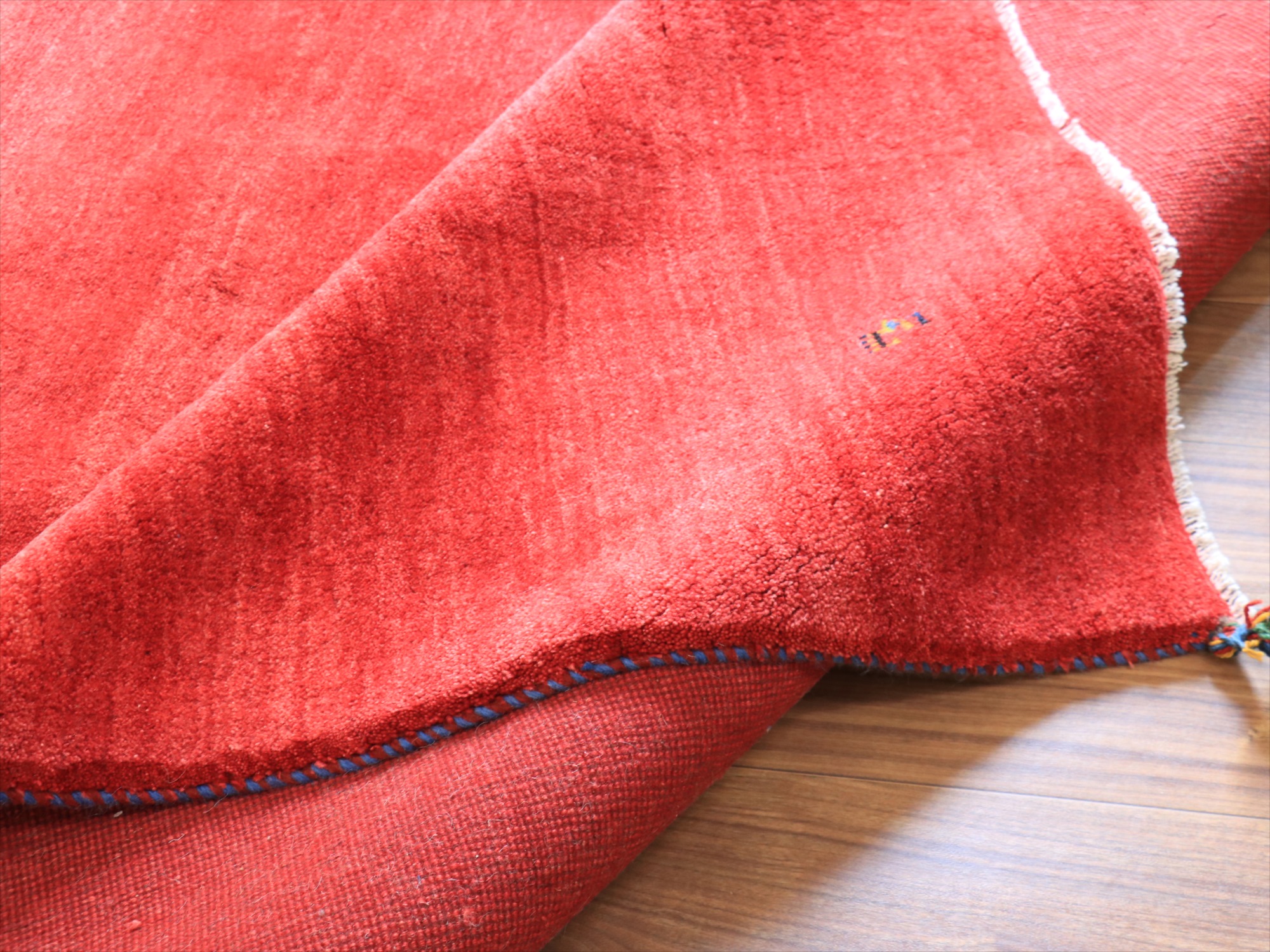 毛足(パイル)が長く、ふかふかとしたボリュームのある織りのギャッベです。ベースを含めたラグ全体の厚みは2.0-2.2cm程度。