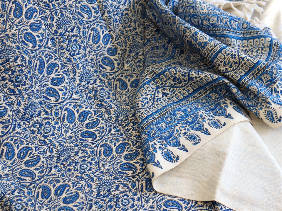 Key:コットン 染色 ブロックプリント 木版 伝統工芸 フリークロス マルチカバー ベッドスプレッド ベッドカバー ソファカバー カーテン タペストリー 背景 ファブリック インテリアファブリック インテリア ペルシャ イラン シルクロード アジアン エスニック ペイズリー 280cmサイズ