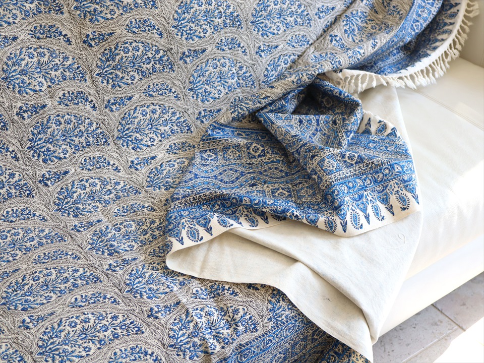Key:コットン 染色 ブロックプリント 木版 伝統工芸 フリークロス マルチカバー ベッドスプレッド ベッドカバー ソファカバー カーテン タペストリー 背景 ファブリック インテリアファブリック インテリア ペルシャ イラン シルクロード アジアン エスニック ペイズリー 280cmサイズ