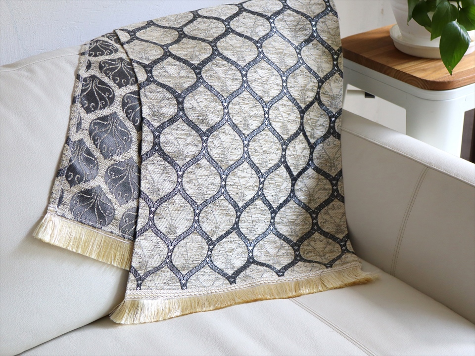 テーブルランナー ベッドスロー 135×44cm クレスト アイボリー Table runner, Bed through, Turkish textile, トルコ製ファブリック