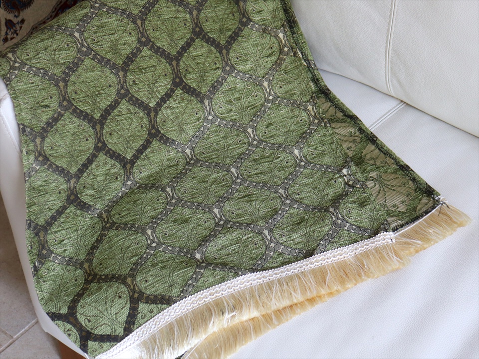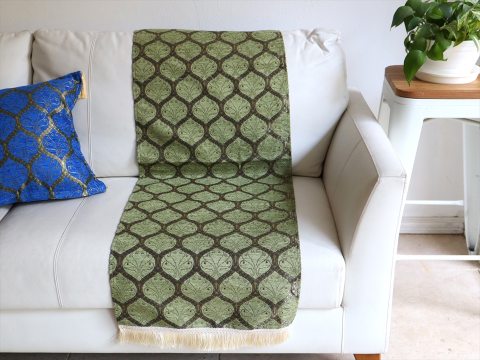 テーブルランナー ベッドスロー 135×44cm クレスト ピスタチオグリーン Table runner, Bed through, Turkish textile, トルコ製ファブリック