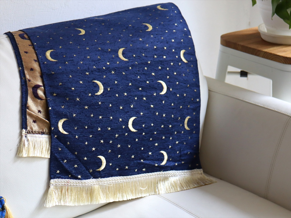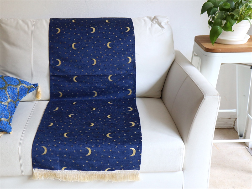 テーブルランナー ベッドスロー 135×44cm スターリーナイト ネイビー Table runner Bed through Turkish textile トルコ製ファブリック