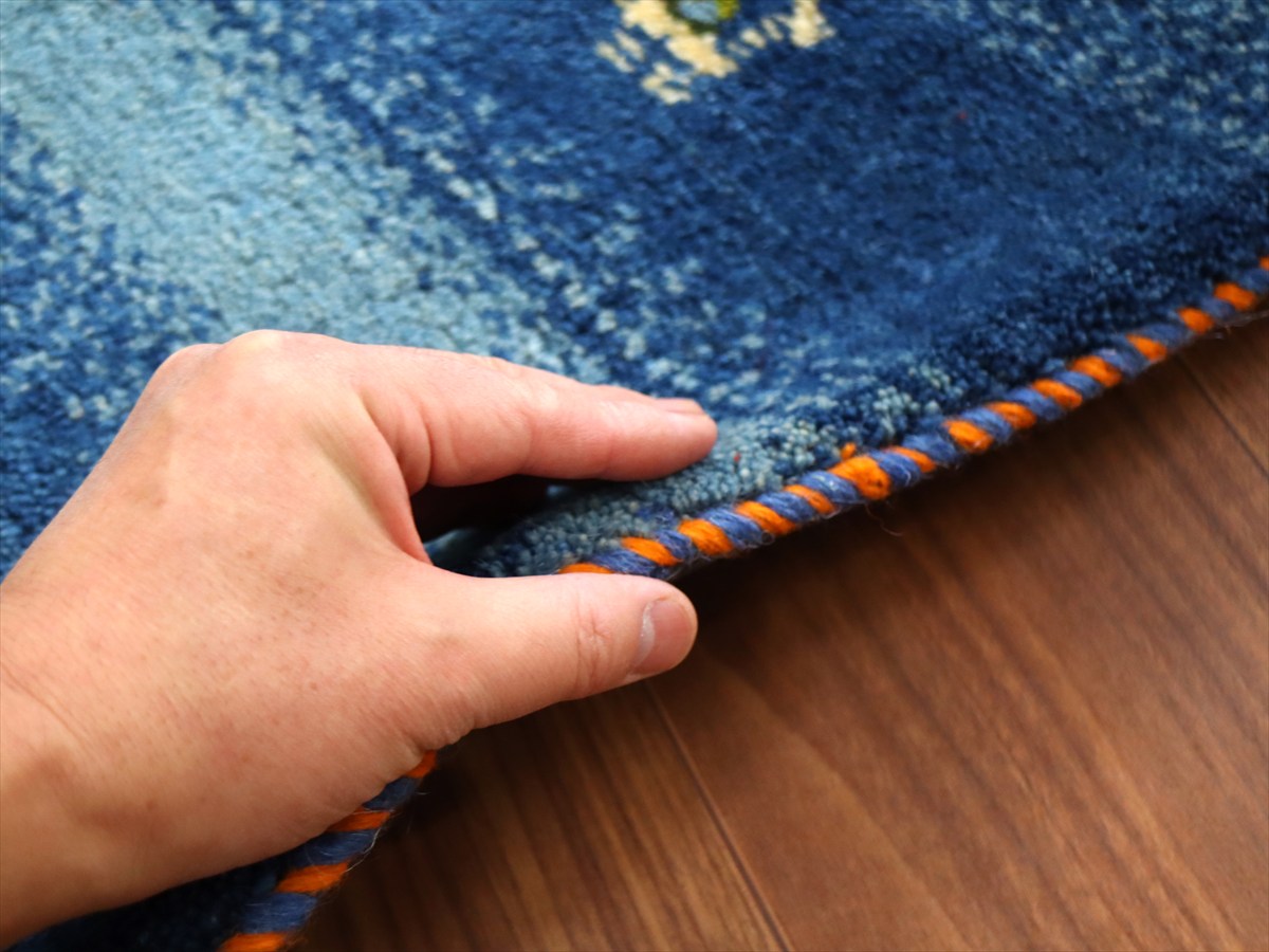 毛足が長くボリュームあるふっくらとした織り地のギャッベ。パイル(毛足)を含めた厚みは2.3-2.4cmほどで、分厚いという表現がぴったりの手織り絨毯です。