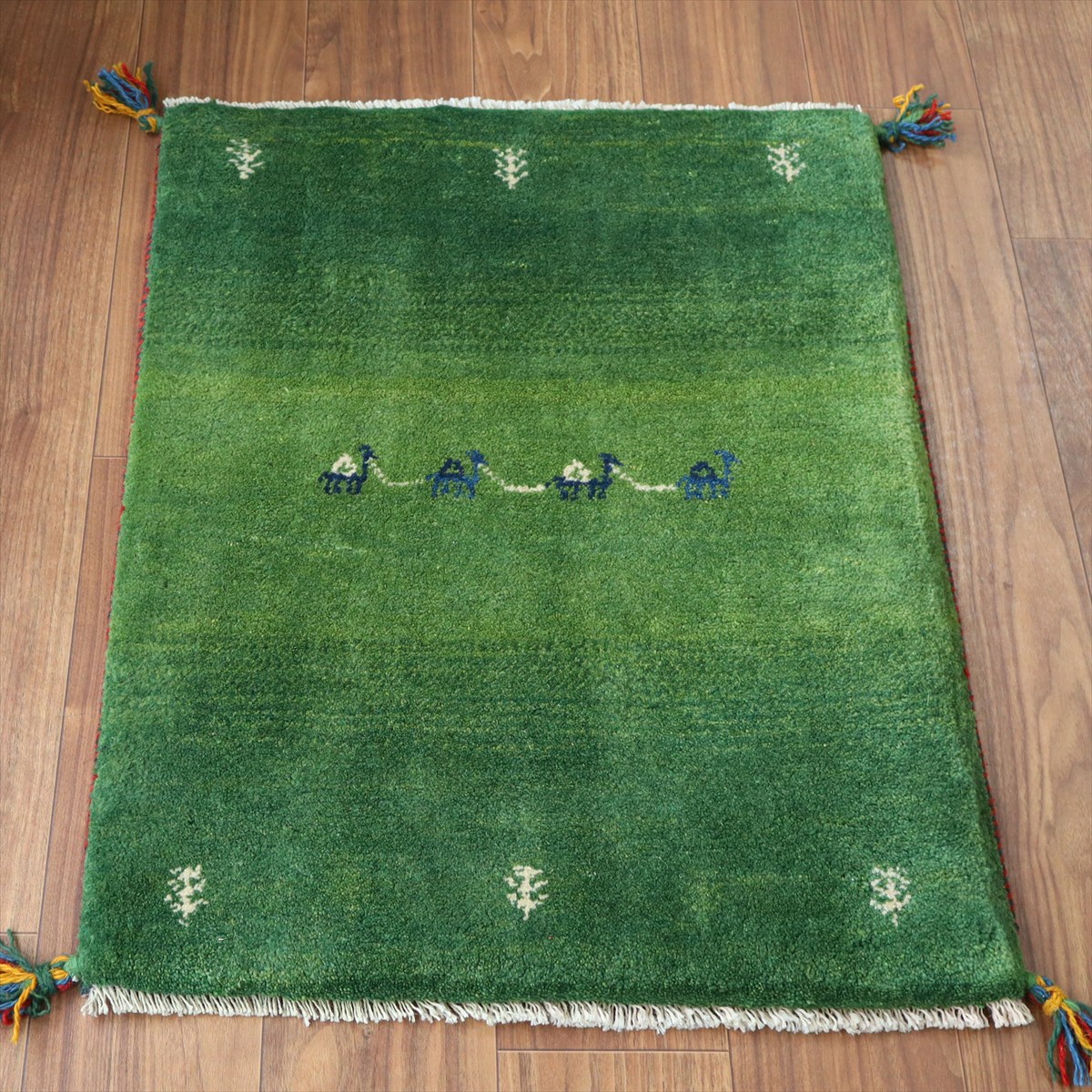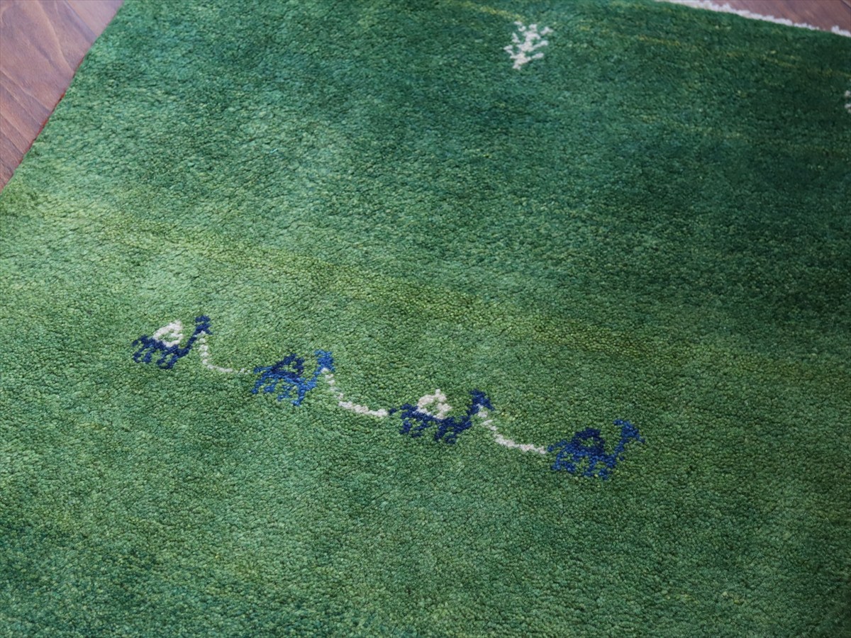 トーンの違うグリーンをベースに、中央にはラクダのキャラバンが織られています。上下には小さい生命の樹モチーフ。