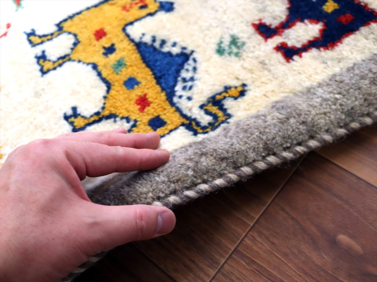 毛足(パイル)が長く、ふかふかとしたボリュームのある織りのギャッベです。ベースを含めたラグ全体の厚みは2cm前後。