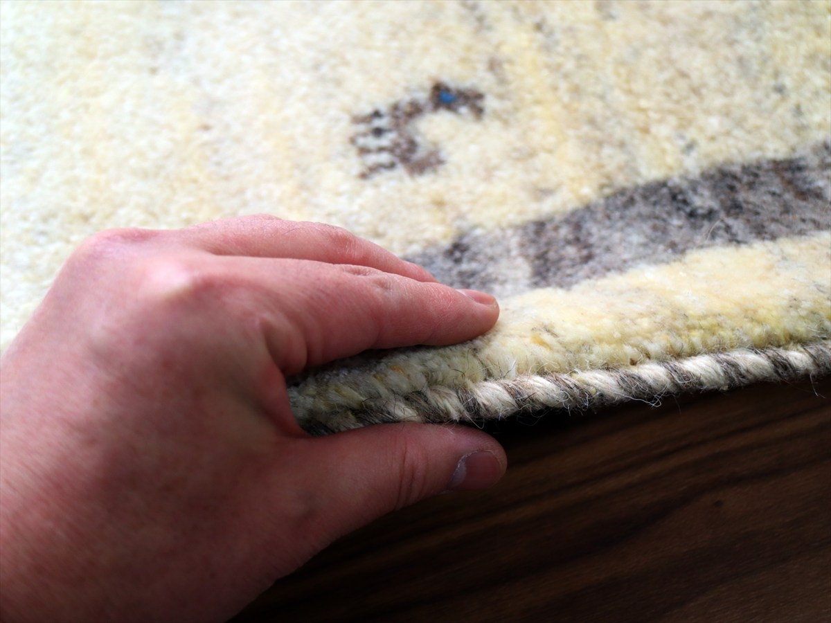 毛足(パイル)が長く、ふかふかとしたボリュームのある織りのギャッベです。ベースを含めたラグ全体の厚みは2cm前後。