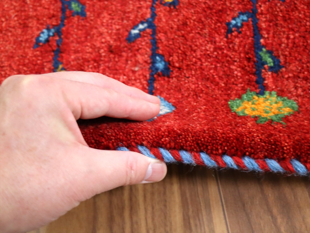 毛足(パイル)が長く、ふかふかとしたボリュームのある織りのギャッベです。ベースを含めたラグ全体の厚みは2cm前後。