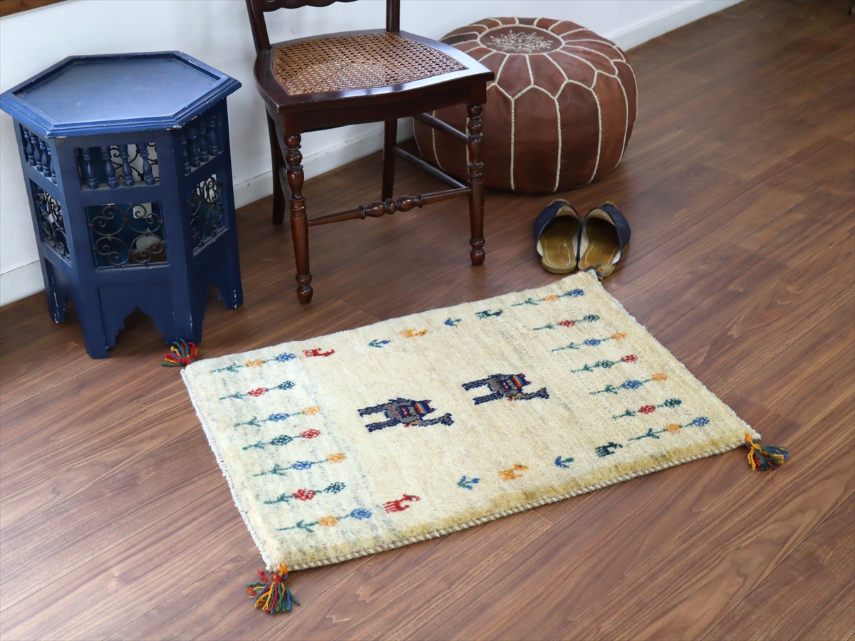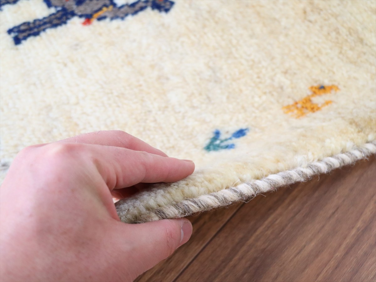 毛足を含めたギャッベの厚みは2cm弱で、ぎゅっと目の詰まった織り。