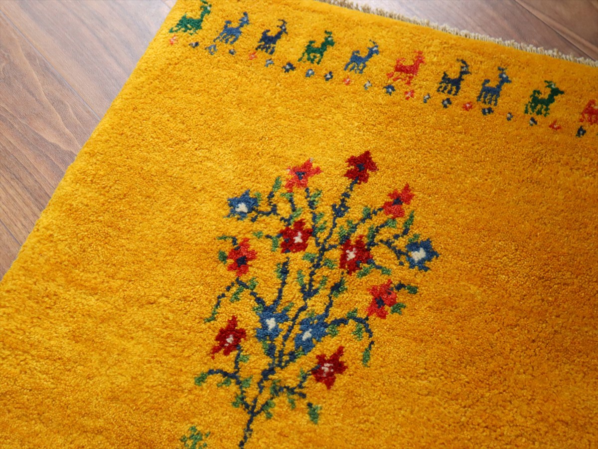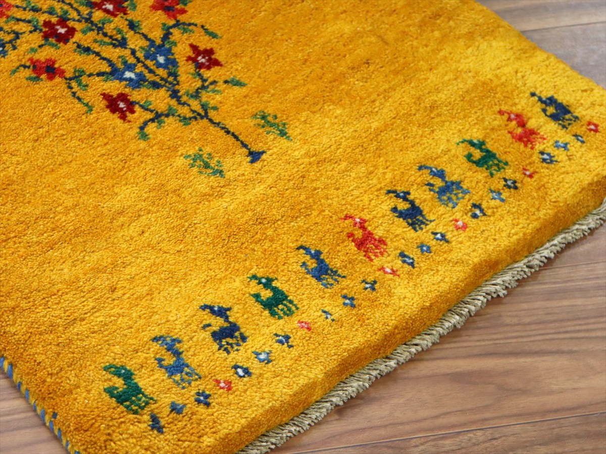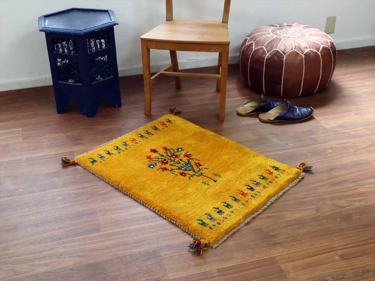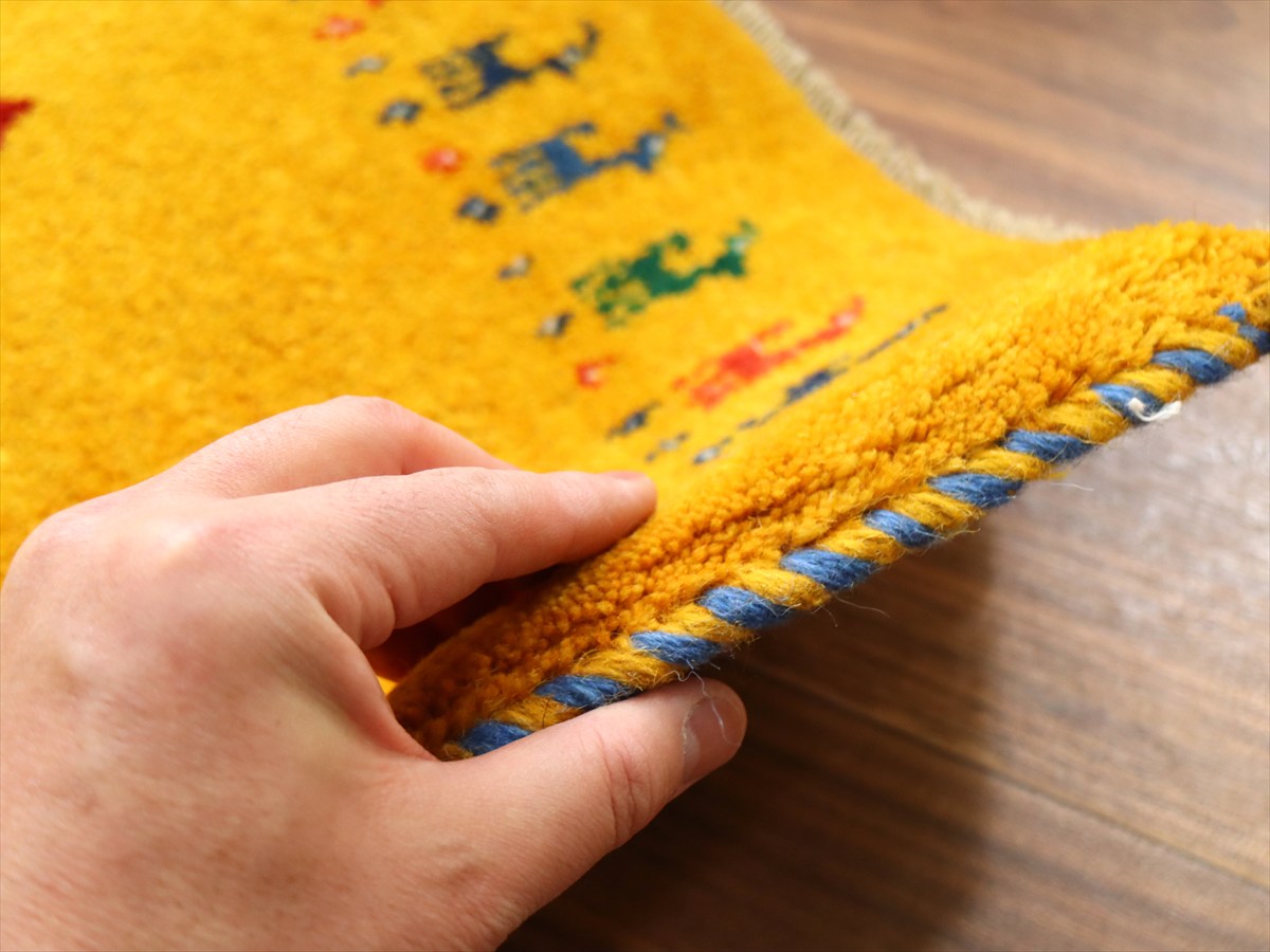 ぎゅっと引き締まった織り地です。毛足は短めのすっきりした刈り込みで、ギャベの厚みは1.7-1.8cm程度。