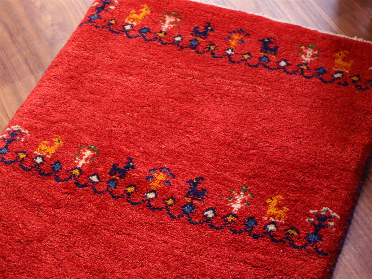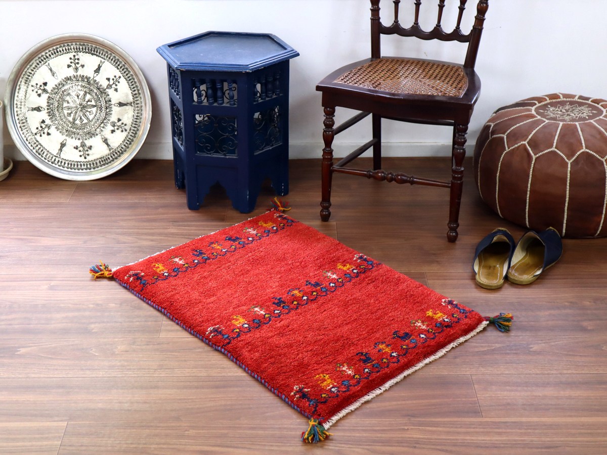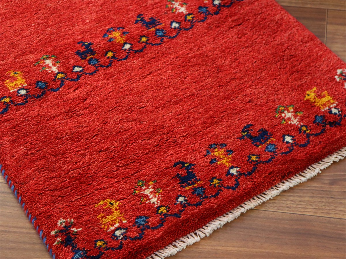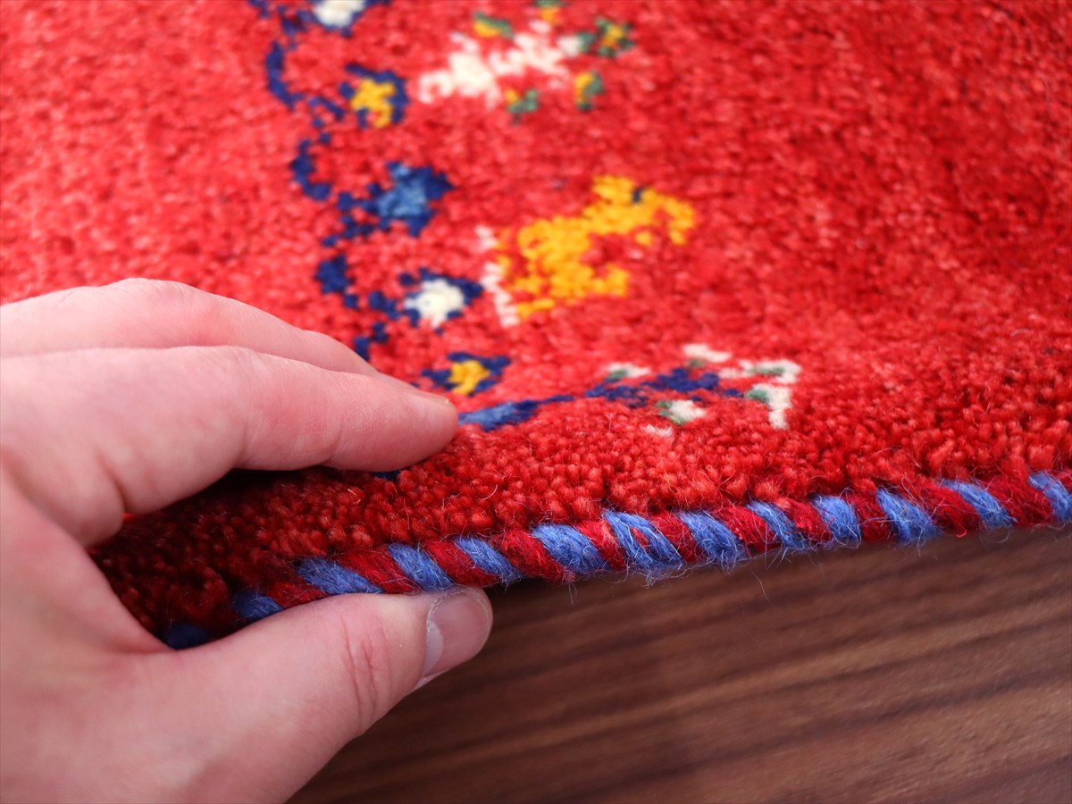 毛足を含めたギャッベの厚みは2cm弱で、ぎゅっと目の詰まった織り。