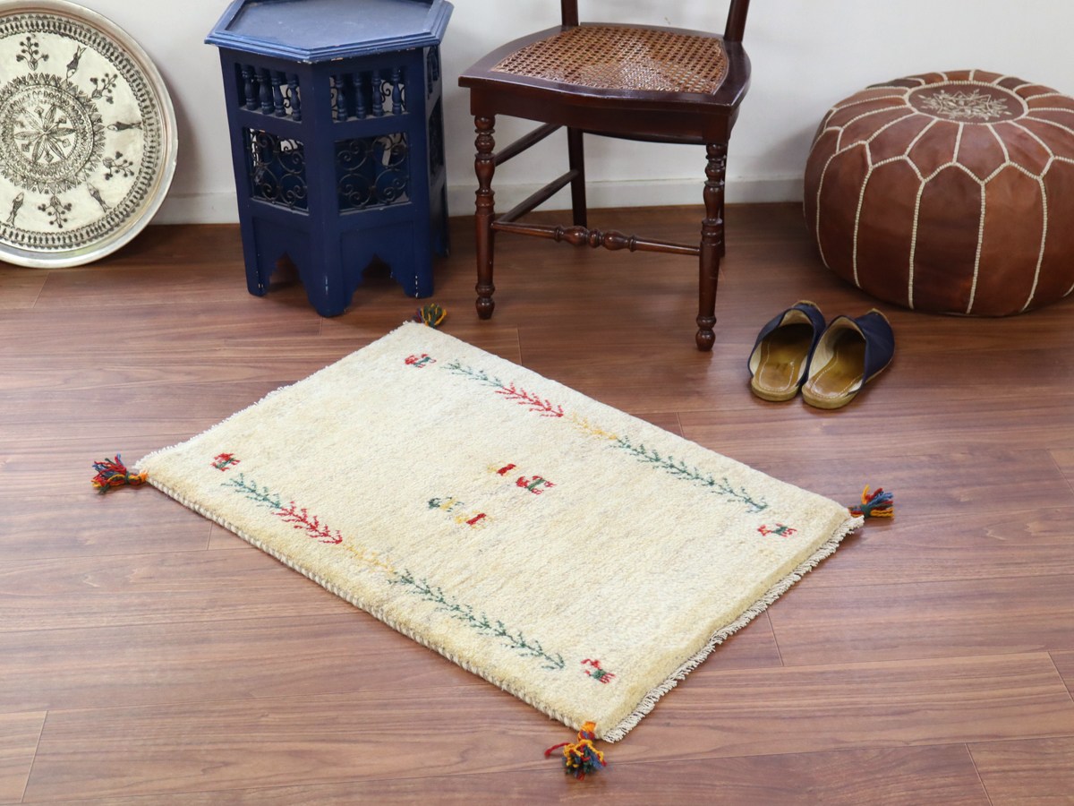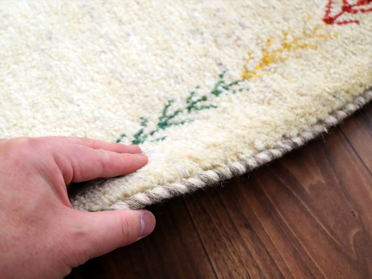 毛足が長く、パイルを含めたギャッベ全体の厚みは2.2-2.3cm程度。ボリューム感たっぷりのふかふかギャッベです。