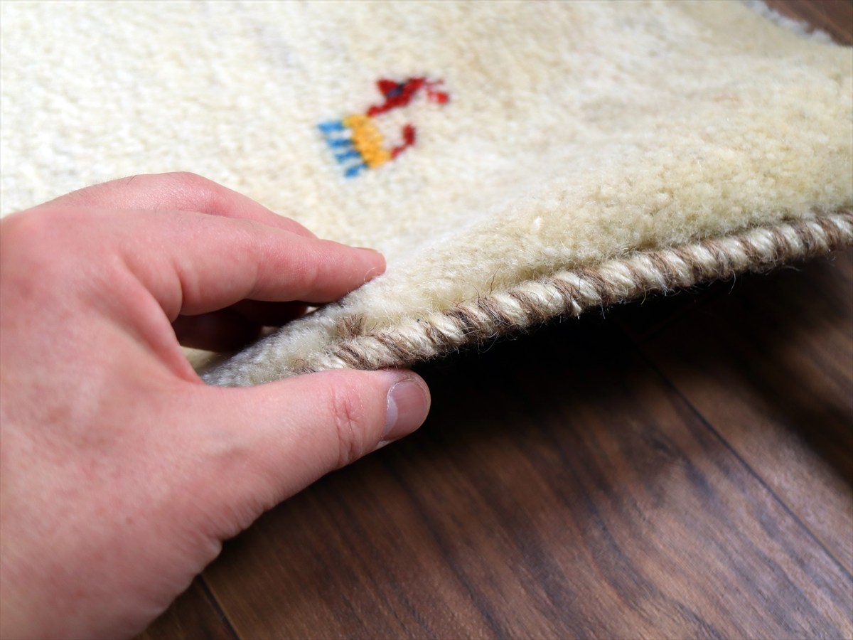 毛足が長く、パイルを含めたギャッベ全体の厚みは2.2-2.3cm程度。ボリューム感たっぷりのふかふかギャッベです。