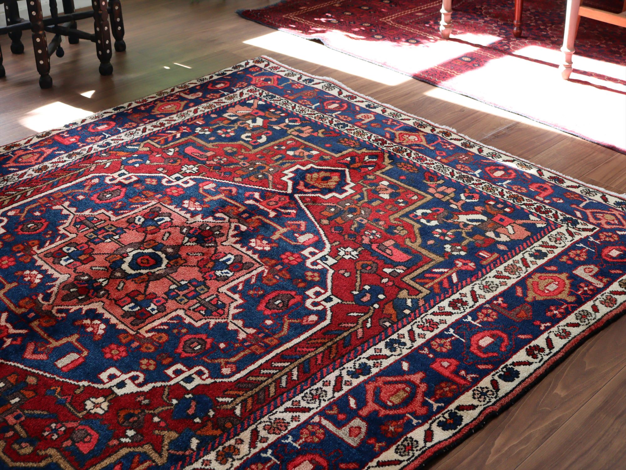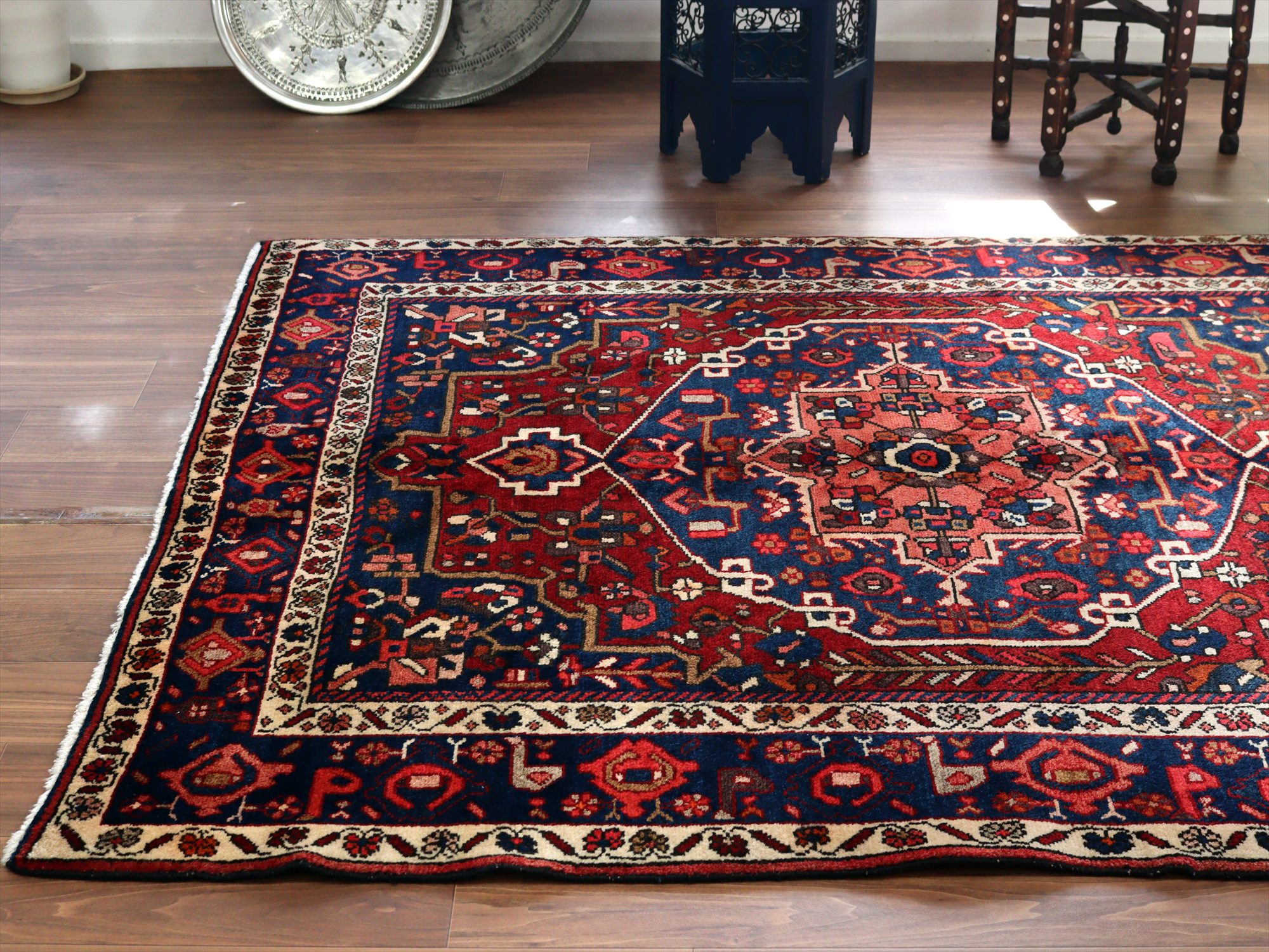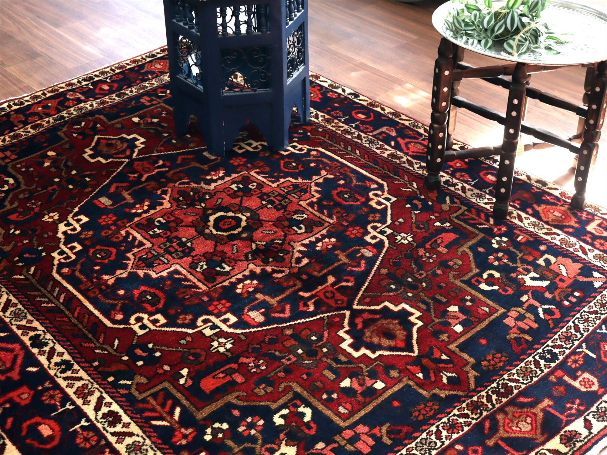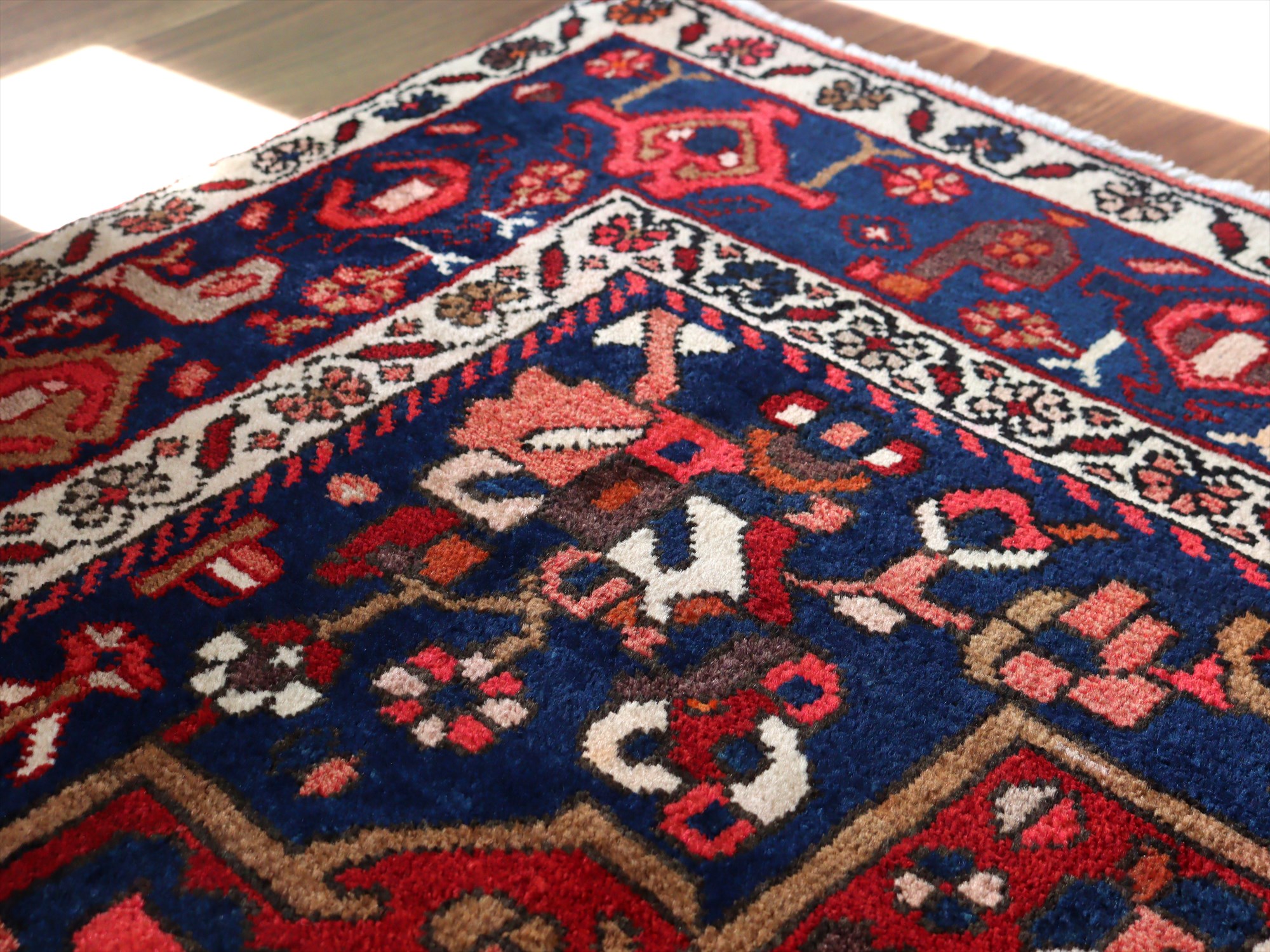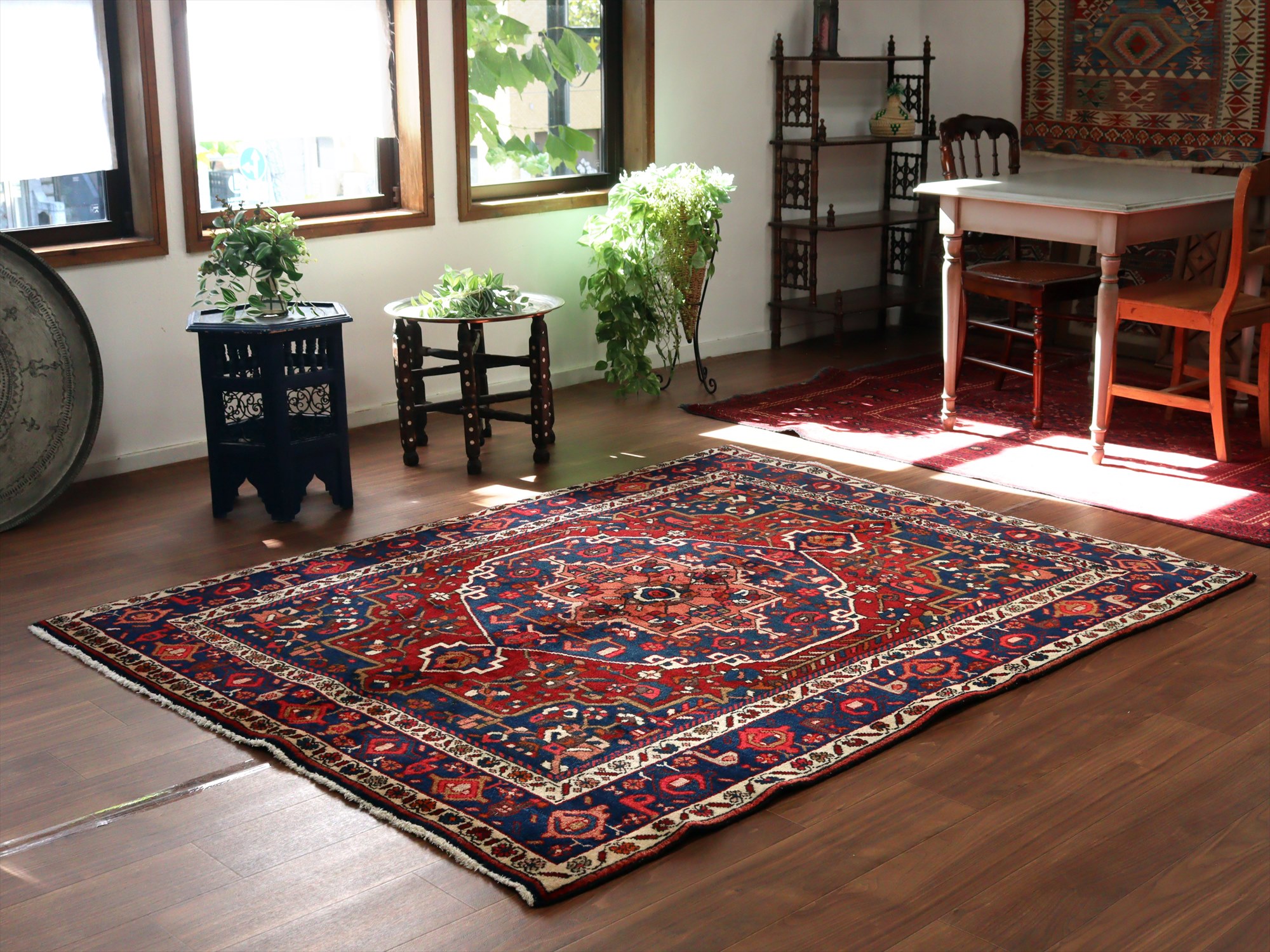 イランの手織り絨毯 バクティアリ202×158cm 花形のメダリオン ネイビー