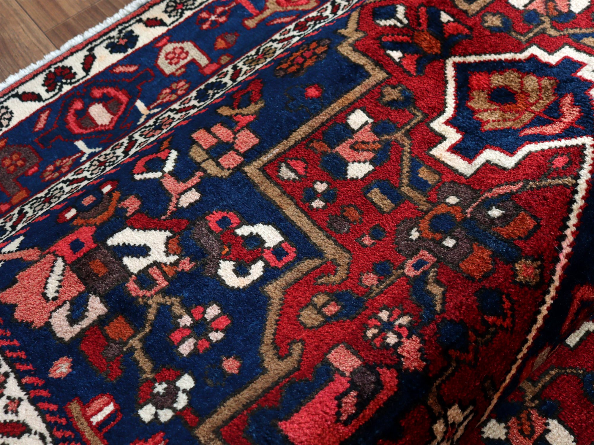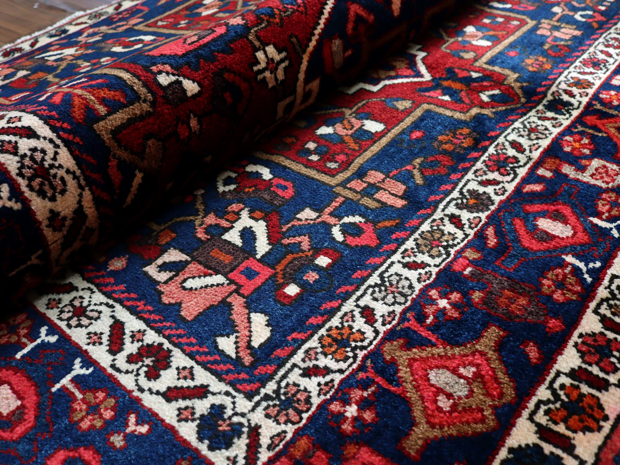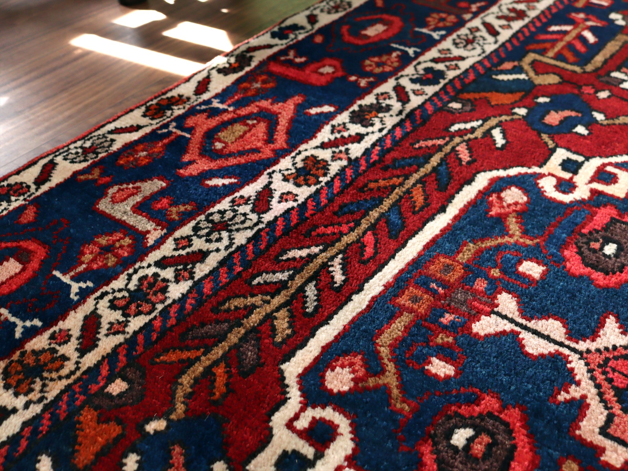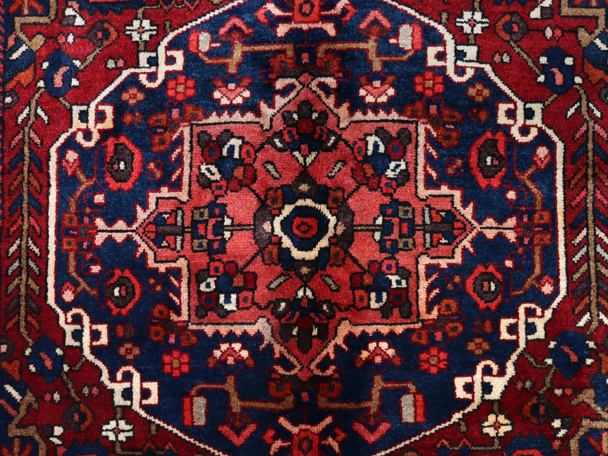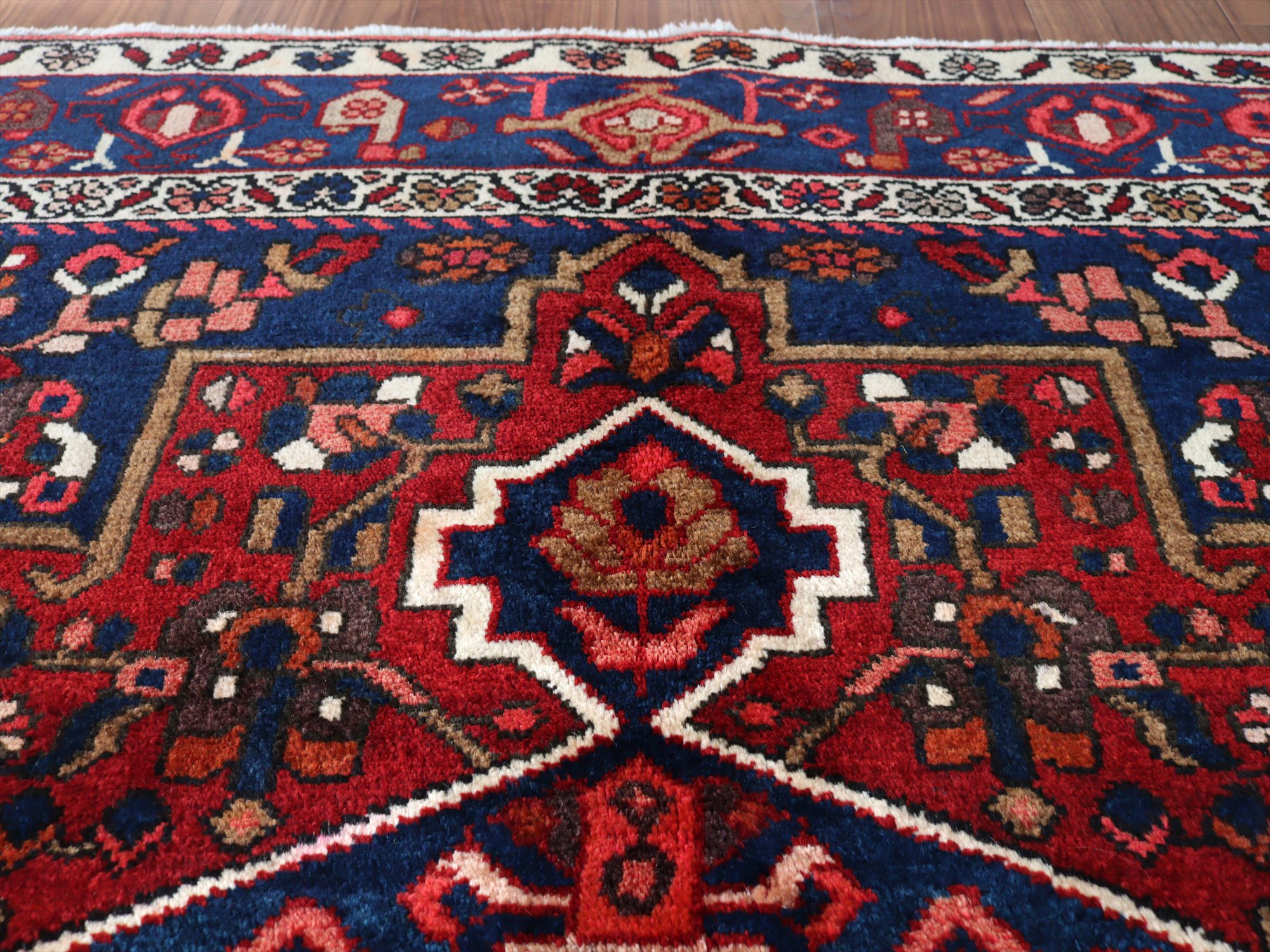 イランの手織り絨毯 バクティアリ202×158cm 花形のメダリオン ネイビー