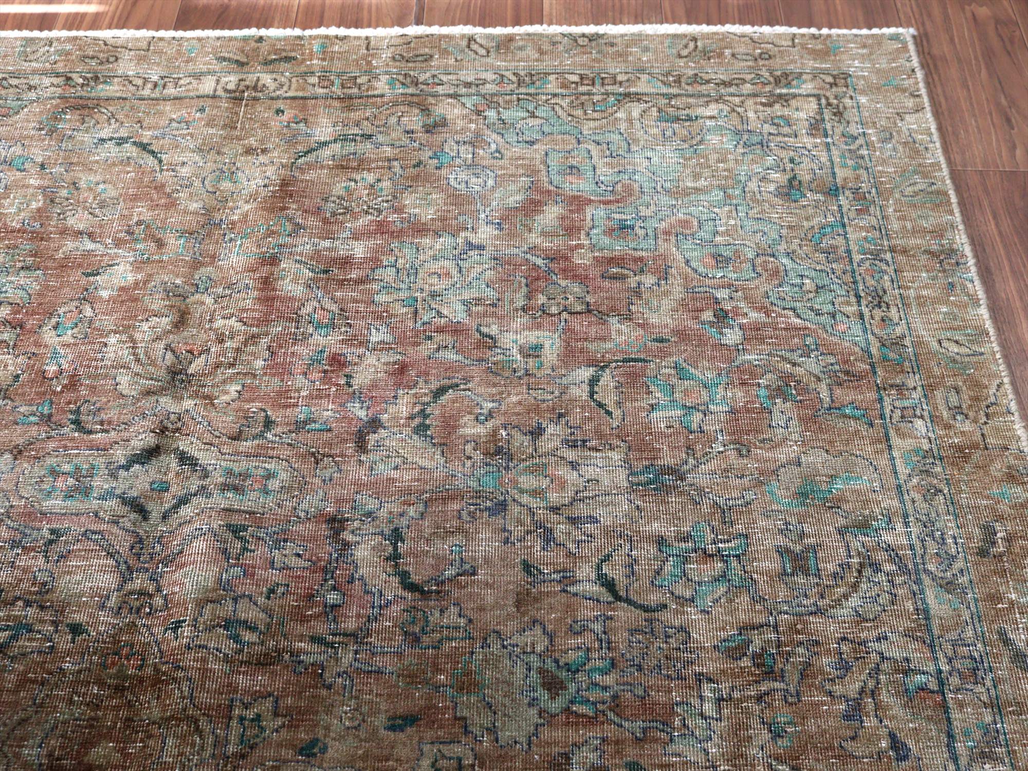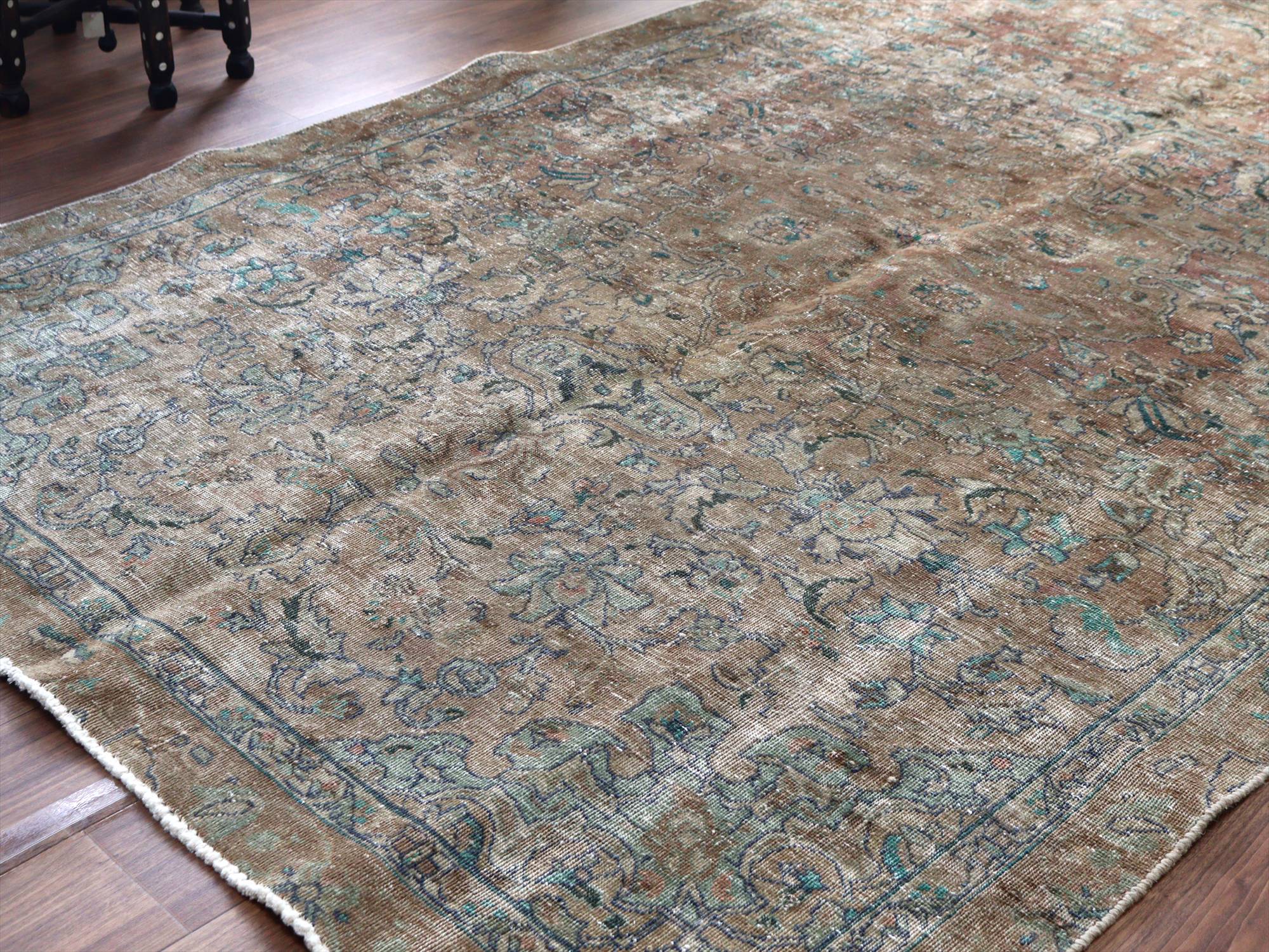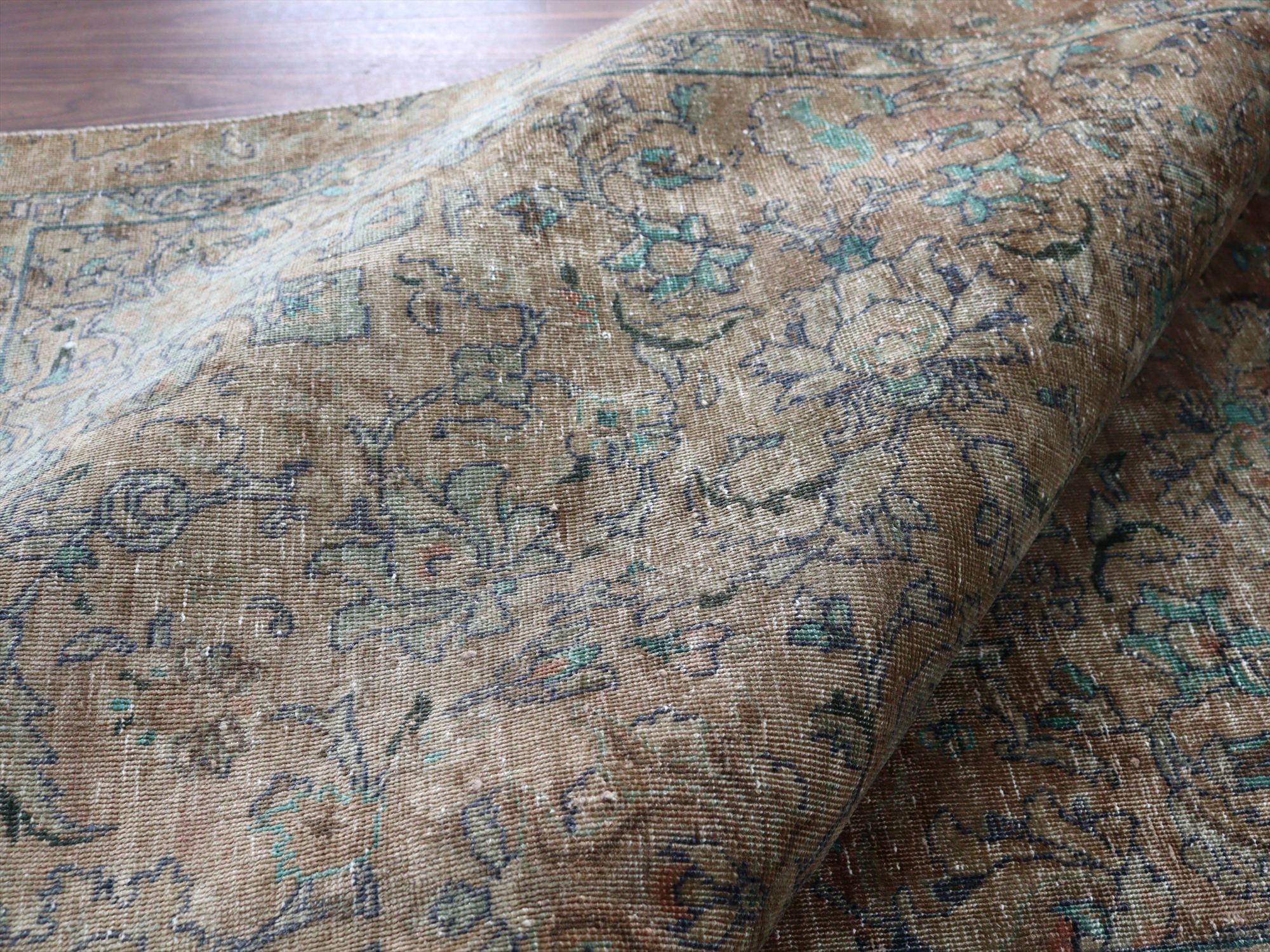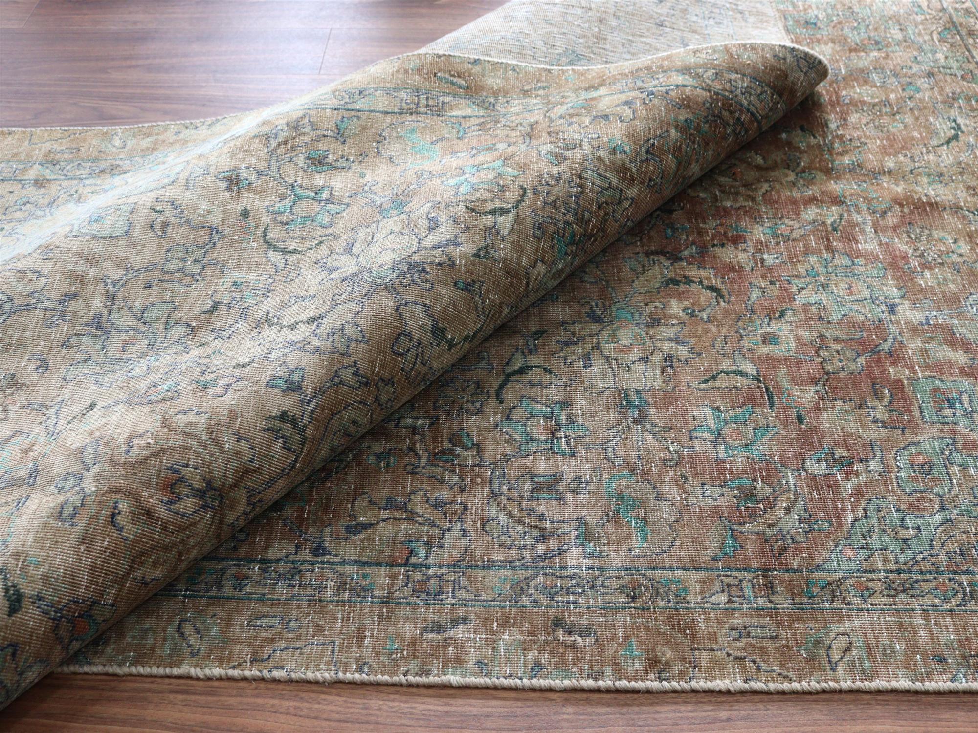 ヴィンテージラグ オーバーダイド ブラウングレー252×165cm イランの手織り絨毯 タブリーズ