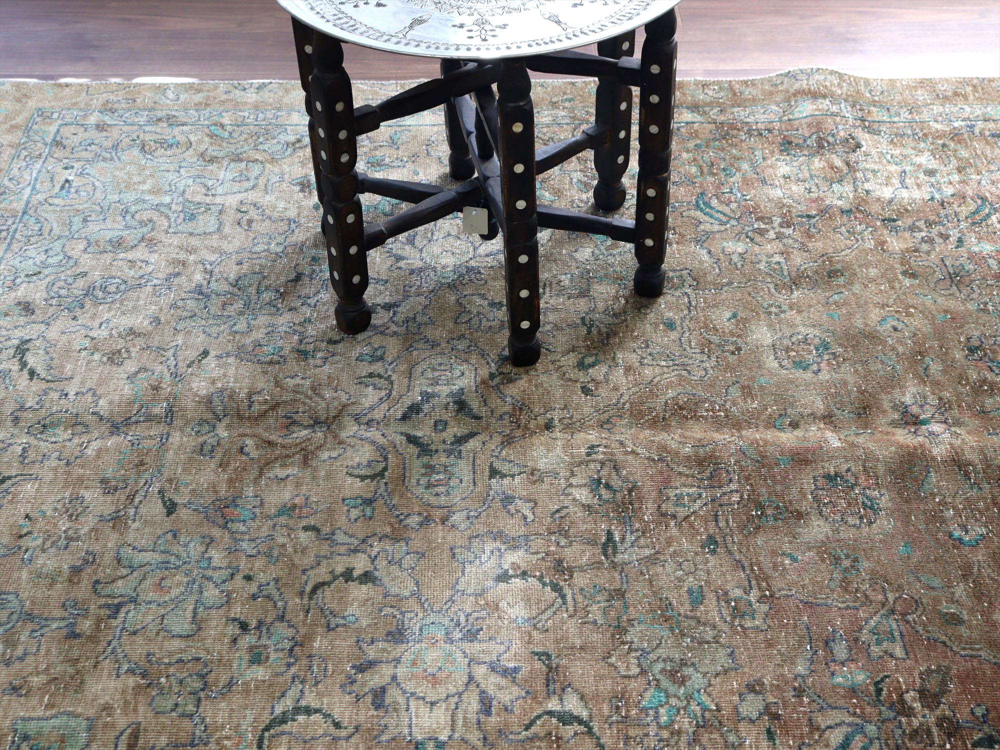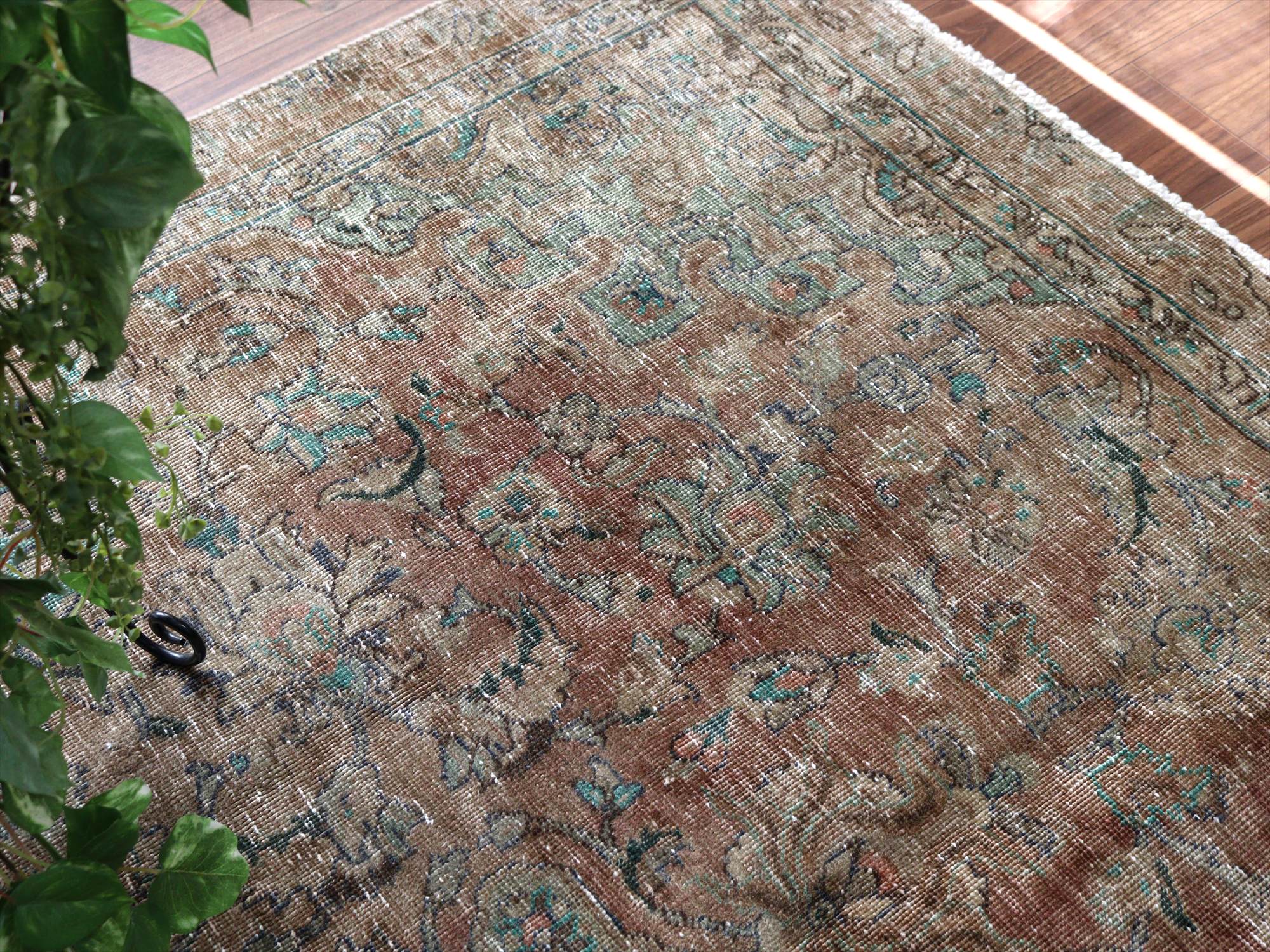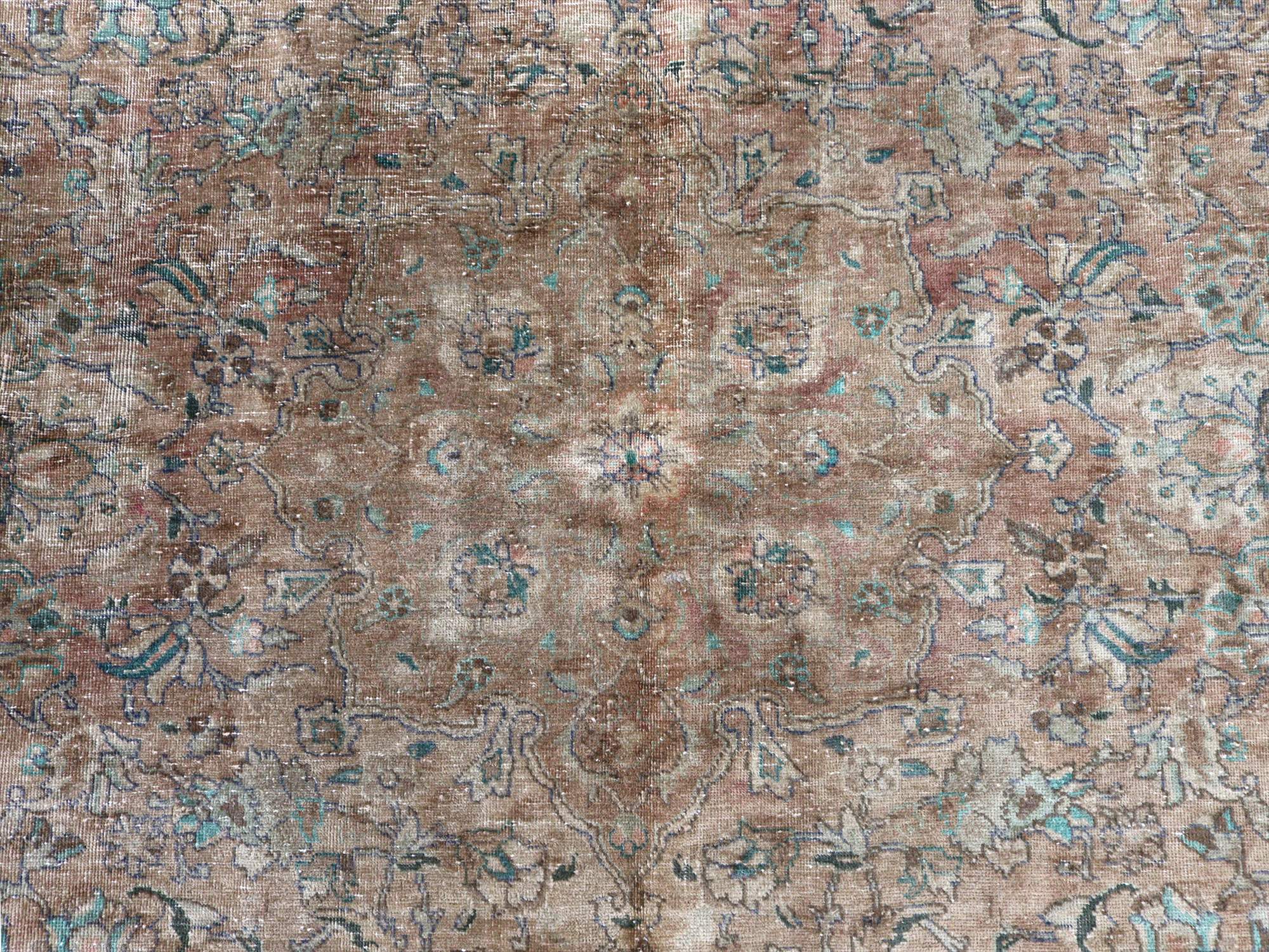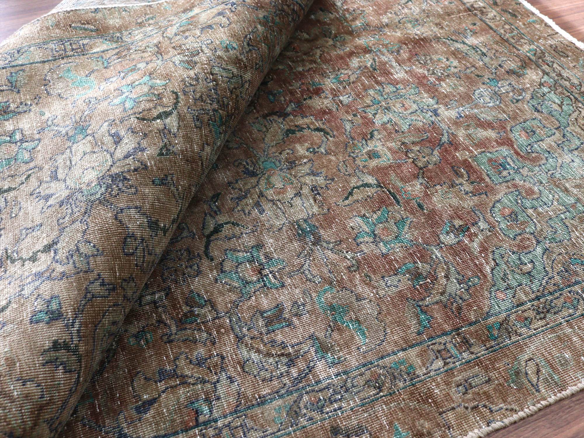ヴィンテージラグ オーバーダイド ブラウングレー252×165cm イランの手織り絨毯 タブリーズ