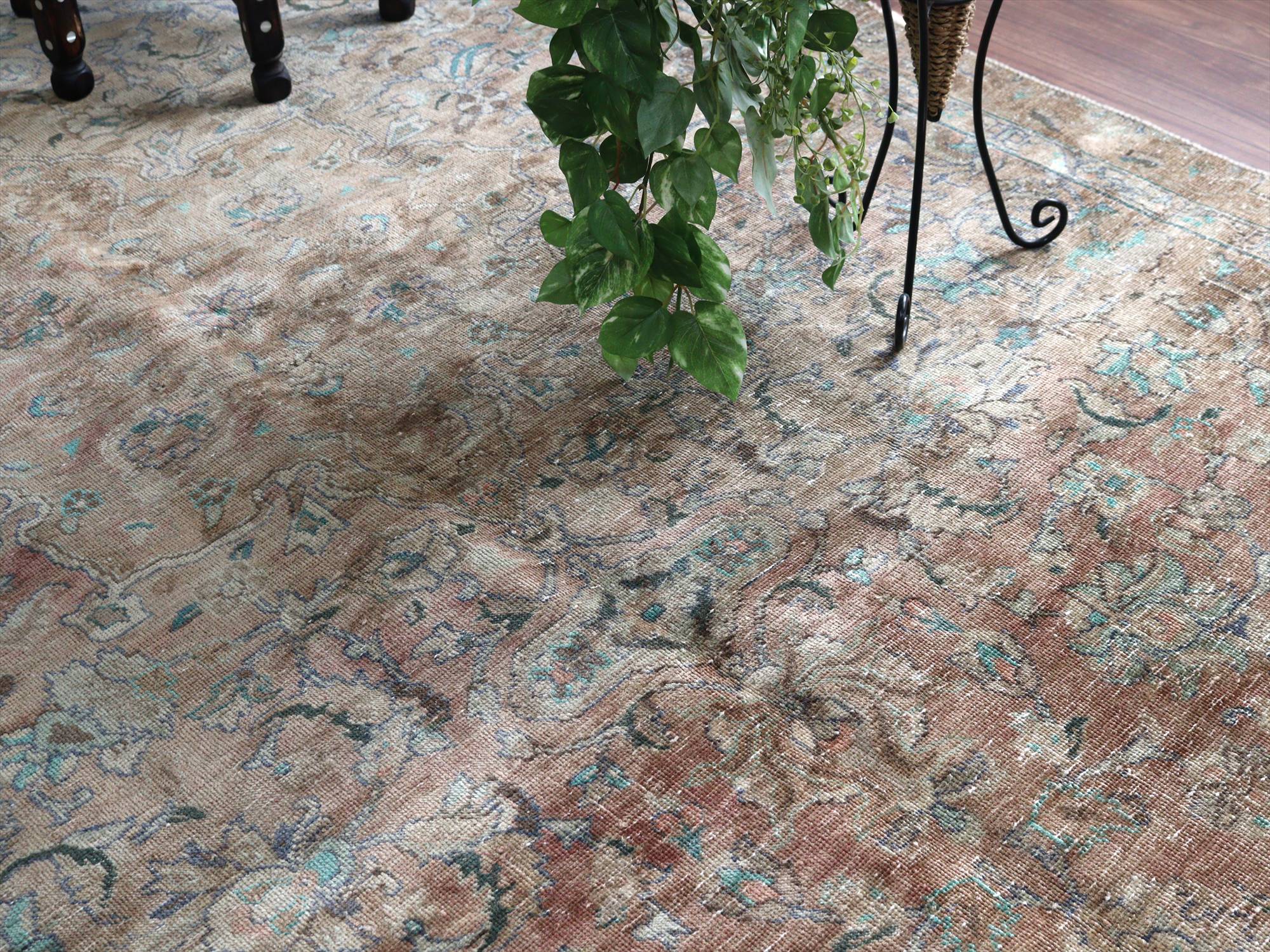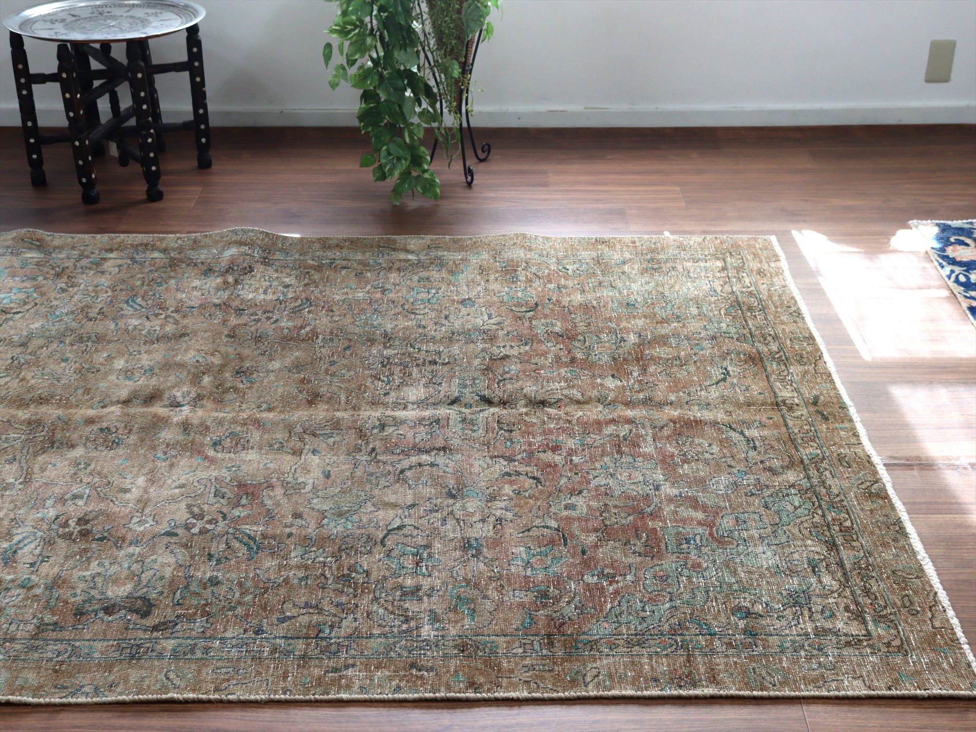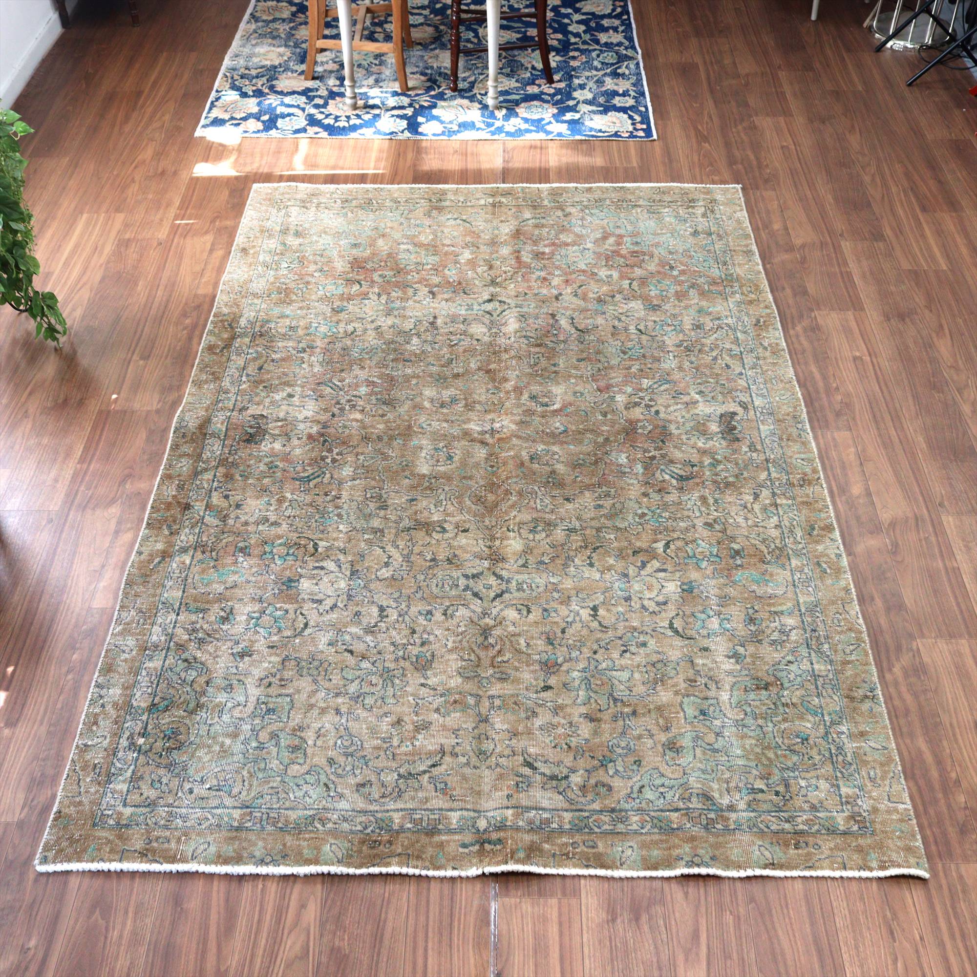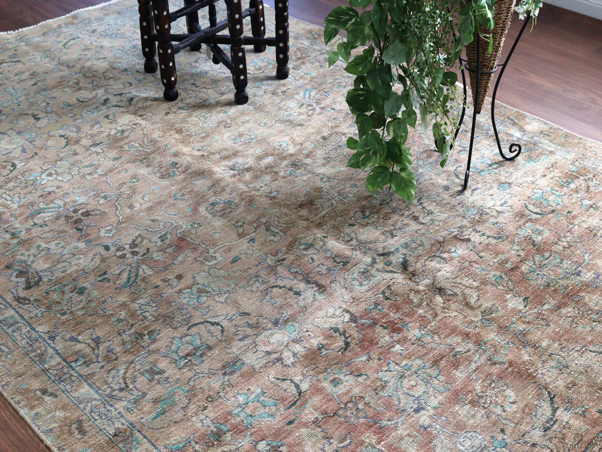 ヴィンテージラグ オーバーダイド ブラウングレー252×165cm イランの手織り絨毯 タブリーズ