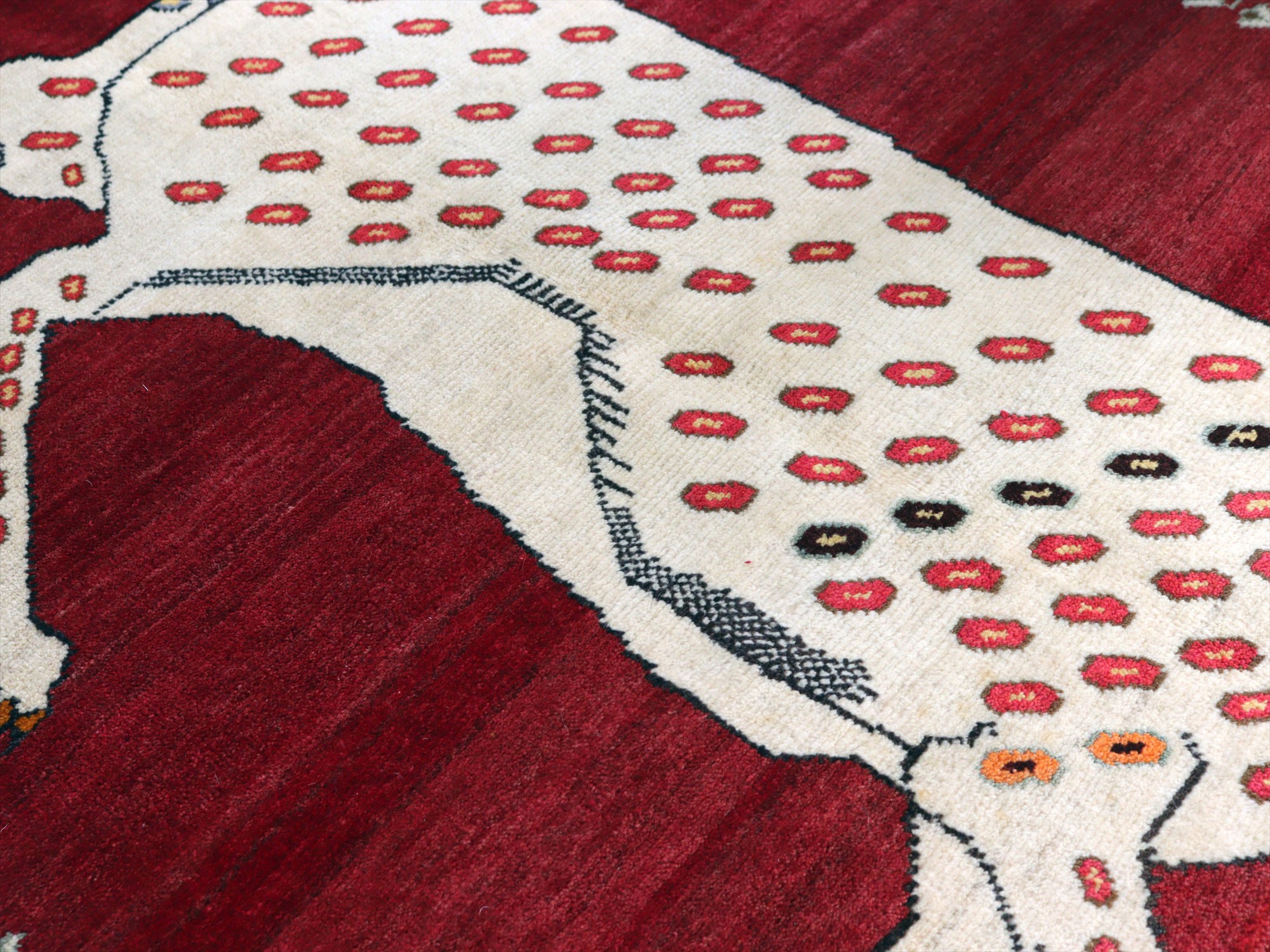 パイルはすっきりと刈られていてモチーフがきれいに表現されています。表面は滑らかな手触りです。