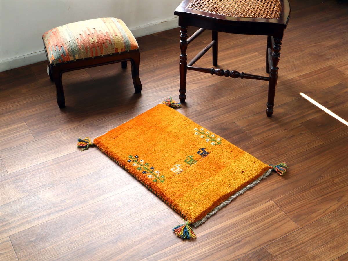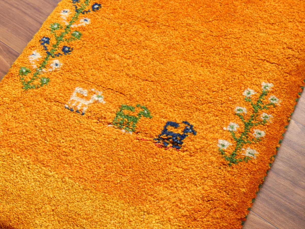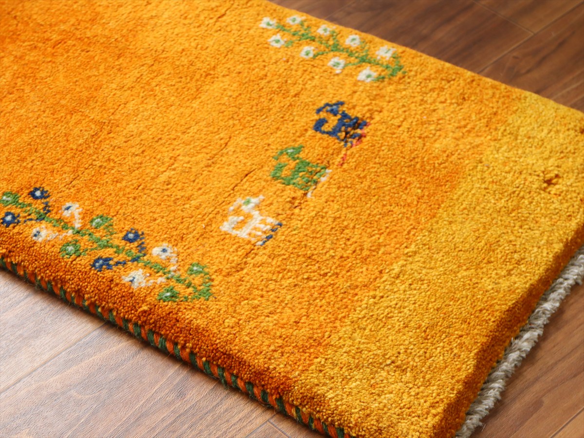 毛足が長くボリュームあるふっくらとした織り地のギャッベ。パイル(毛足)を含めた厚みは2.3-2.4cmほどで、分厚いという表現がぴったりの手織り絨毯です。