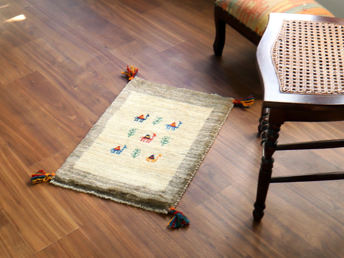 毛足を含めたギャッベの厚みは2cm弱で、ぎゅっと目の詰まった織り。