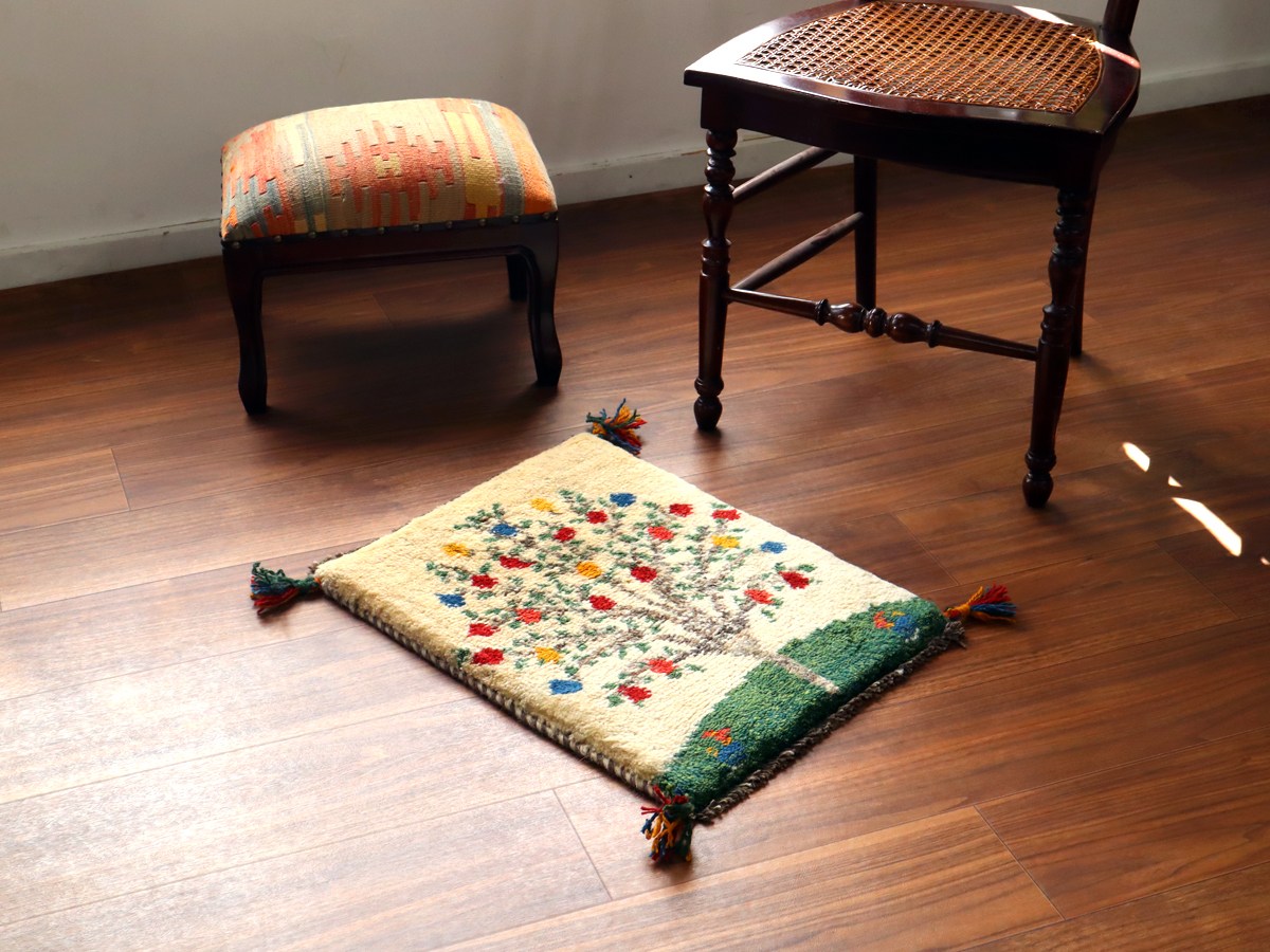 毛足(パイル)が長く、ふかふかとしたボリュームのある織りのギャッベです。ベースを含めたラグ全体の厚みは2cm前後。