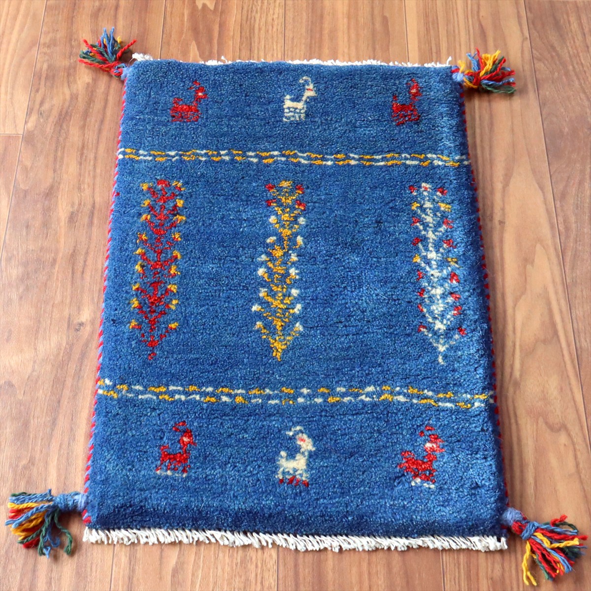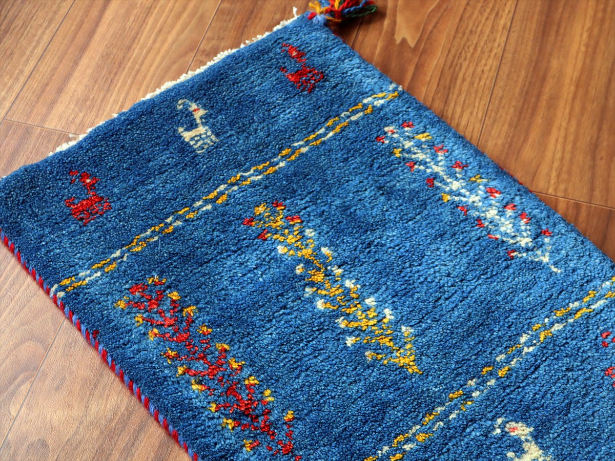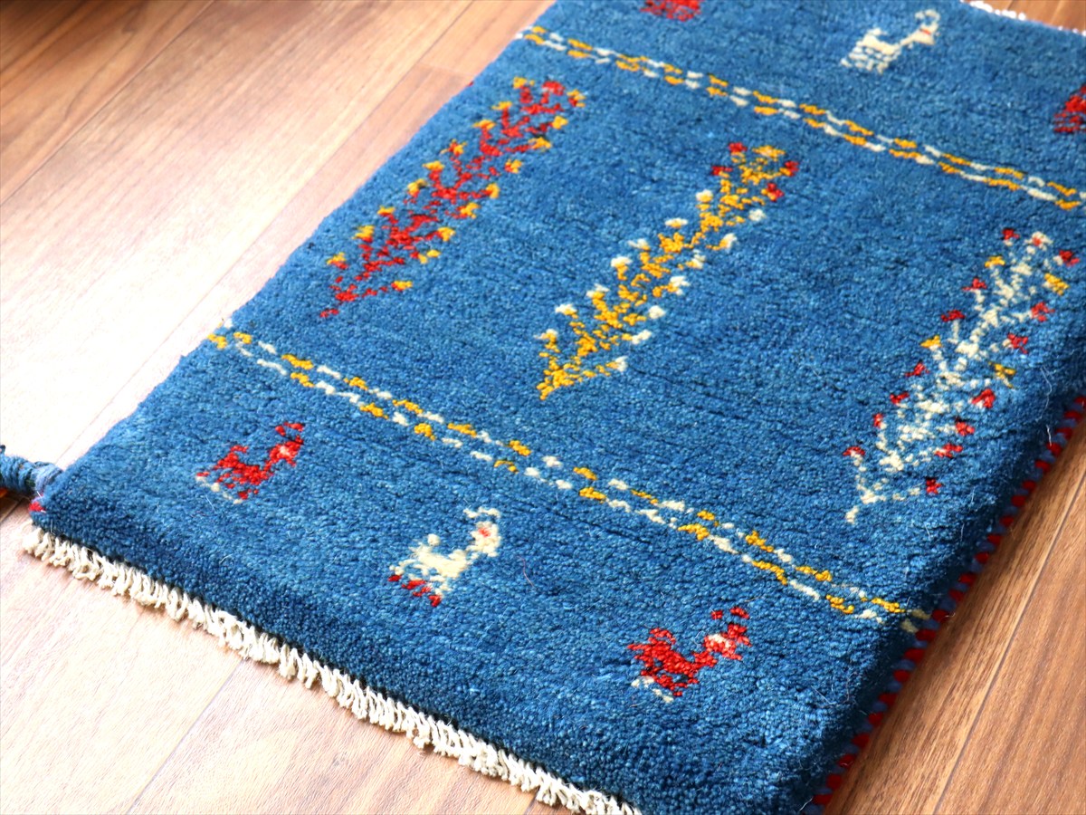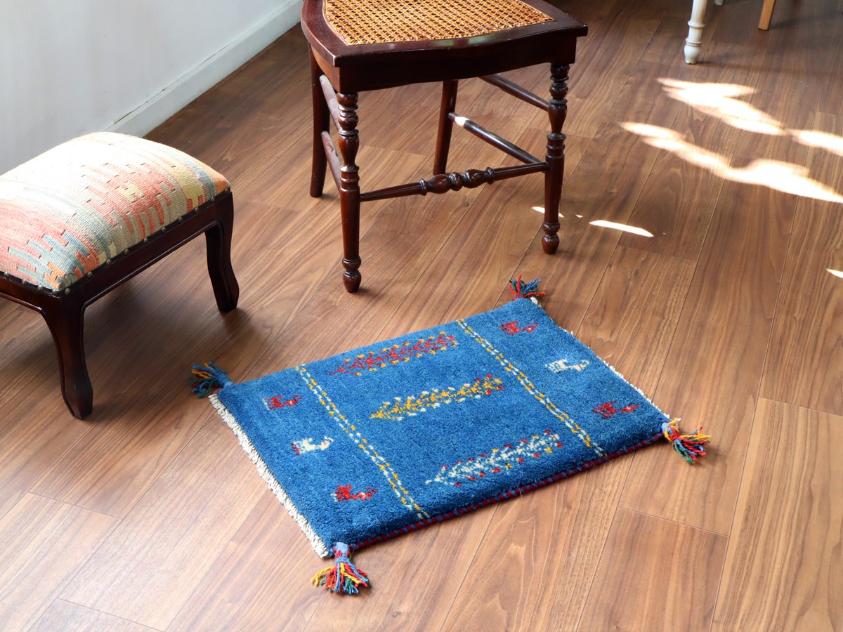 ぎゅっと引き締まった織り地です。毛足は短めのすっきりした刈り込みで、ギャベの厚みは1.7-1.8cm程度。