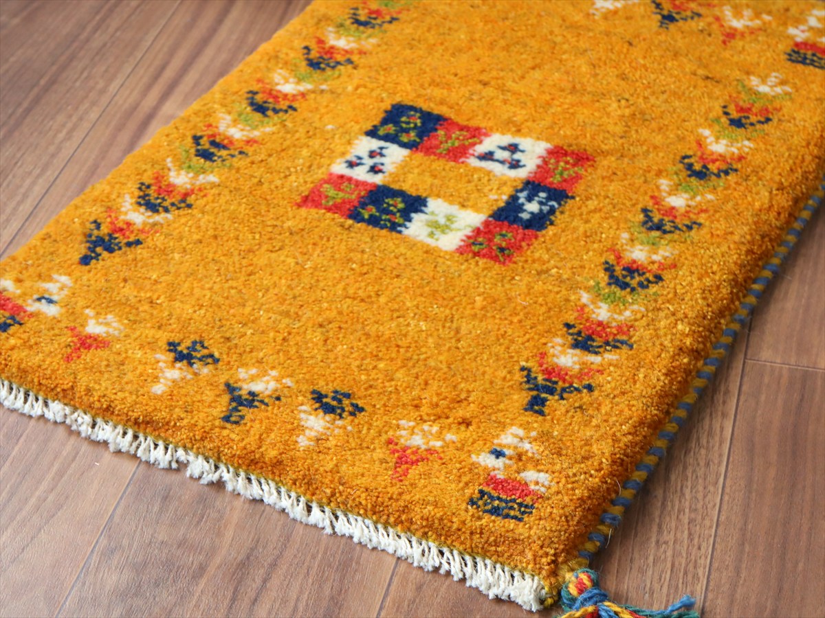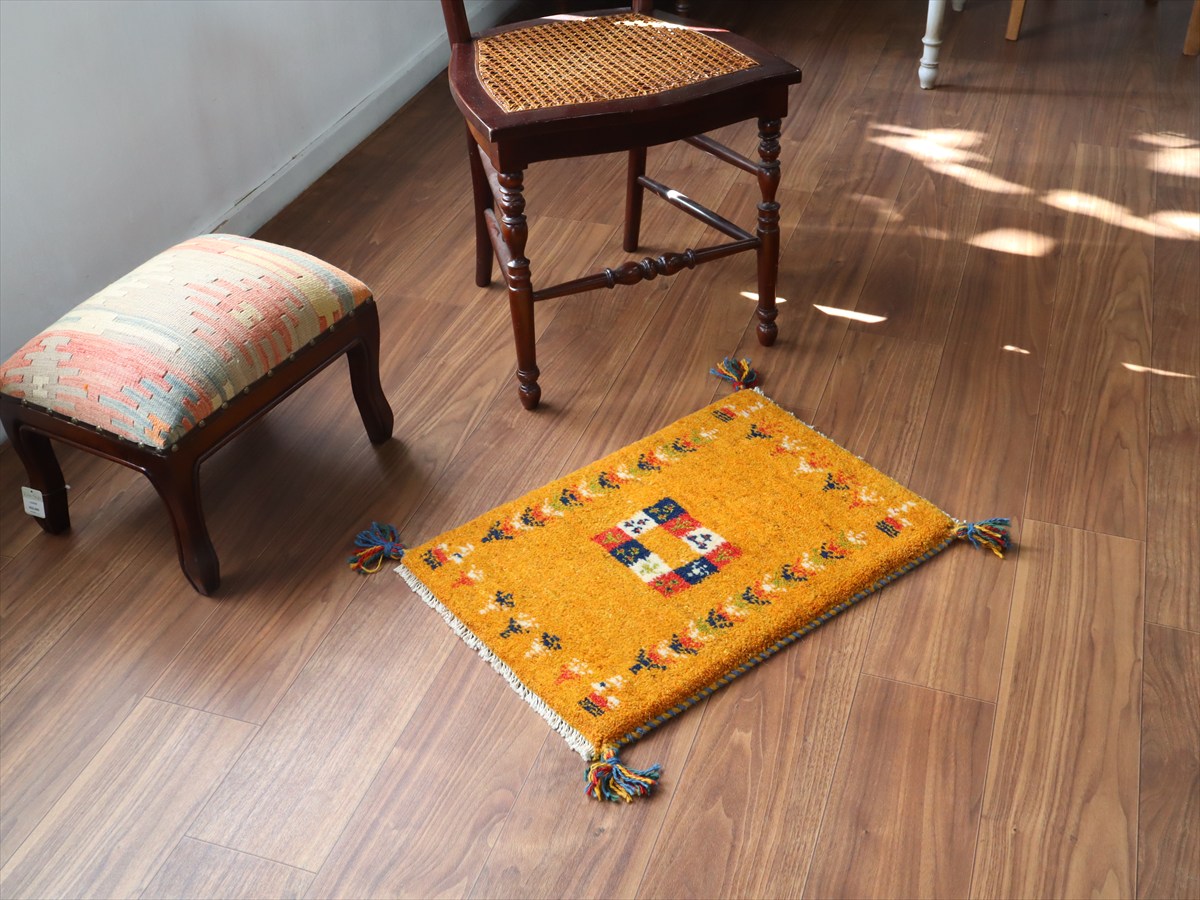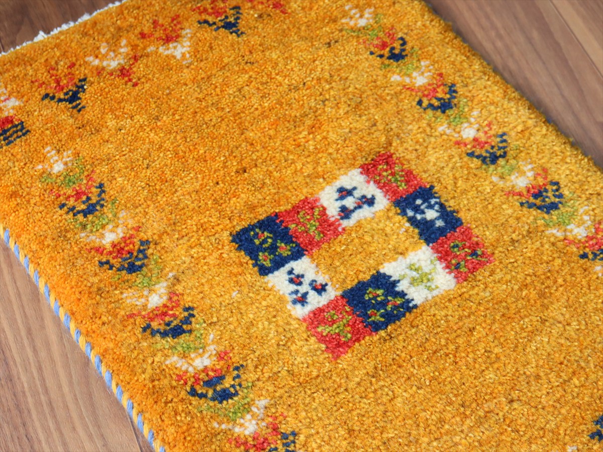毛足を含めたギャッベの厚みは2cm弱で、ぎゅっと目の詰まった織り。