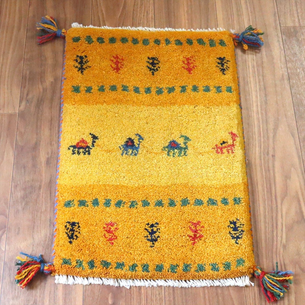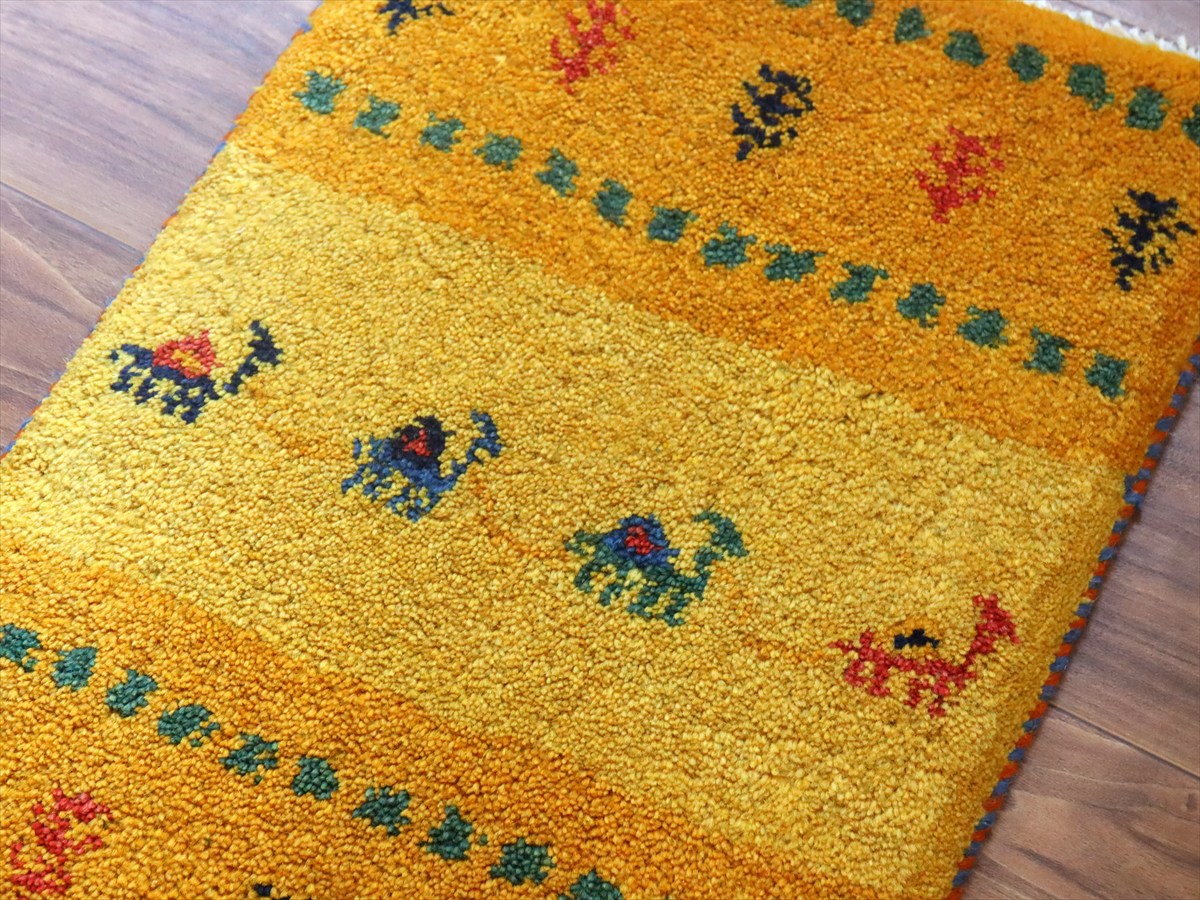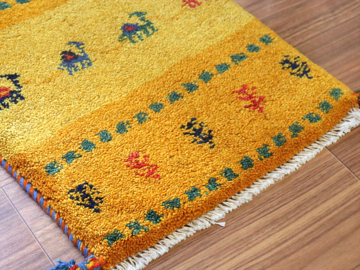 ザクロの実の皮などで染めた発色の良い明るいオレンジイエローをベースに、ラクダのキャラバンと生命の樹が織られています。