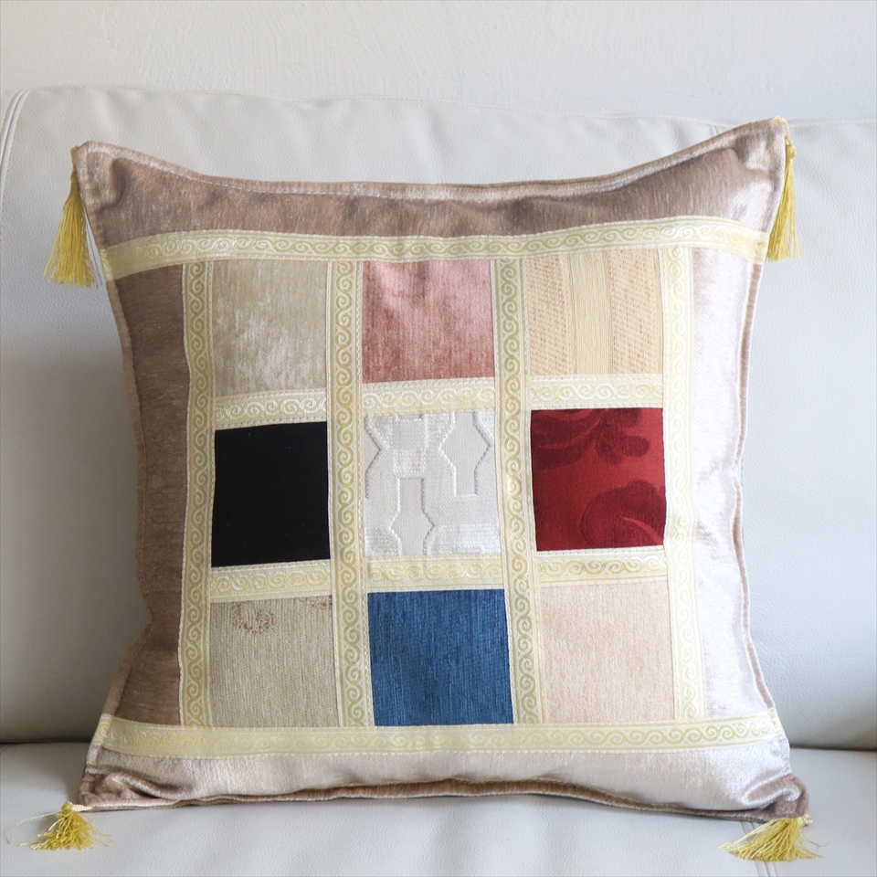 シュニール素材 モザイククッションカバー 45cmサイズ パッチワーク