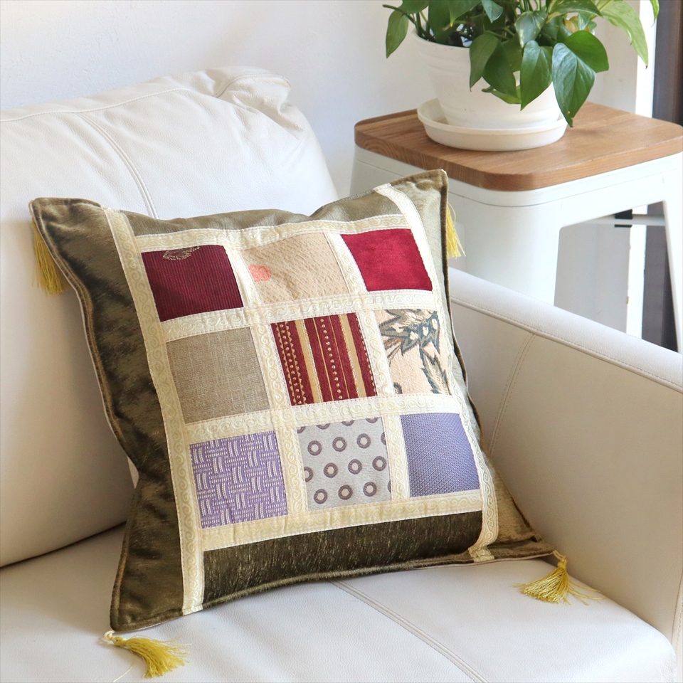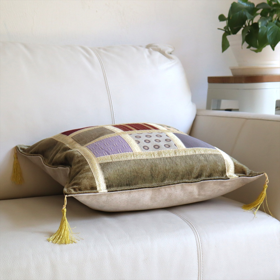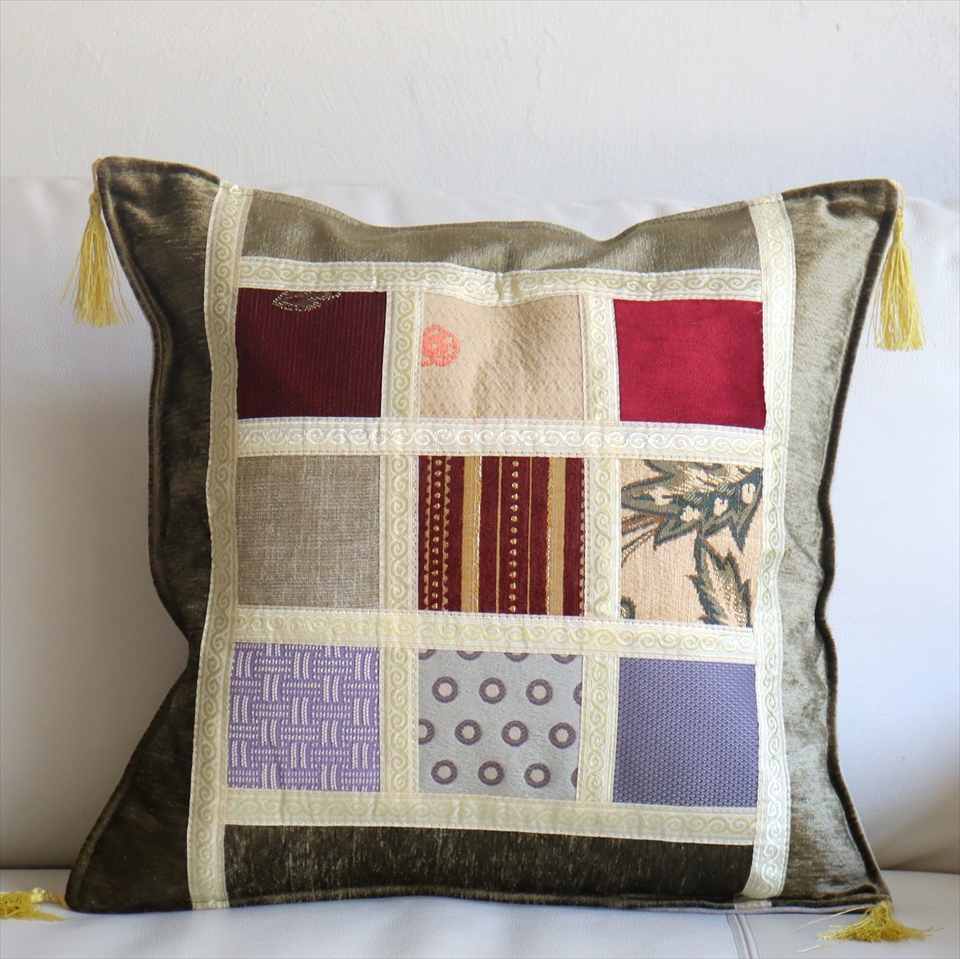 シュニール素材 モザイククッションカバー 45cmサイズ パッチワーク