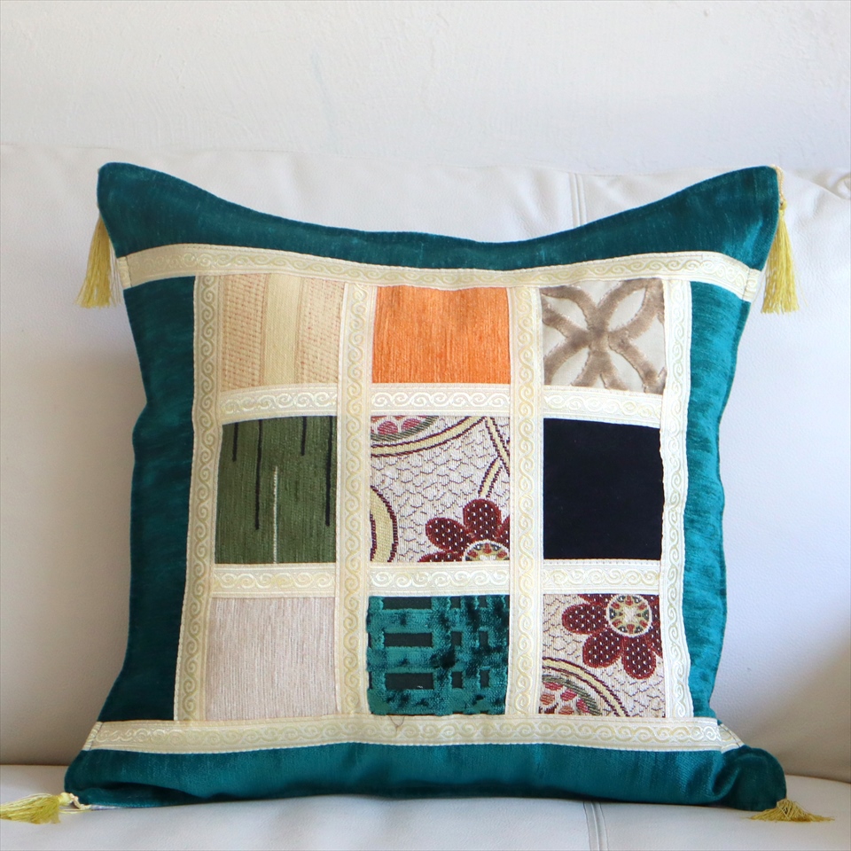 シュニール素材 モザイククッションカバー 45cmサイズ パッチワーク