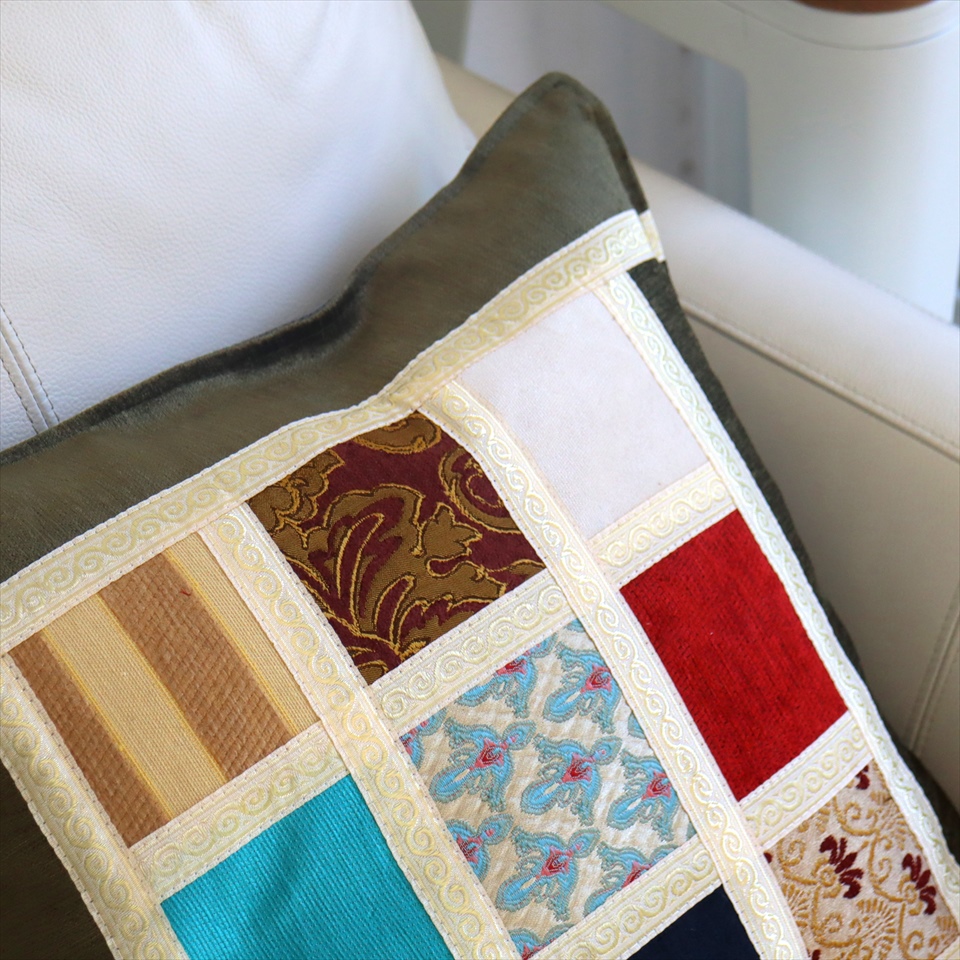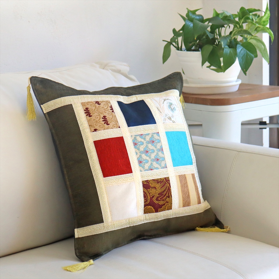 シュニール素材 モザイククッションカバー 45cmサイズ パッチワーク