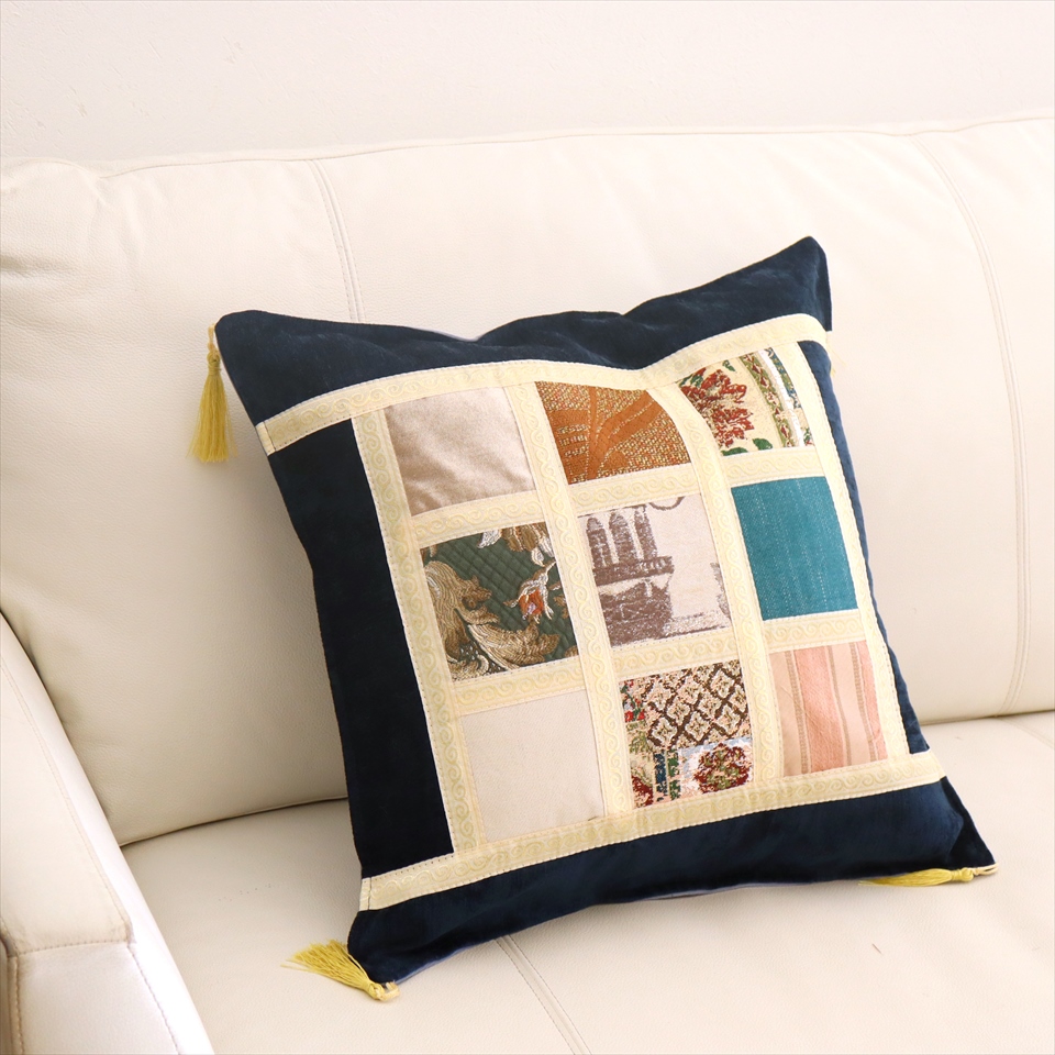 シュニール素材 モザイククッションカバー 45cmサイズ パッチワーク