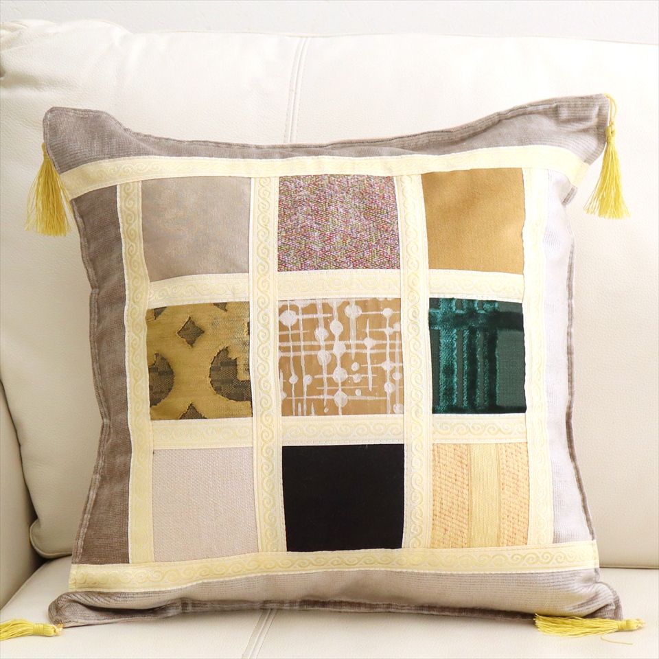 シュニール素材 モザイククッションカバー 45cmサイズ パッチワーク