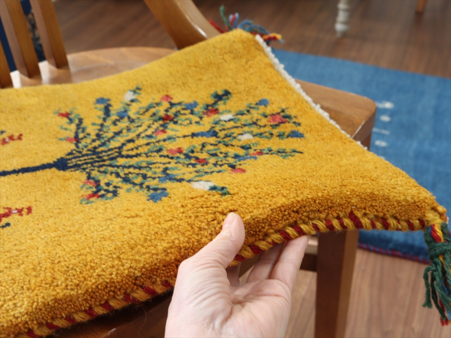 毛足(パイル)が長く、ふかふかとしたボリュームのある織りのギャッベです。ベースを含めたラグ全体の厚みは2cm前後。