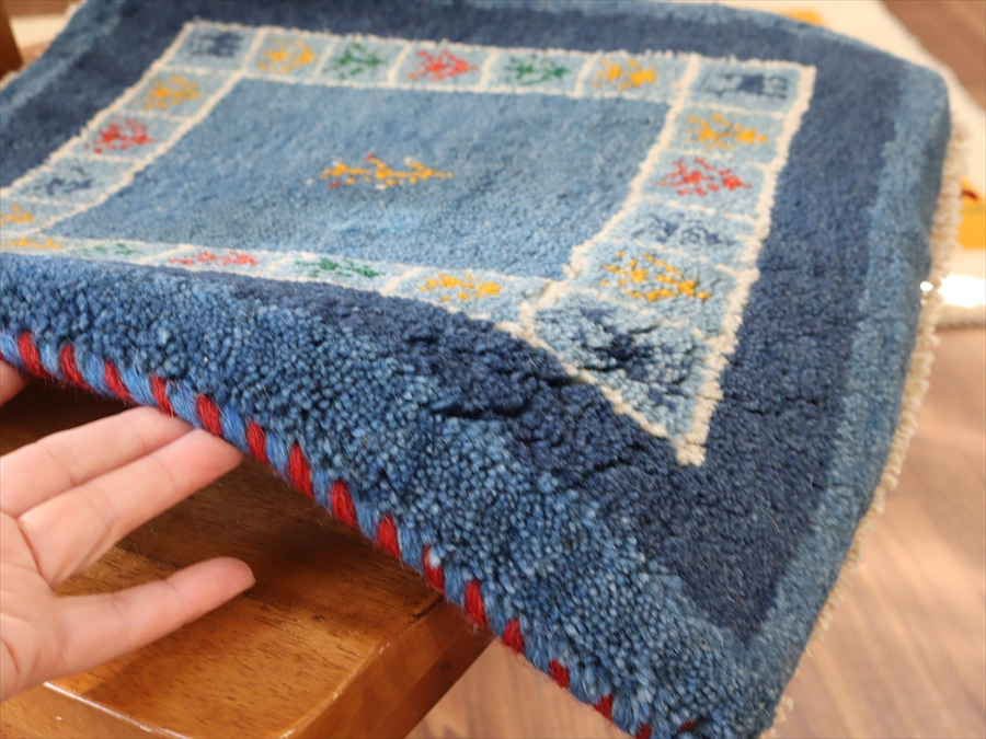 毛足が長くボリュームあるふっくらとした織り地のギャッベ。パイル(毛足)を含めた厚みは2.3-2.4cmほどで、分厚いという表現がぴったりの手織り絨毯です。