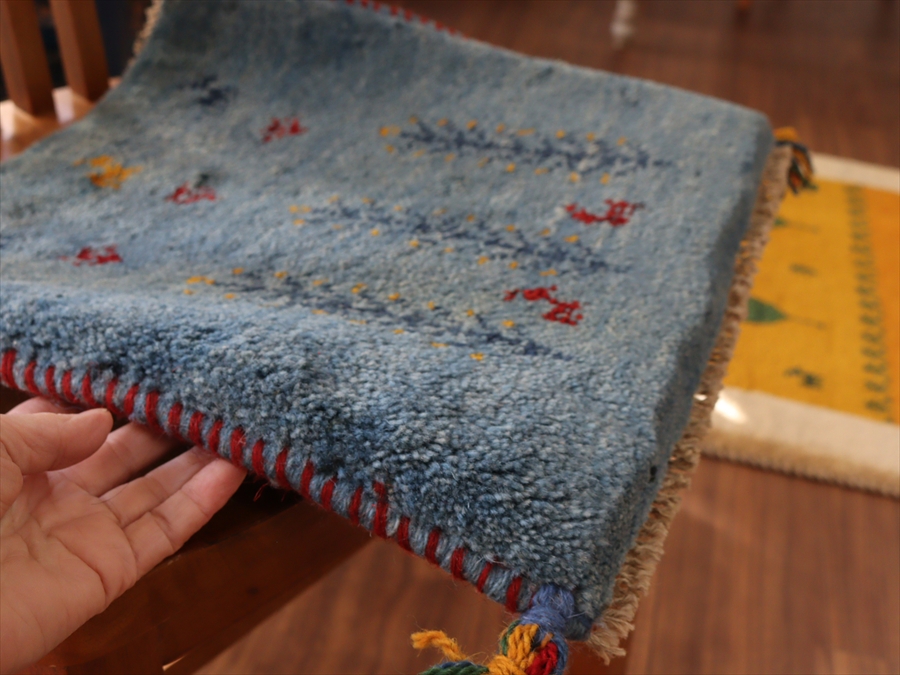毛足が長く、パイルを含めたギャッベ全体の厚みは2.2-2.3cm程度。ボリューム感たっぷりのふかふかギャッベです。