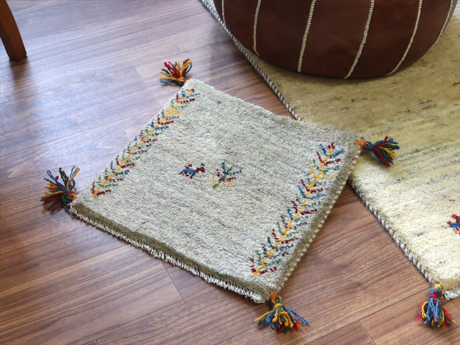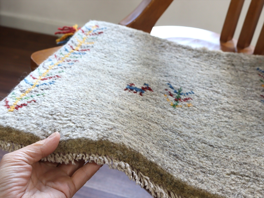 ベースはとてもやさしいグレーで、染色されていない天然の羊毛の色で織られています。