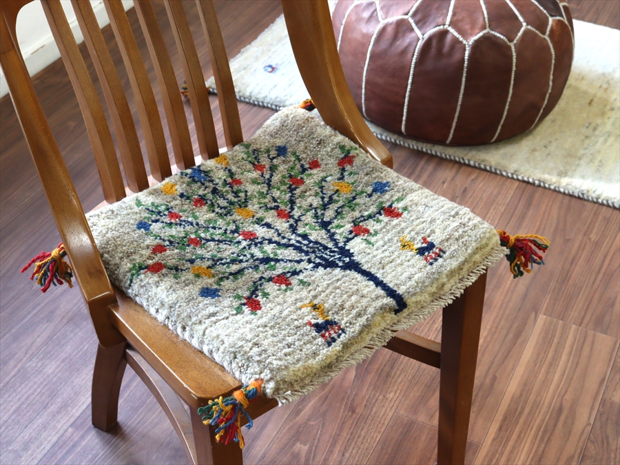 ベースは染めていない羊毛のグレー。元気に枝葉をのばす生命の木が織り込まれています。
