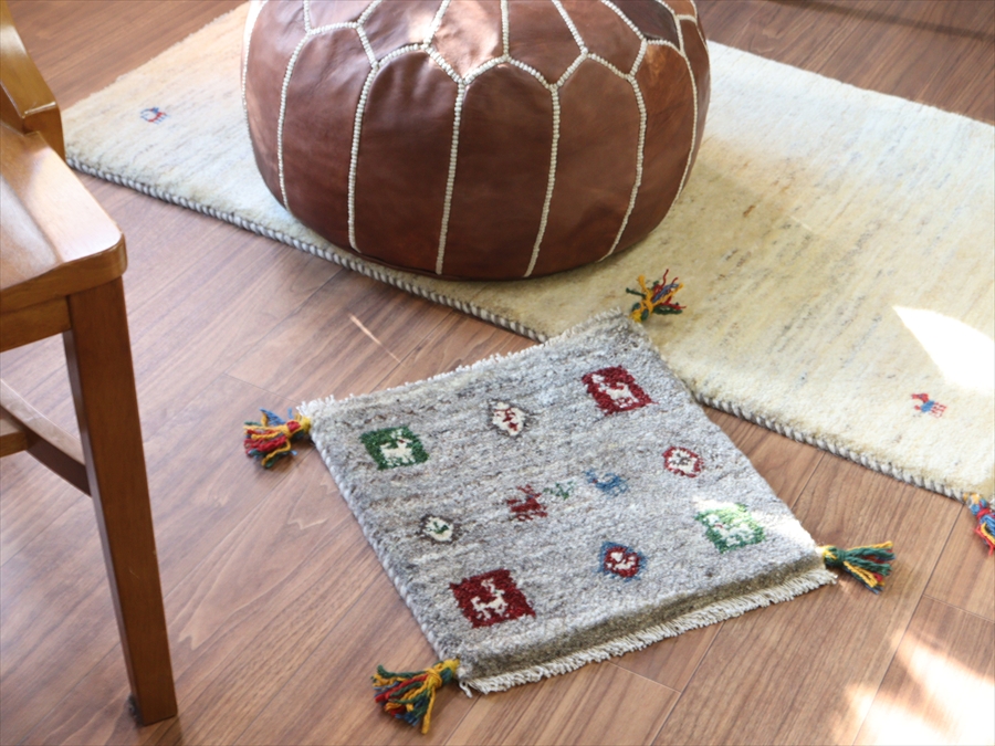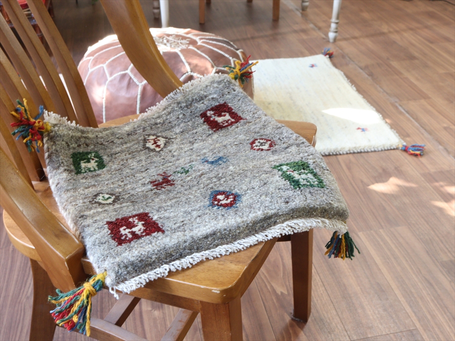 毛足が長くボリュームあるふっくらとした織り地のギャッベ。パイル(毛足)を含めた厚みは2.3-2.4cmほどで、分厚いという表現がぴったりの手織り絨毯です。