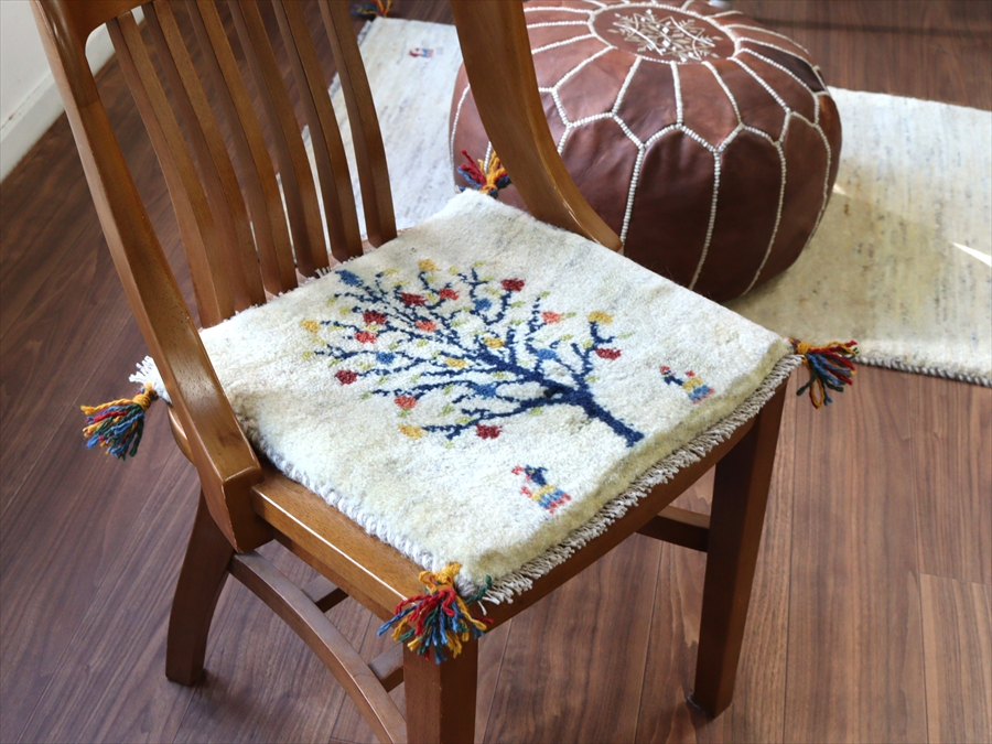 ベースは染めていない羊毛のアイボリー。元気に枝葉をのばす生命の木が織り込まれています。