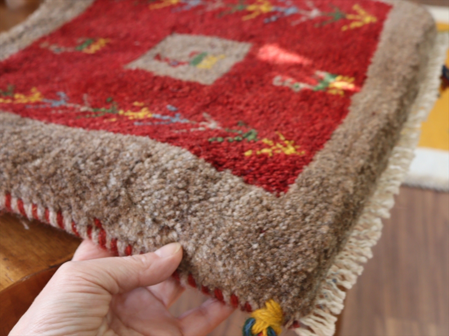 毛足が長くボリュームあるふっくらとした織り地のギャッベ。パイル(毛足)を含めた厚みは2.3-2.4cmほどで、分厚いという表現がぴったりの手織り絨毯です。