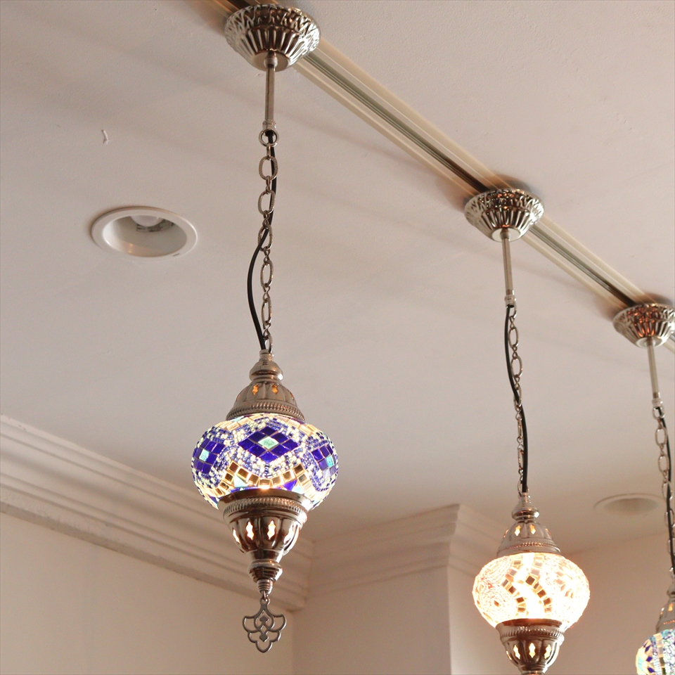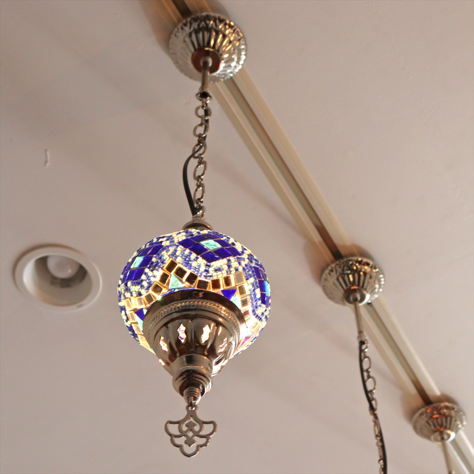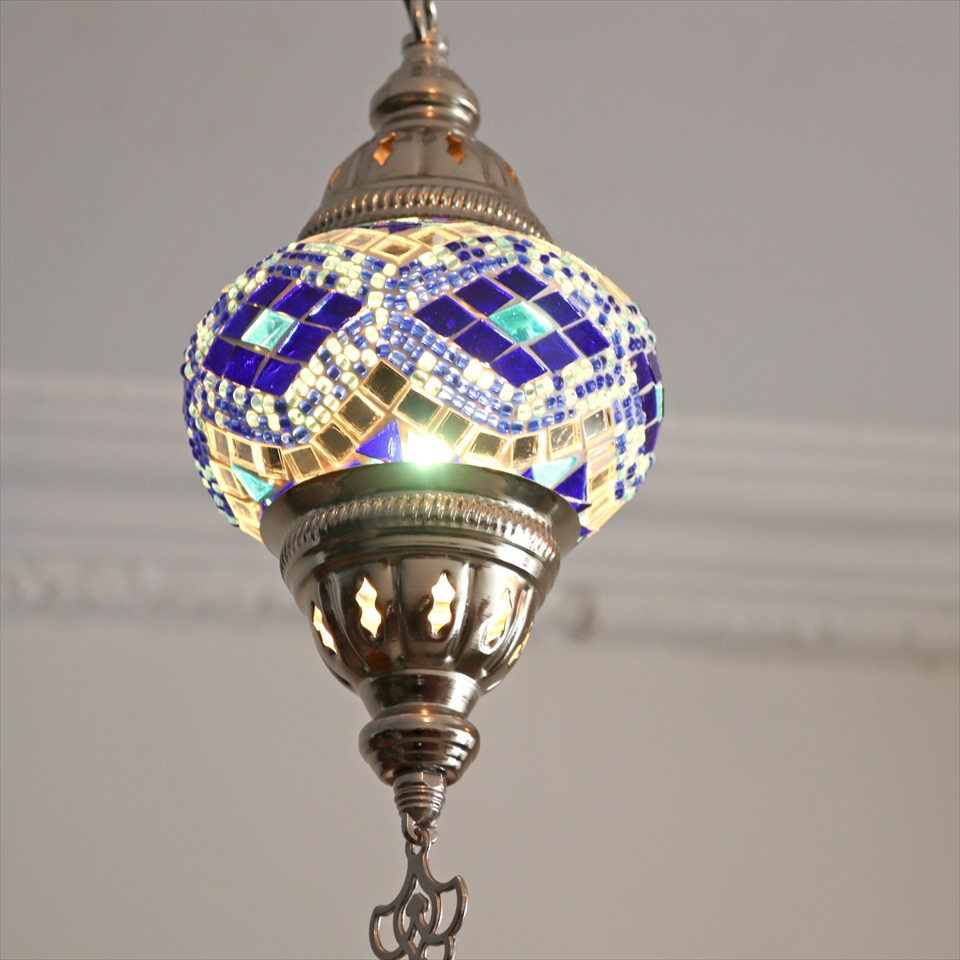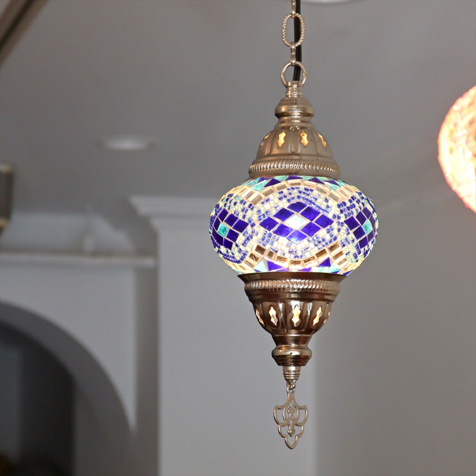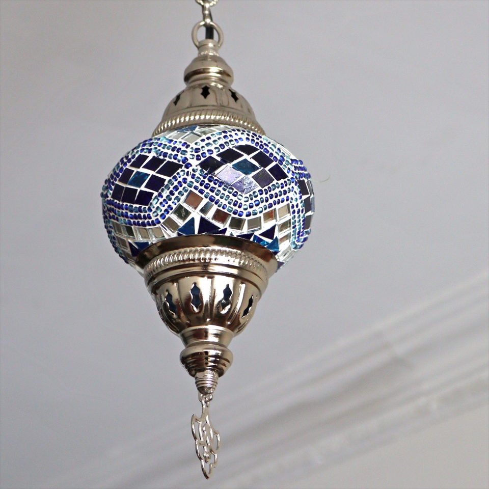 トルコランプ モザイクペンダントランプ 直径13cm 全高67cm ブルー シルバーカラーの灯具