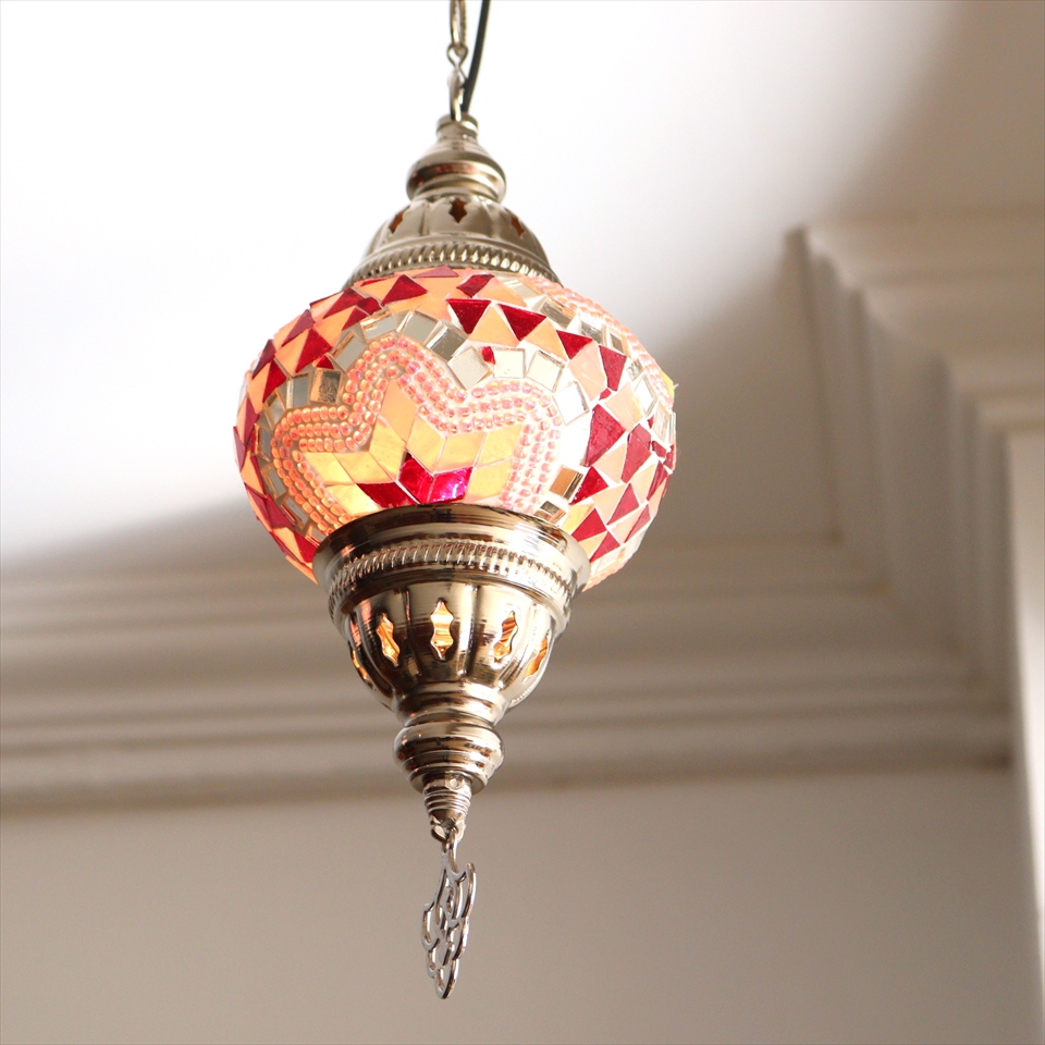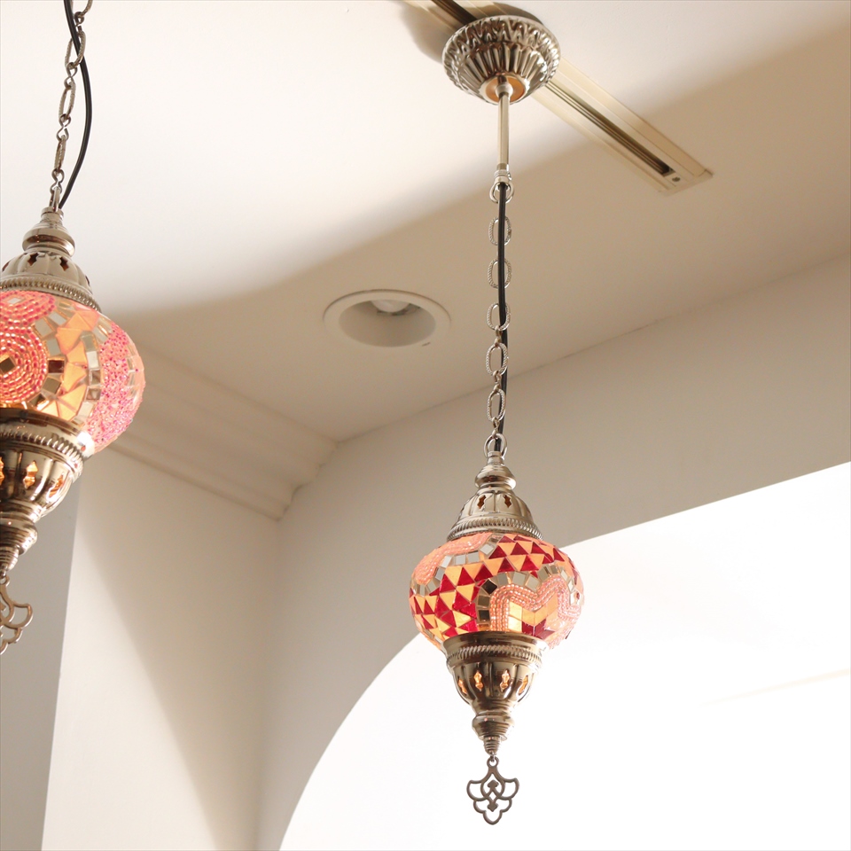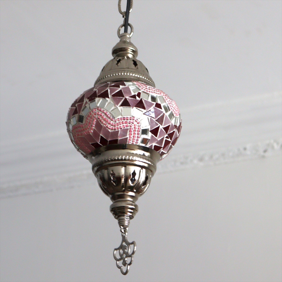トルコランプ モザイクペンダントランプ 直径13cm 全高67cm ピンク シルバーカラーの灯具