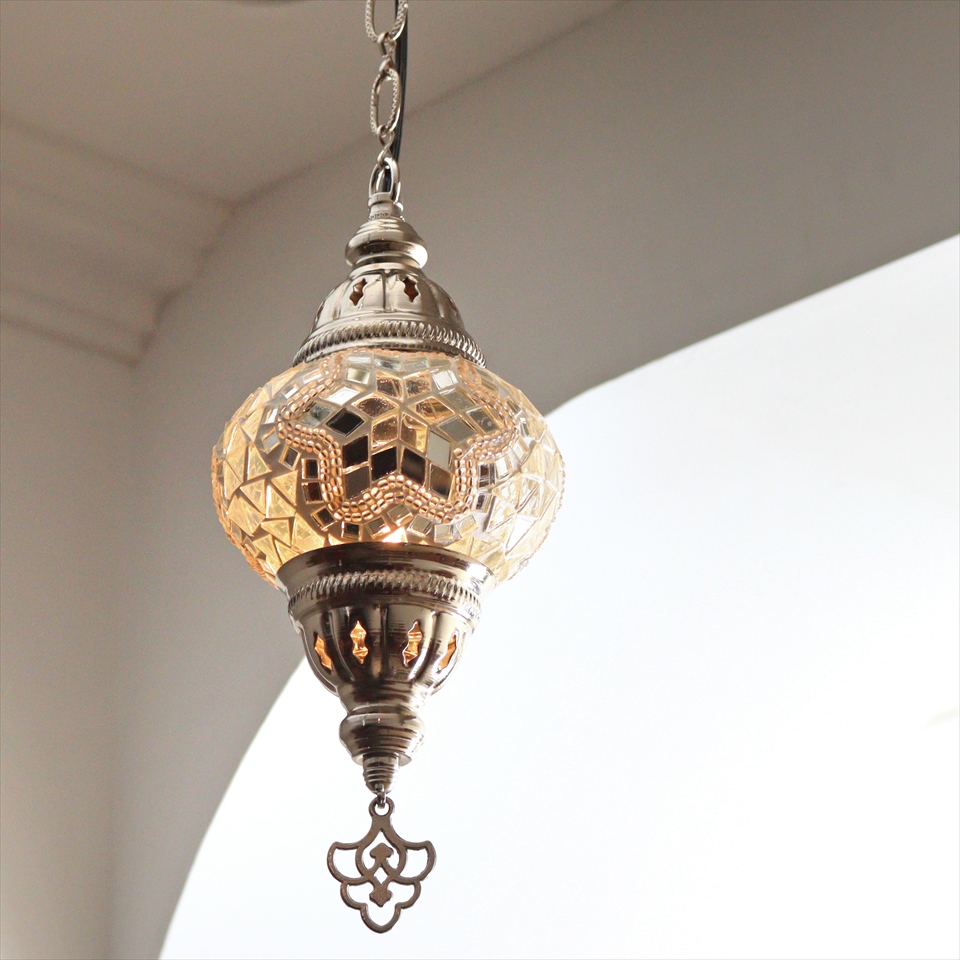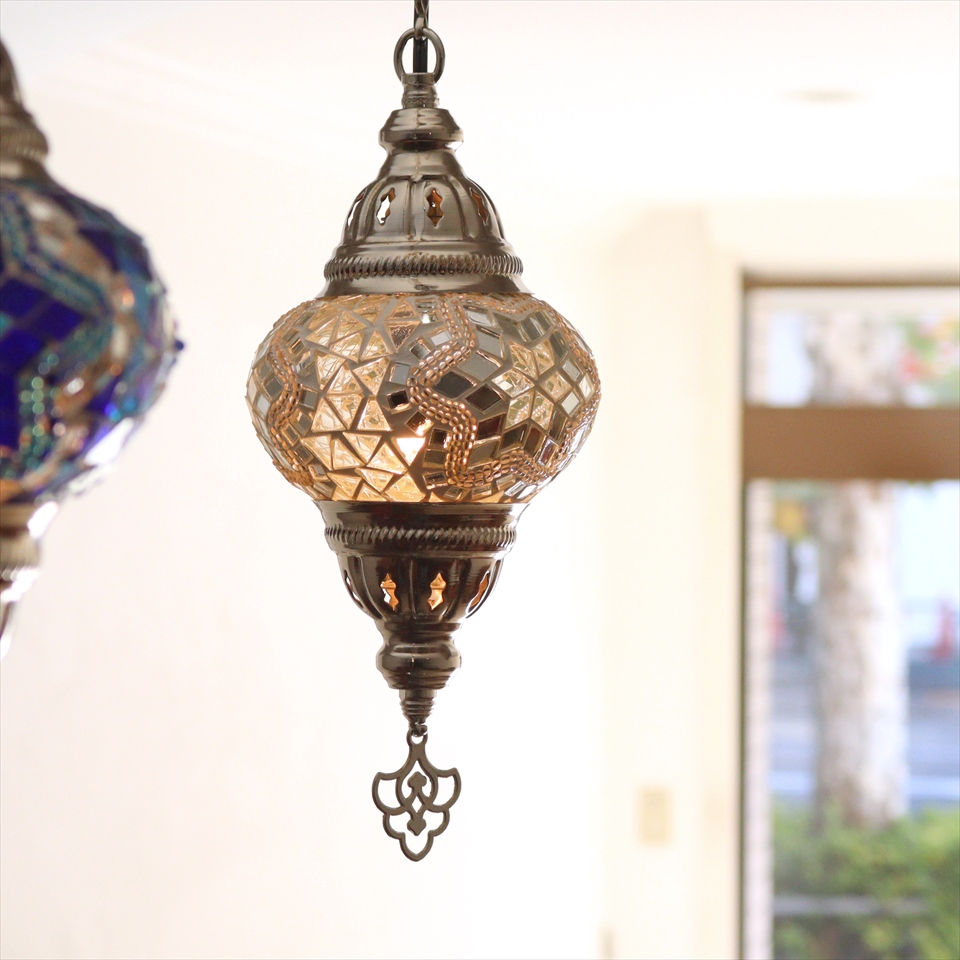 トルコランプ モザイクペンダントランプ 直径13cm 全高67cm ホワイト シルバーカラーの灯具